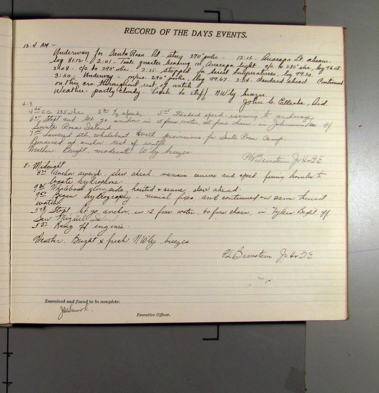 12-4 a.m. 12:21. Anacapa Id. Lt. on stbd bow, log 64.33