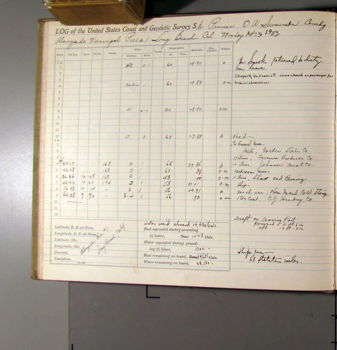 50874e6009d40907550148df: (http://oldweather.s3.amazonaws.com/ow3/final/USCS Pioneer/Book 47 - October-December, 1933/IMG_0447_0.jpg)