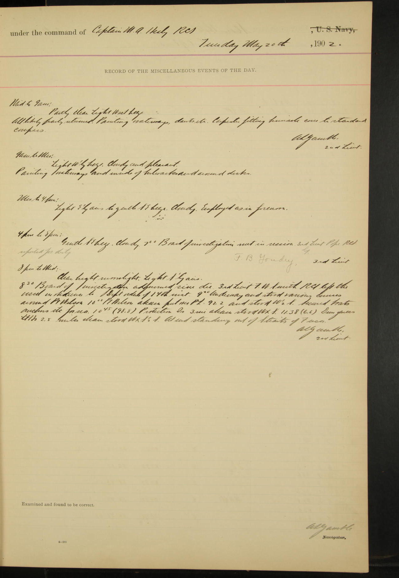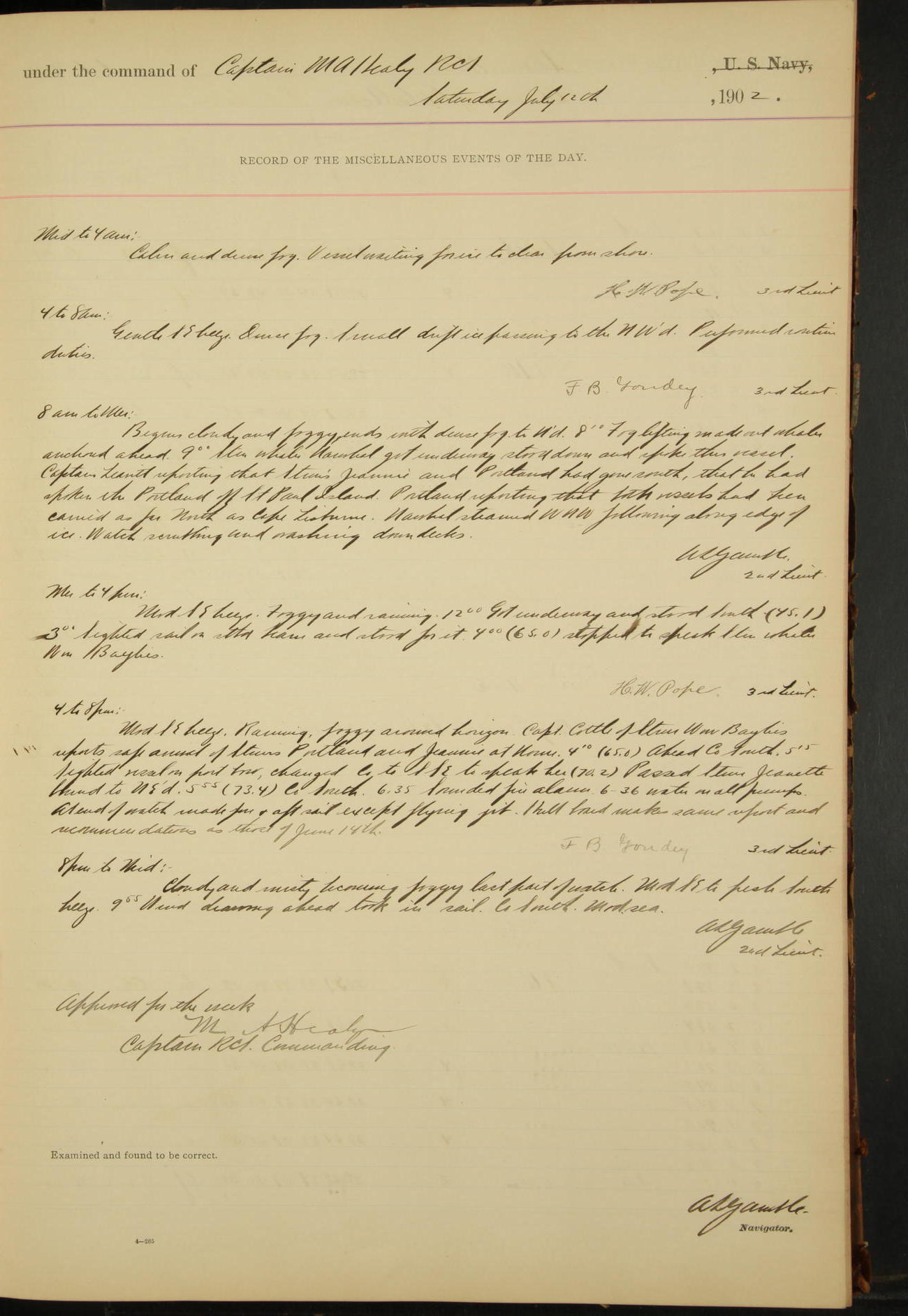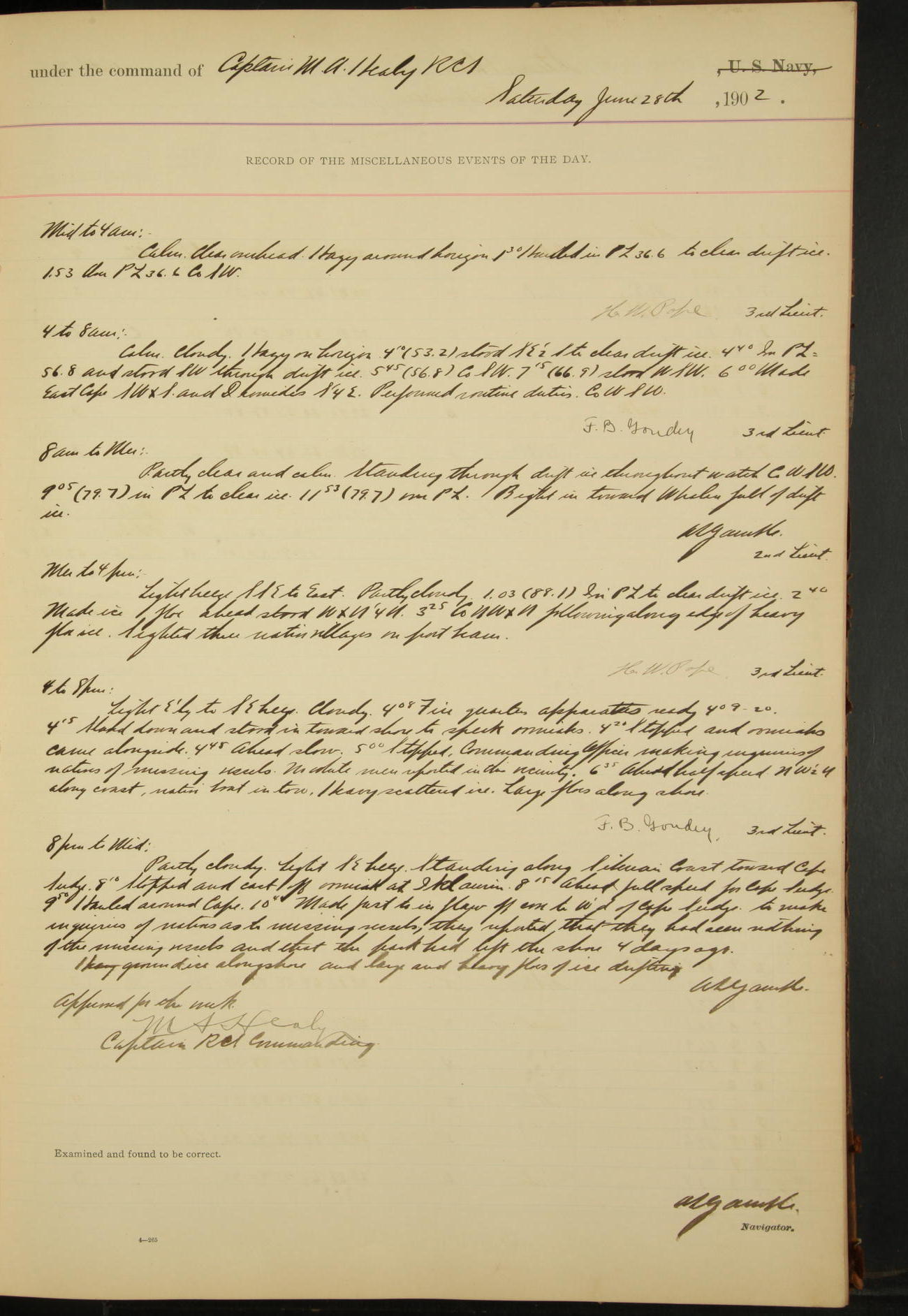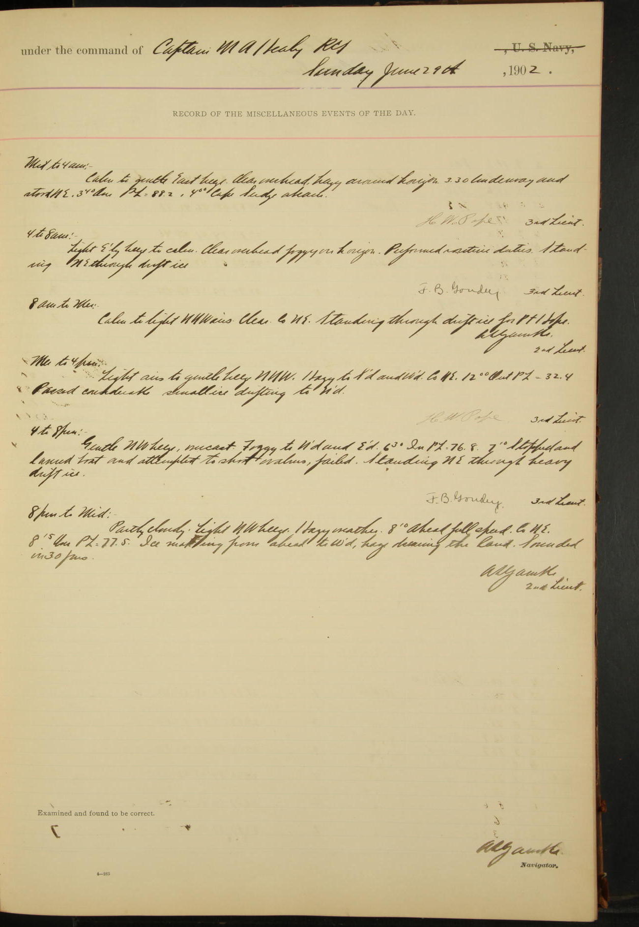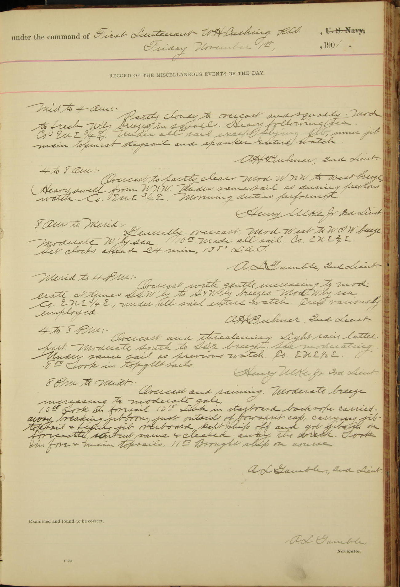 2nd Lieutenant C.S. Cochran, Revenue Cutter Service, left ship, ordered to USRC “McCulloch”, Department order of 18th instant.
