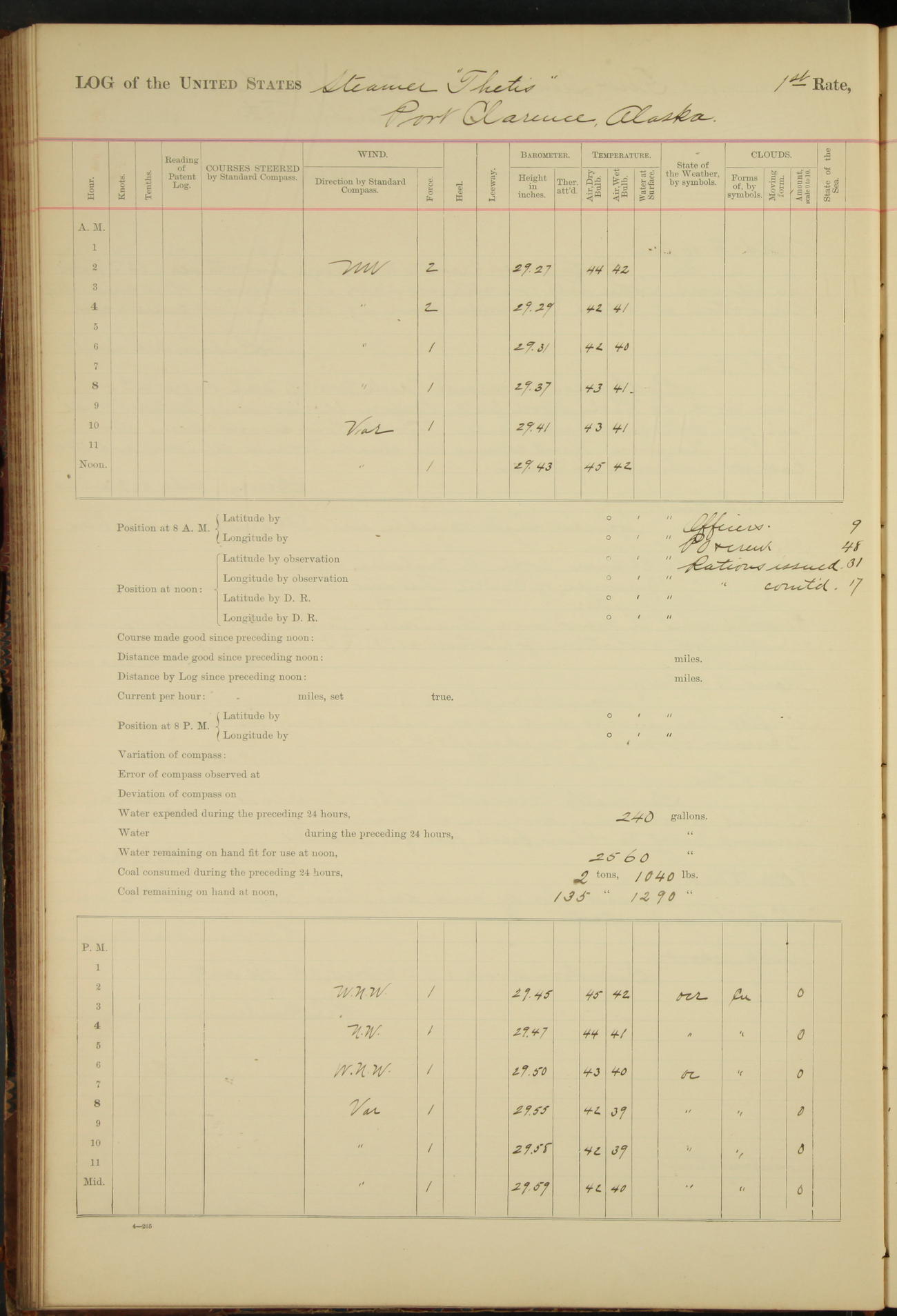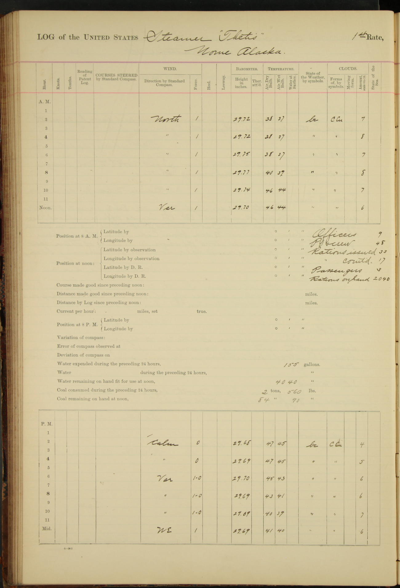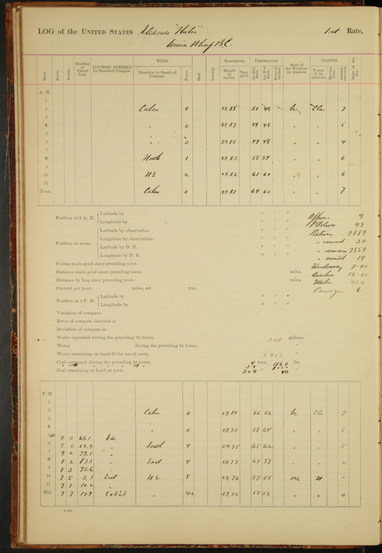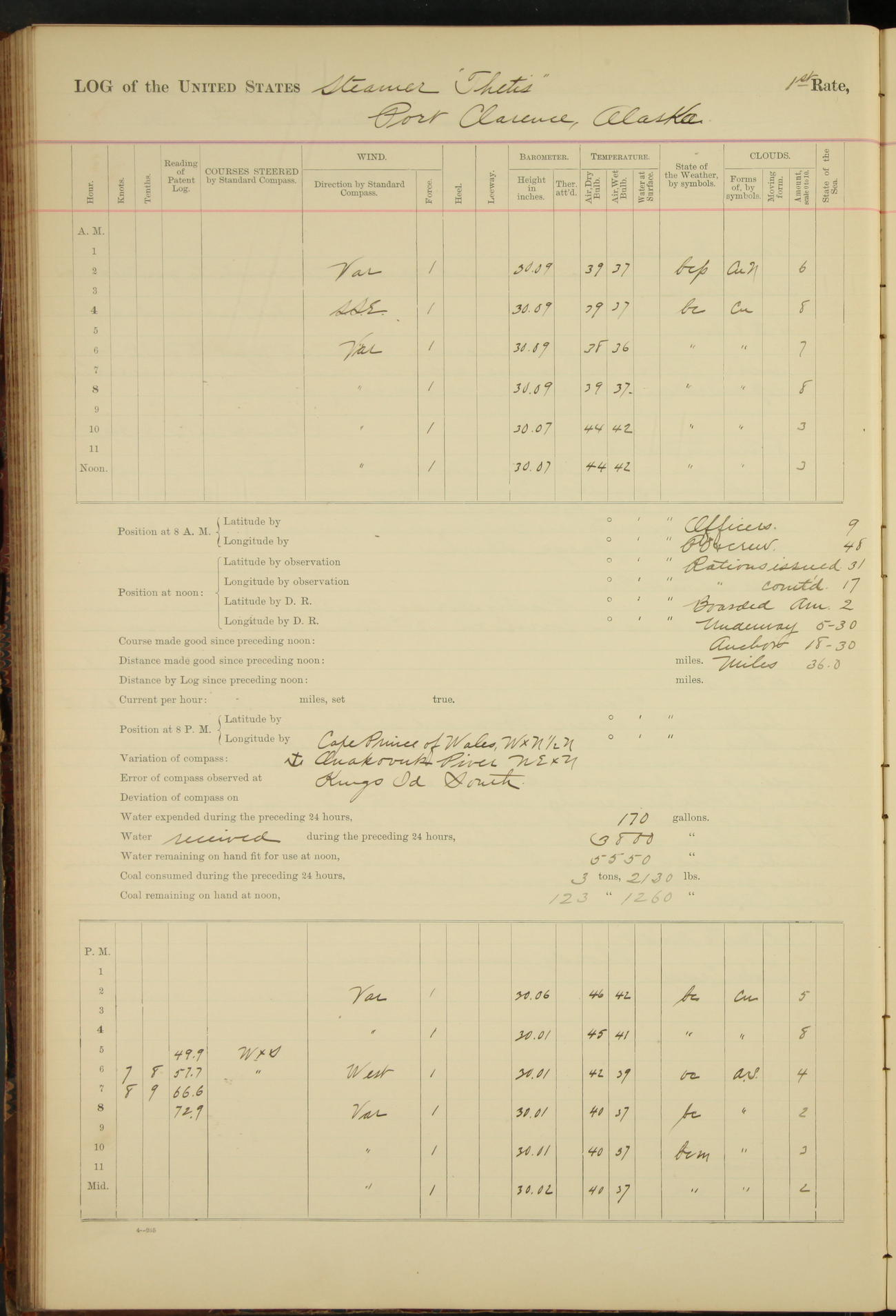 At 8.15 US Revenue Steamer “Golden Gate” made fast alongside and at 8.30 [Thetis] cast off from wharf and proceeded under tow en route to Mare Island Navy Yard.