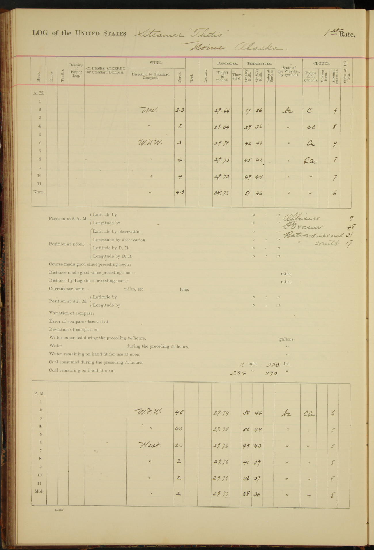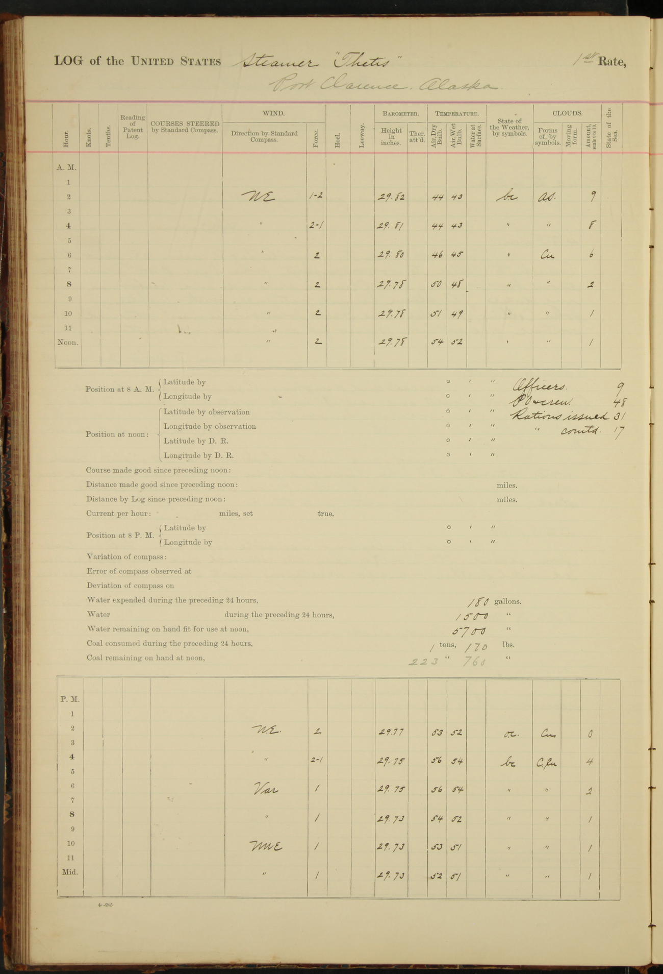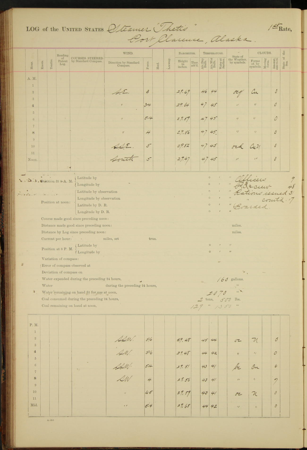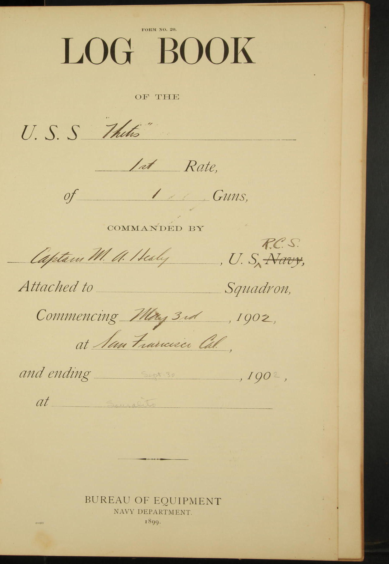 At 8.15 US Revenue Steamer “Golden Gate” made fast alongside and at 8.30 [Thetis] cast off from wharf and proceeded under tow en route to Mare Island Navy Yard.