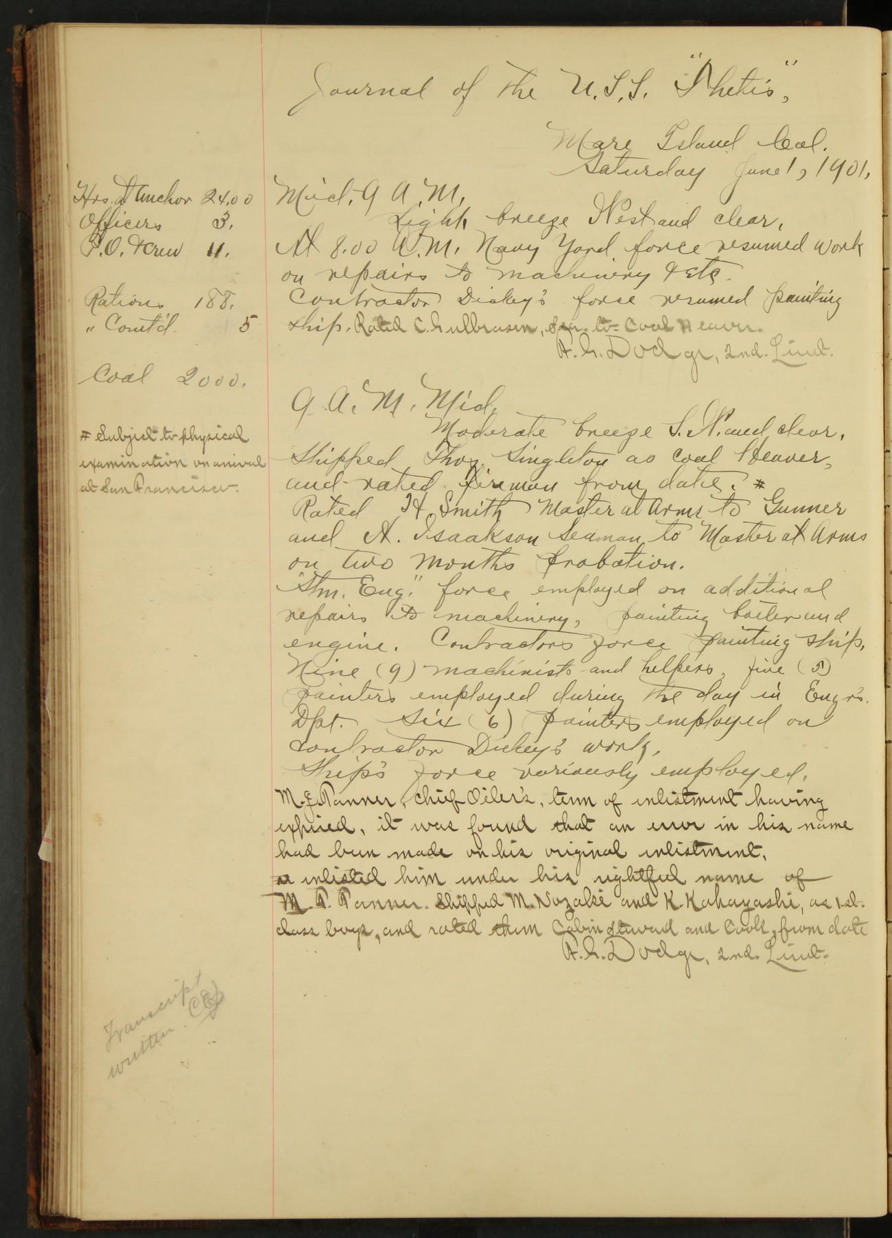 5145bd7fa2fc8ee892004f3f: (http://oldweather.s3.amazonaws.com/ow3/final/USS Thetis/vol601/vol601_068_1.jpg)