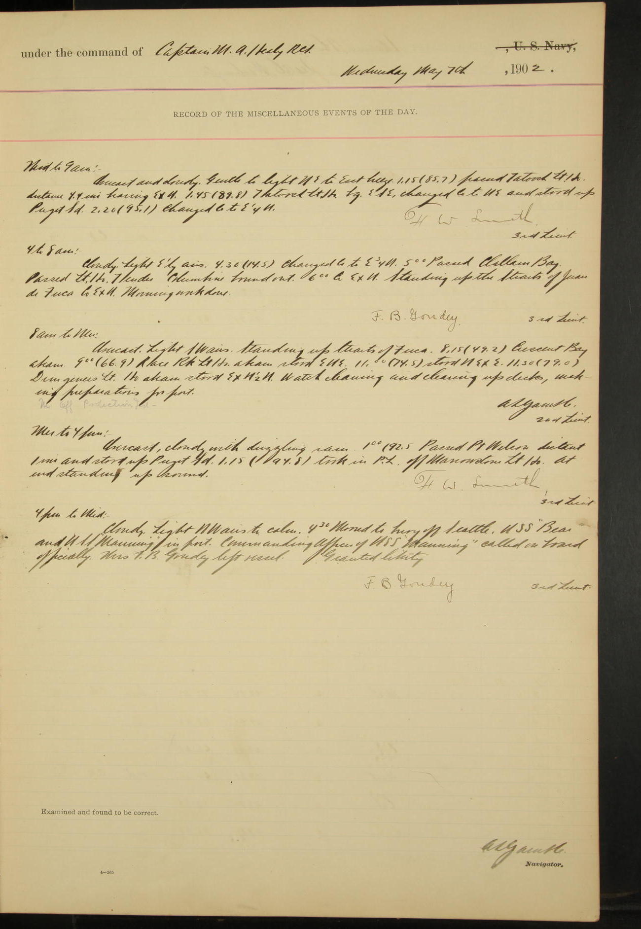 Officers from “Thetis” paid visit of courtesy upon Officers of USRC “McCulloch” and USRC “Manning”.