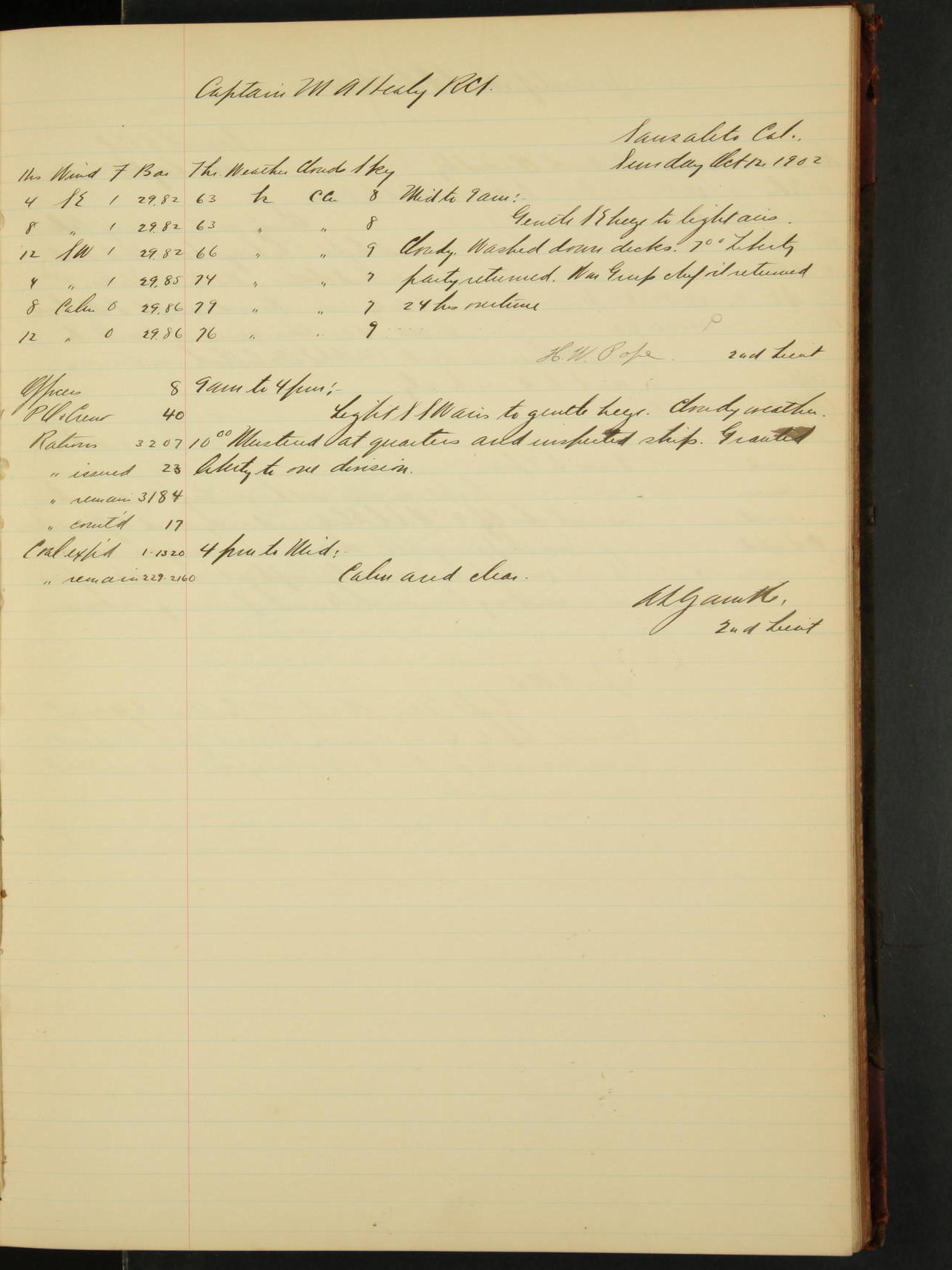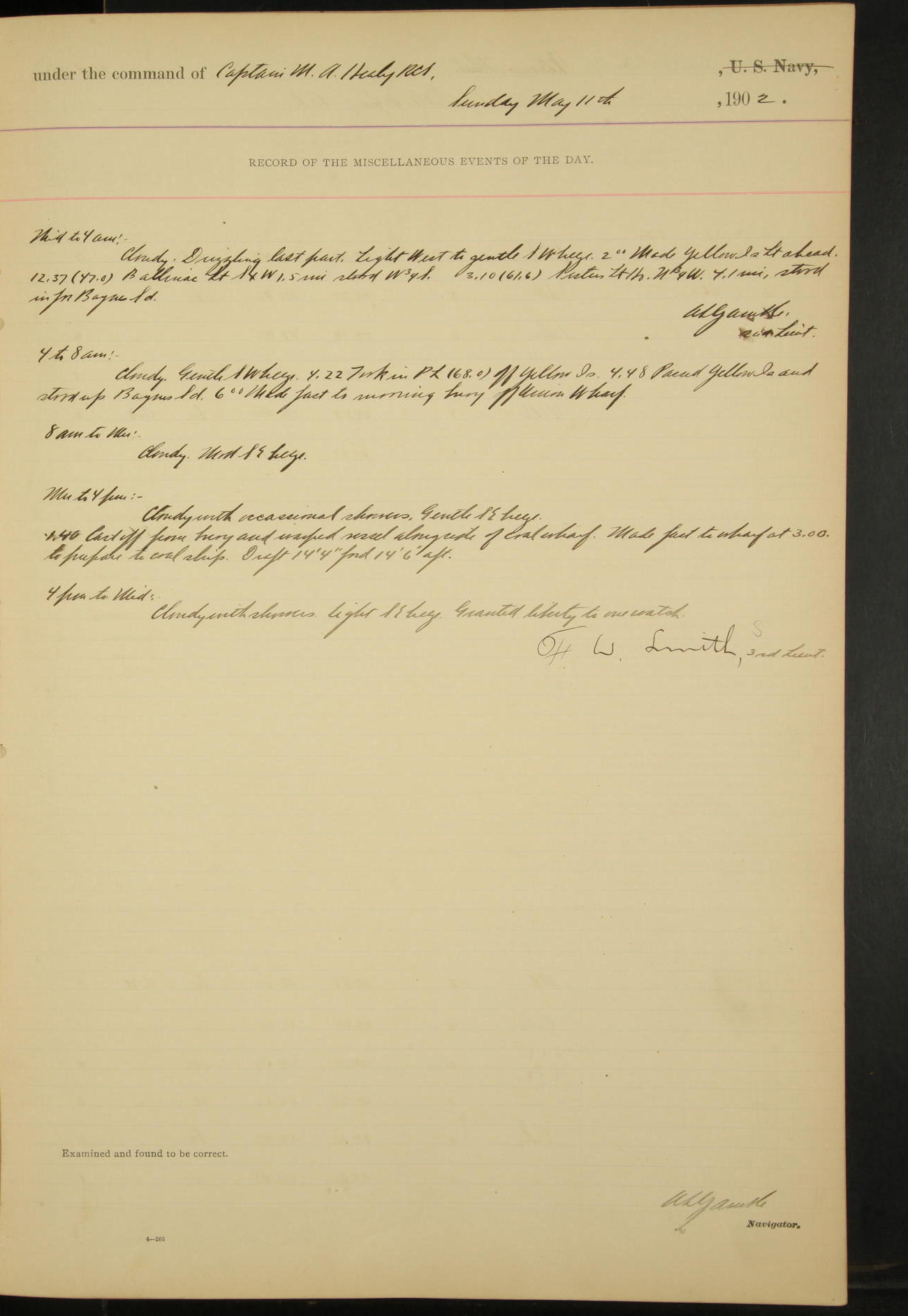 Washed decks and hoisted ashes. All liberty party returned except C. Smith (Boy).