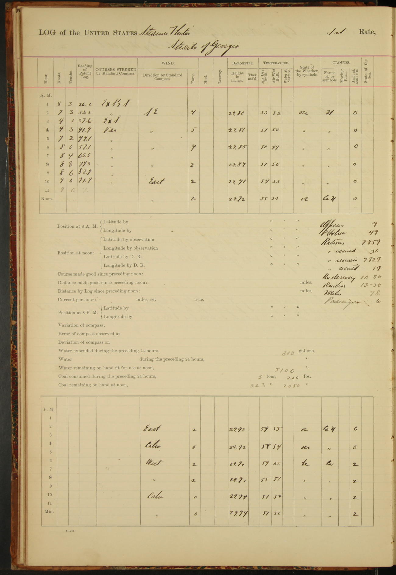 Light breeze, East, and clear.