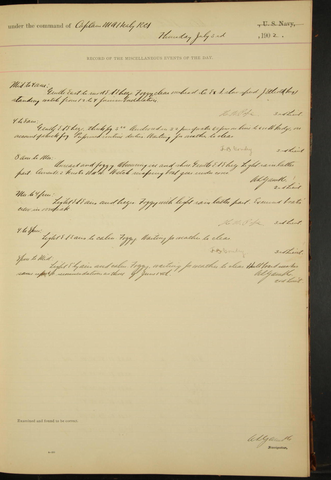 Light airs, North, and foggy.