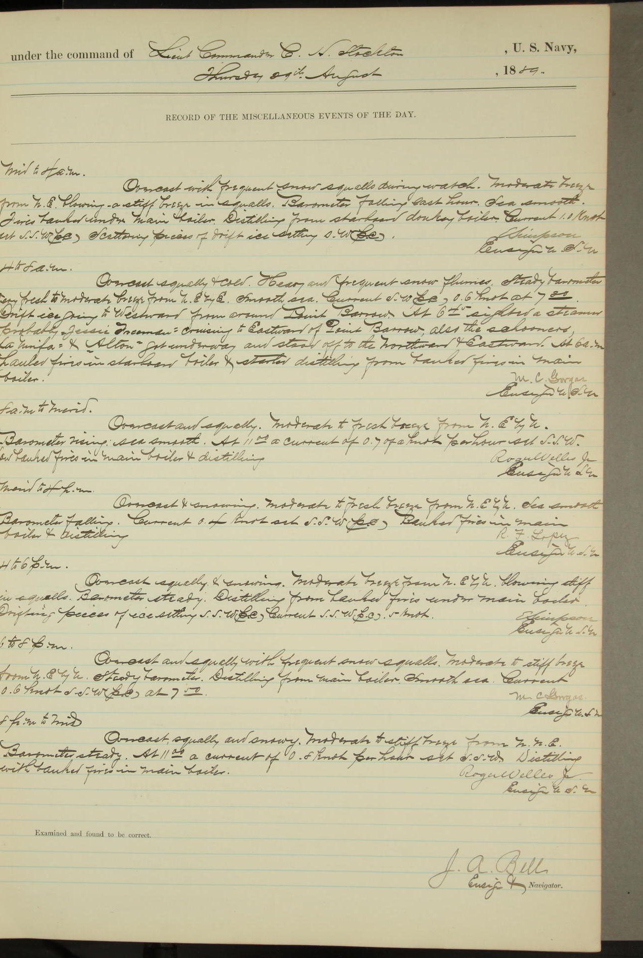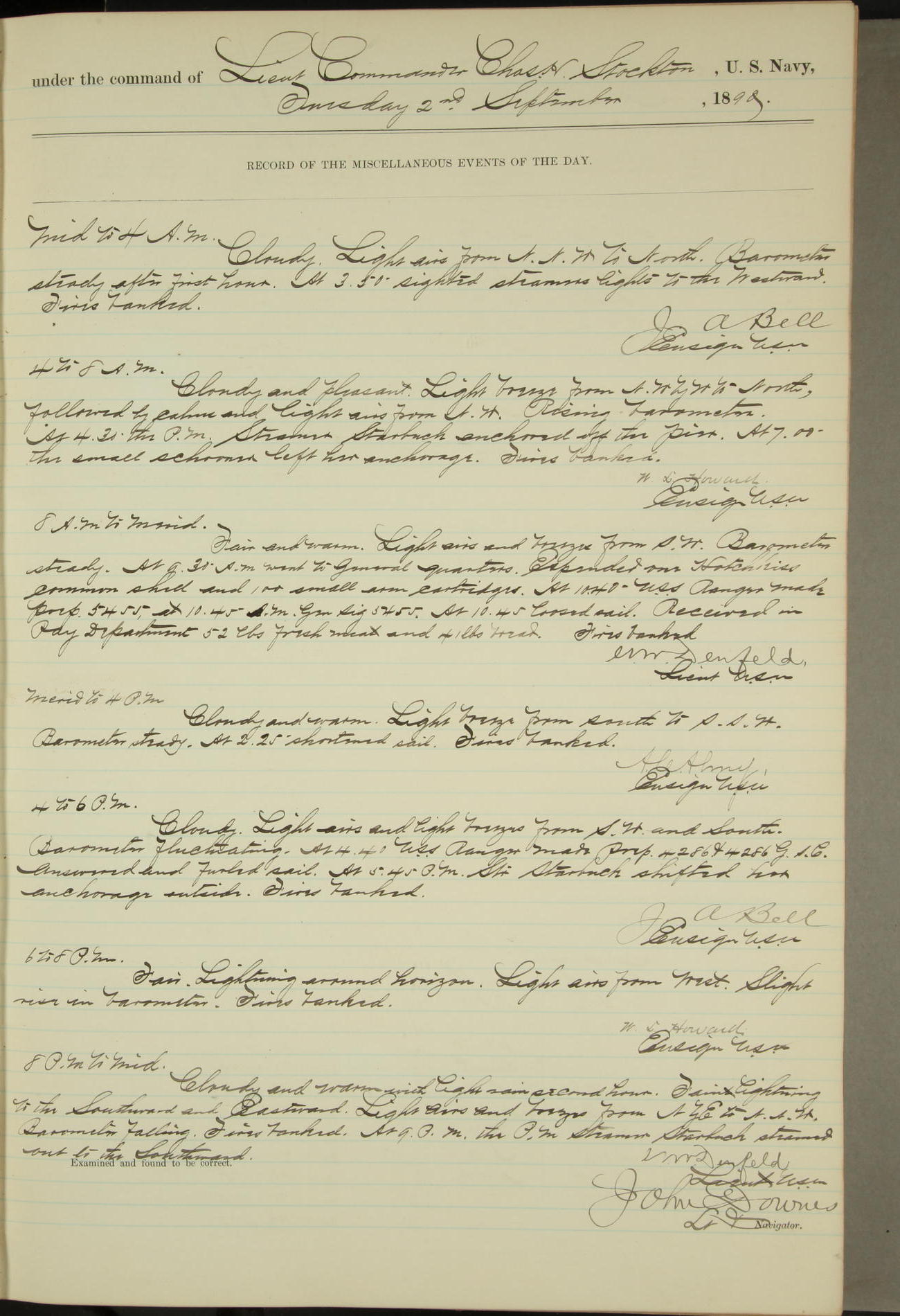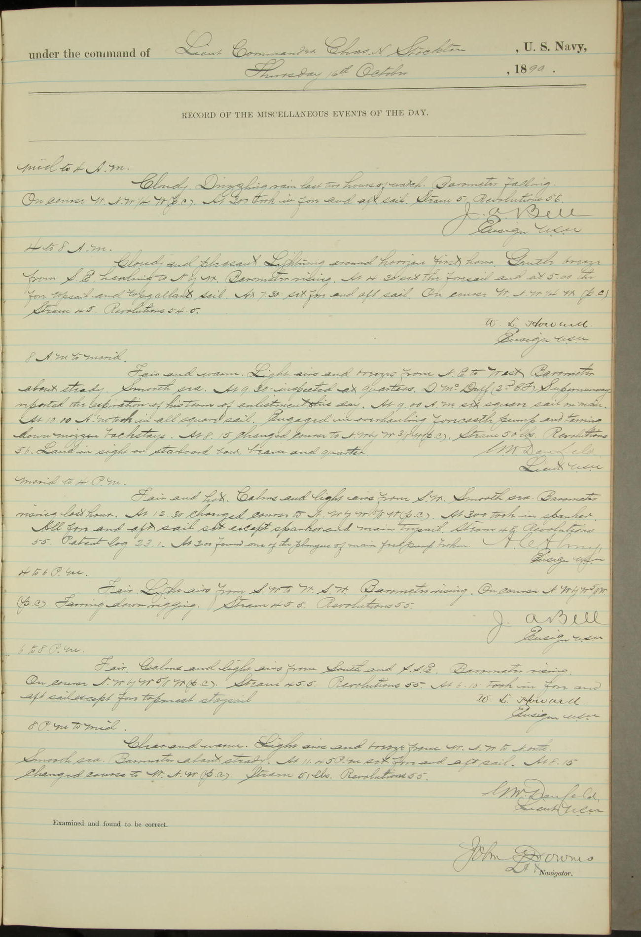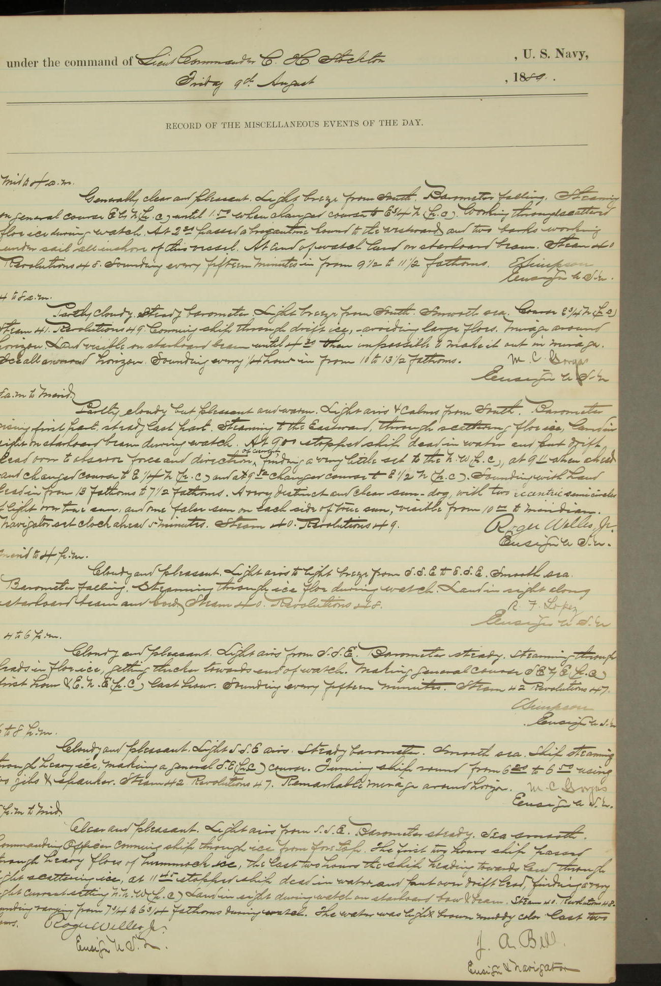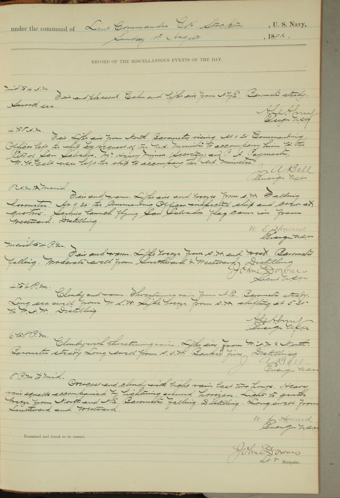 JA Dearborn - At 10am a Summary Court composed of Ensigns Simpson, Gorgas & Dewey as members with Asst Paymaster Lovell as Recorder convened for the tial of JA Dearborn (CH). The court adjourned at 11.20 to await the action of the Comd'g Officer.