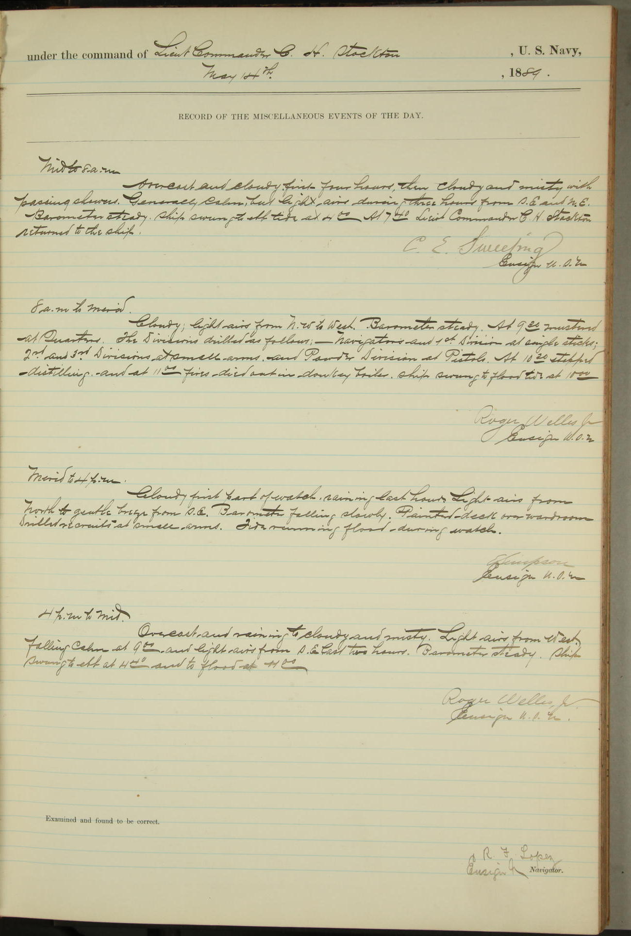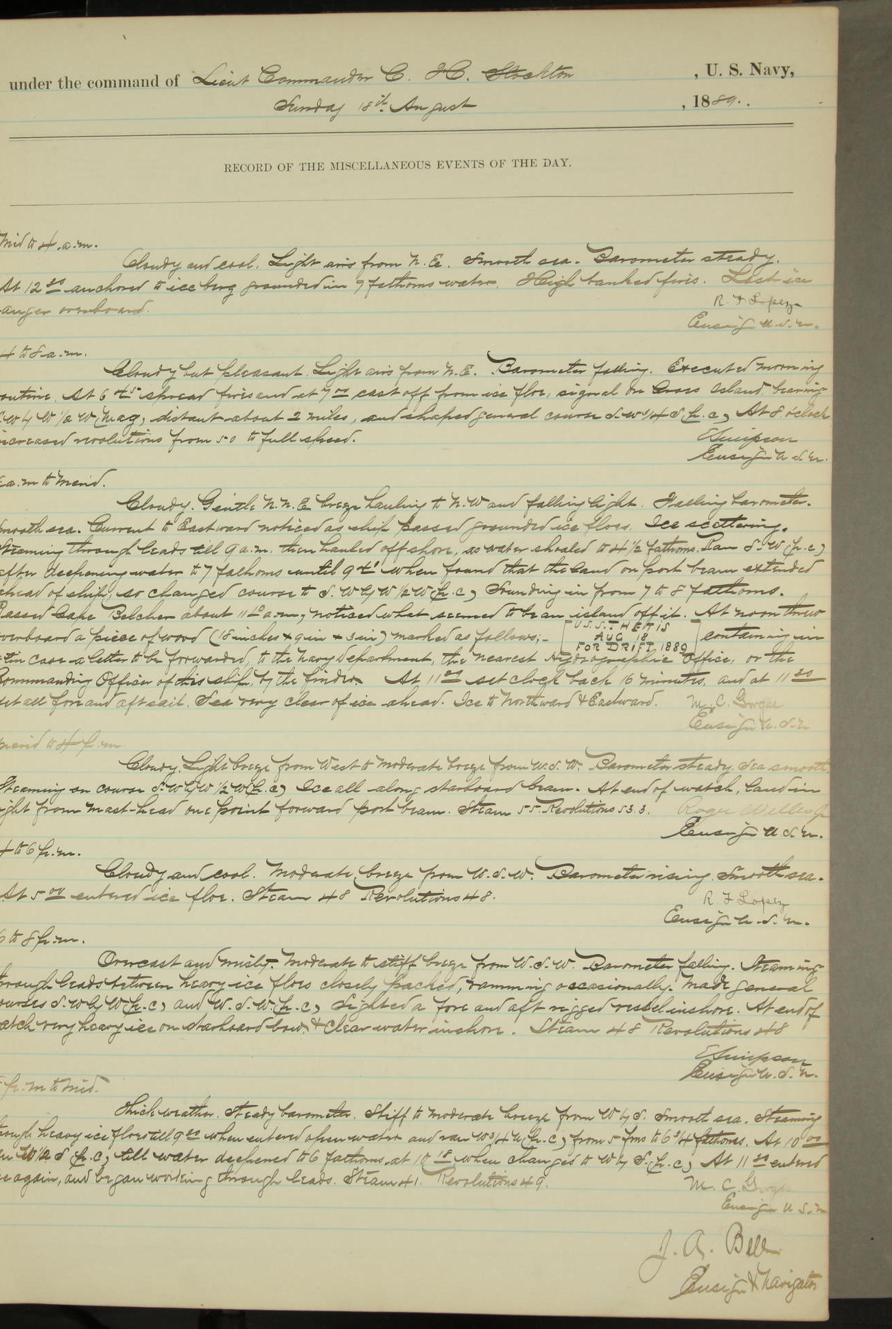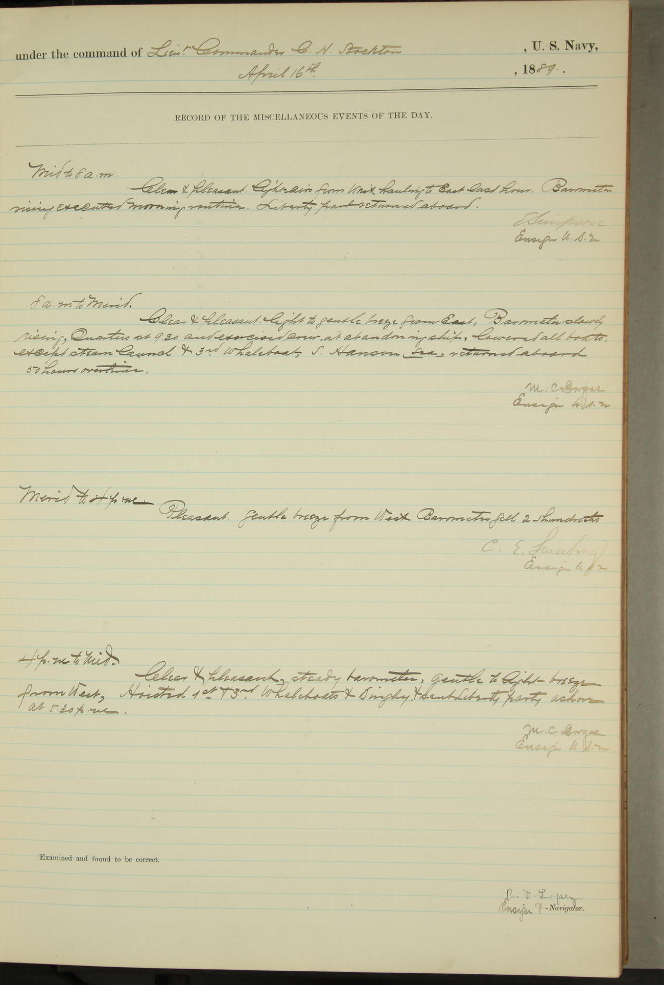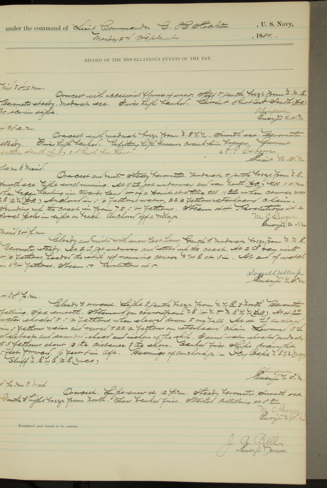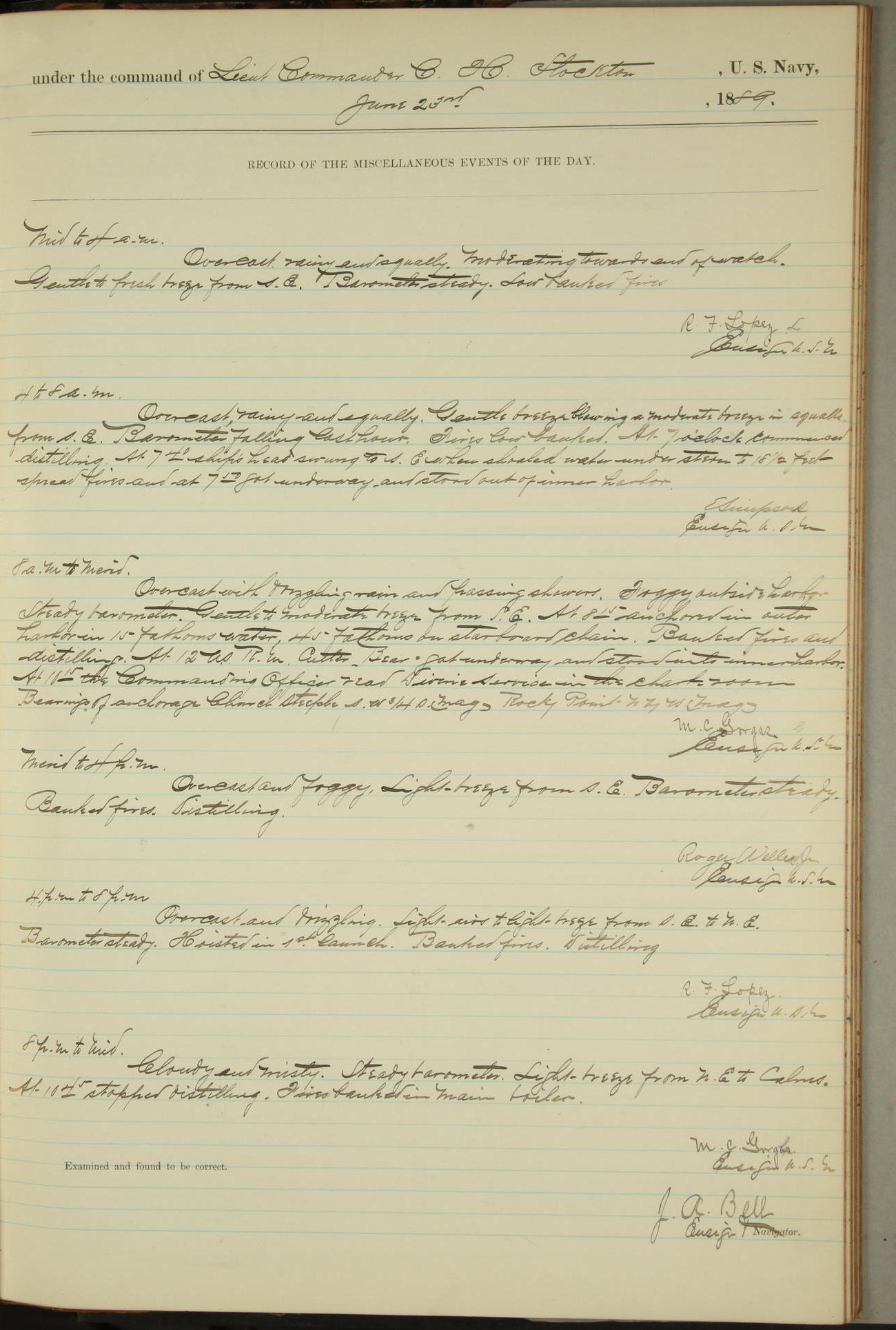 JA Dearborn - At 10am a Summary Court composed of Ensigns Simpson, Gorgas & Dewey as members with Asst Paymaster Lovell as Recorder convened for the tial of JA Dearborn (CH). The court adjourned at 11.20 to await the action of the Comd'g Officer.