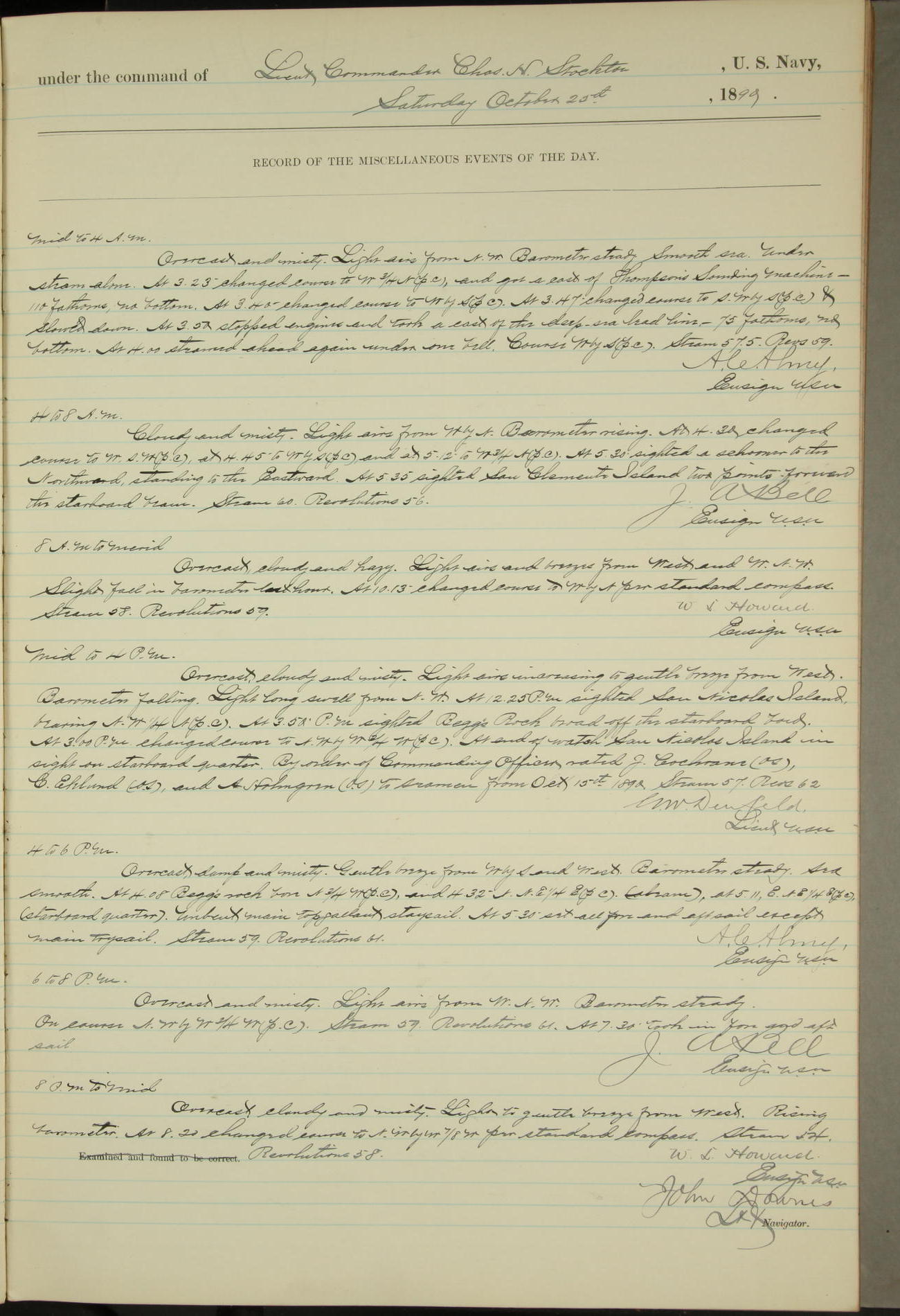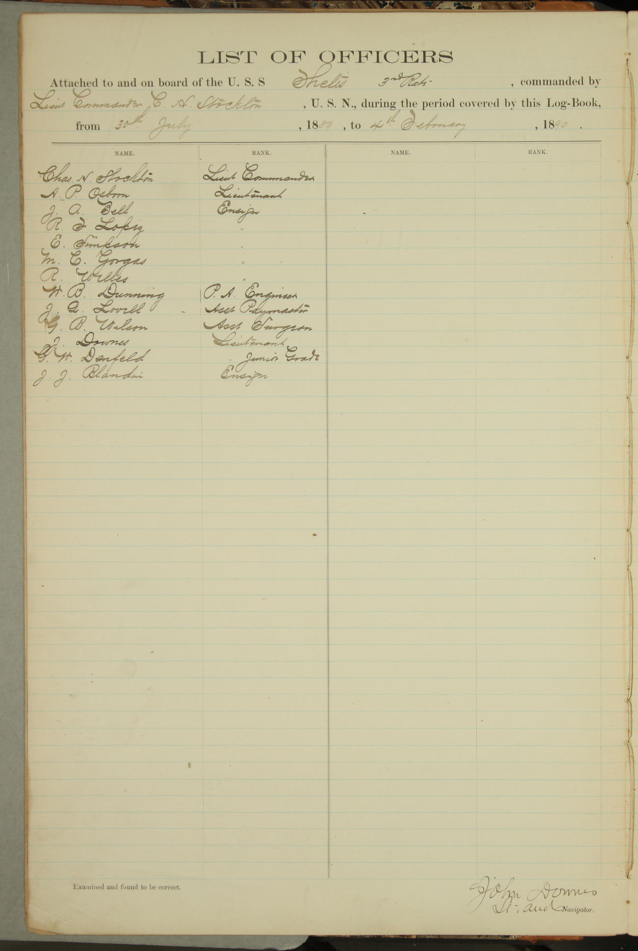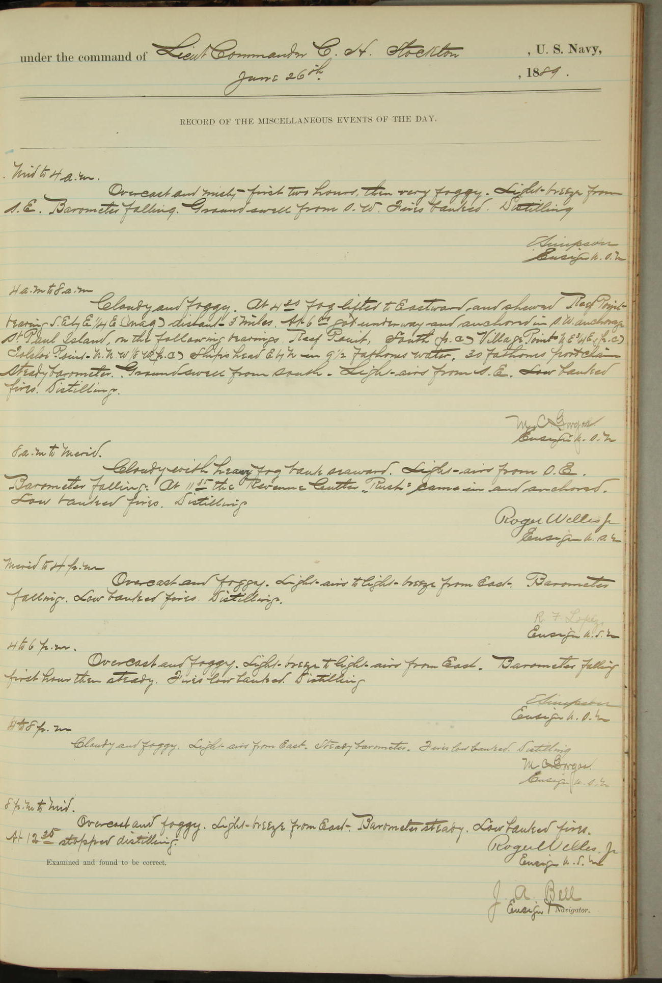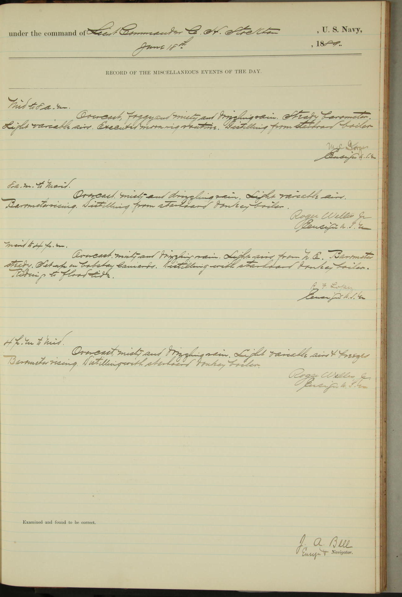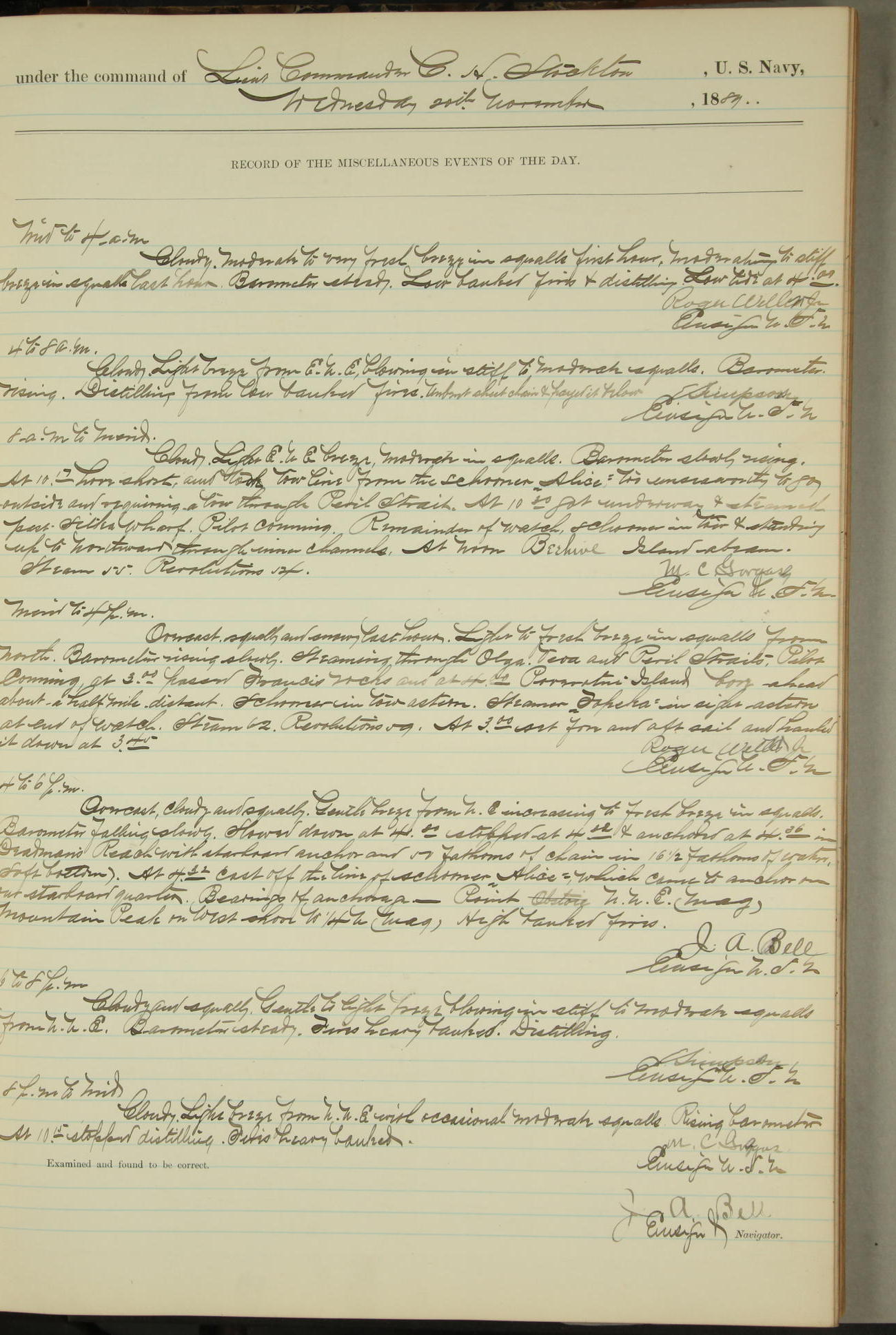 JA Dearborn - At 10am a Summary Court composed of Ensigns Simpson, Gorgas & Dewey as members with Asst Paymaster Lovell as Recorder convened for the tial of JA Dearborn (CH). The court adjourned at 11.20 to await the action of the Comd'g Officer.