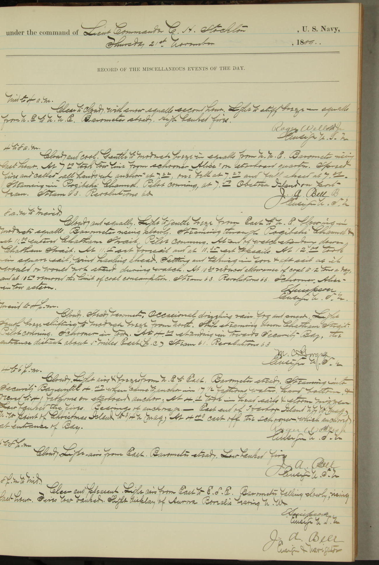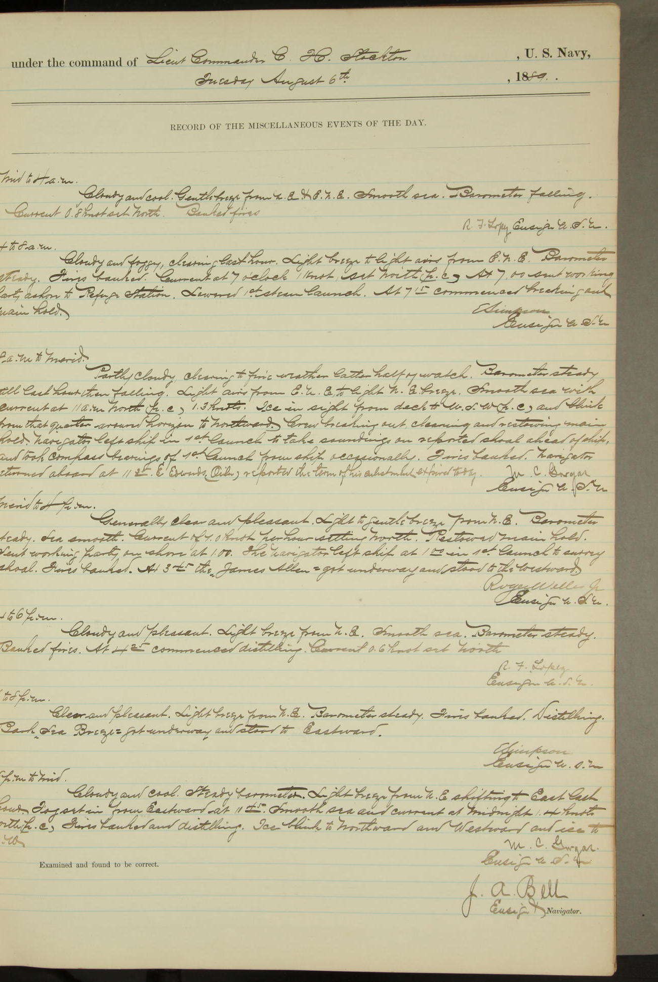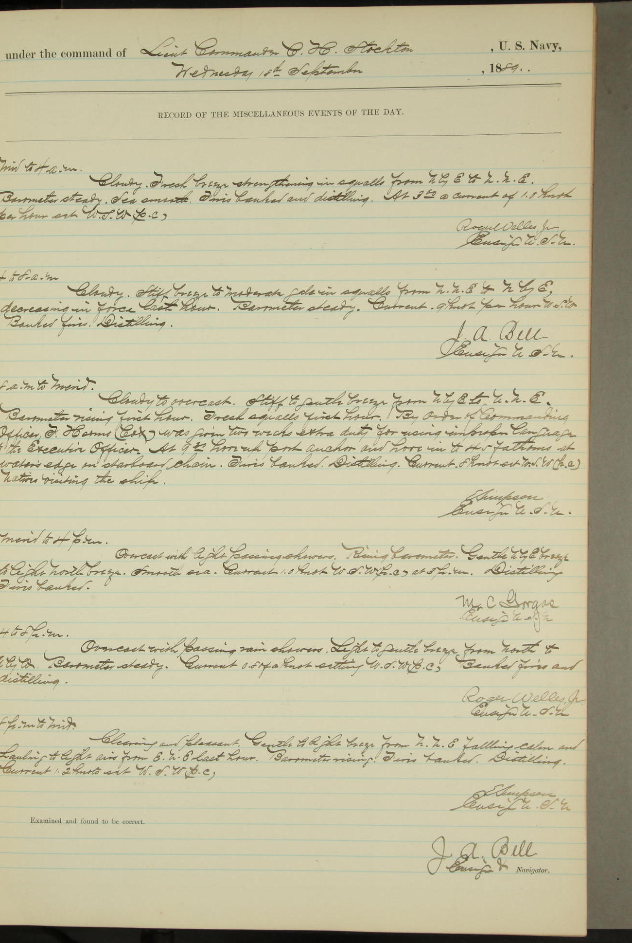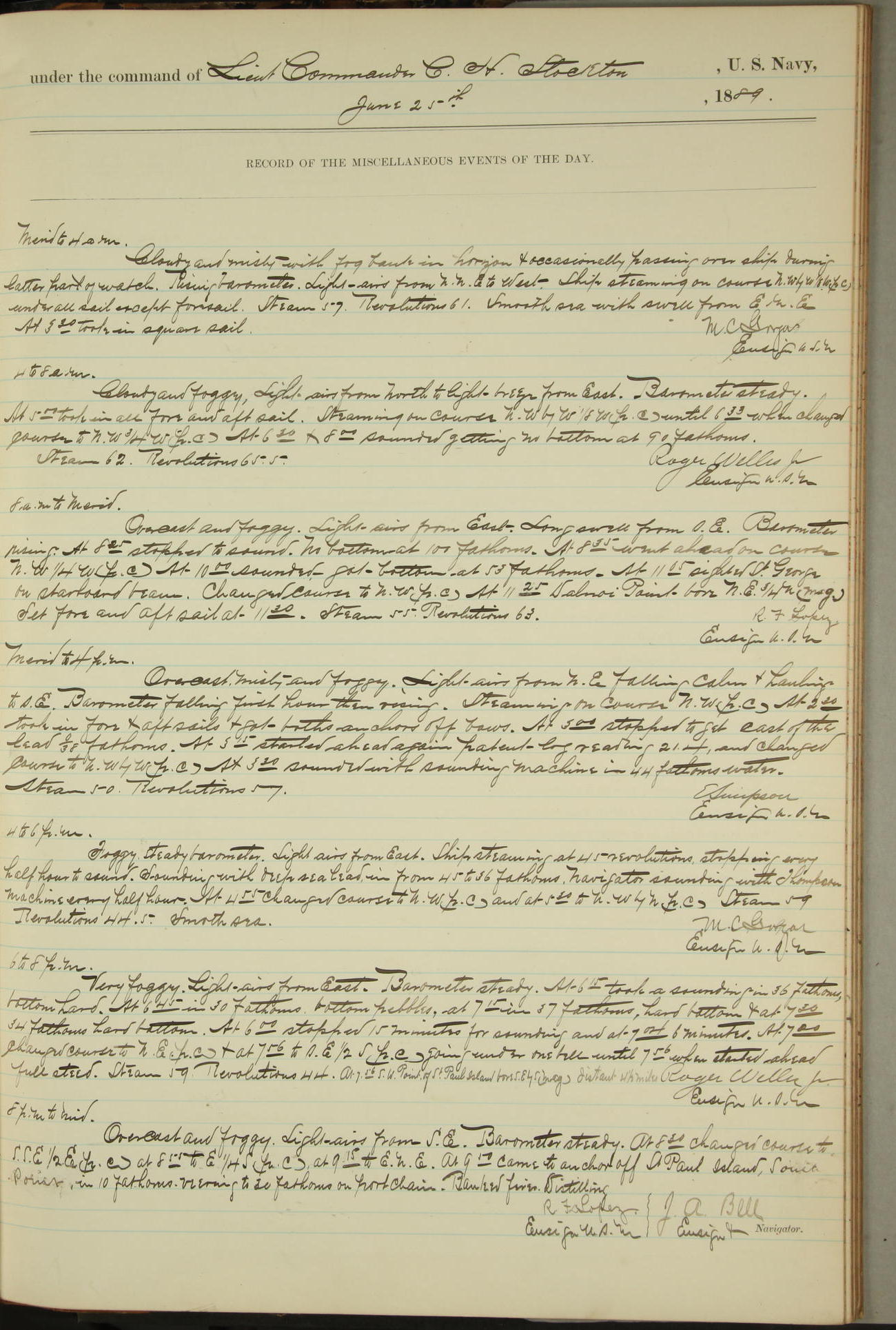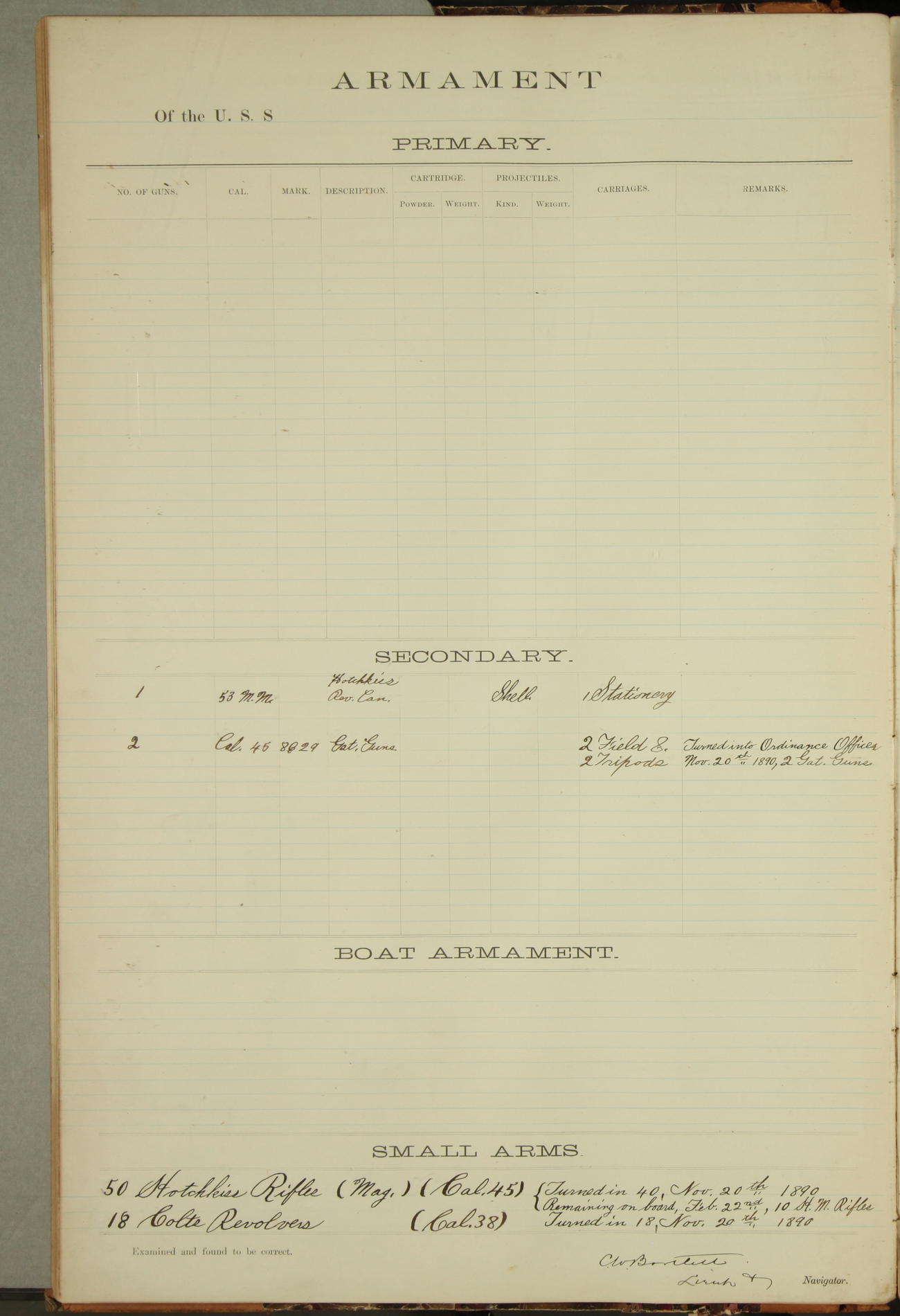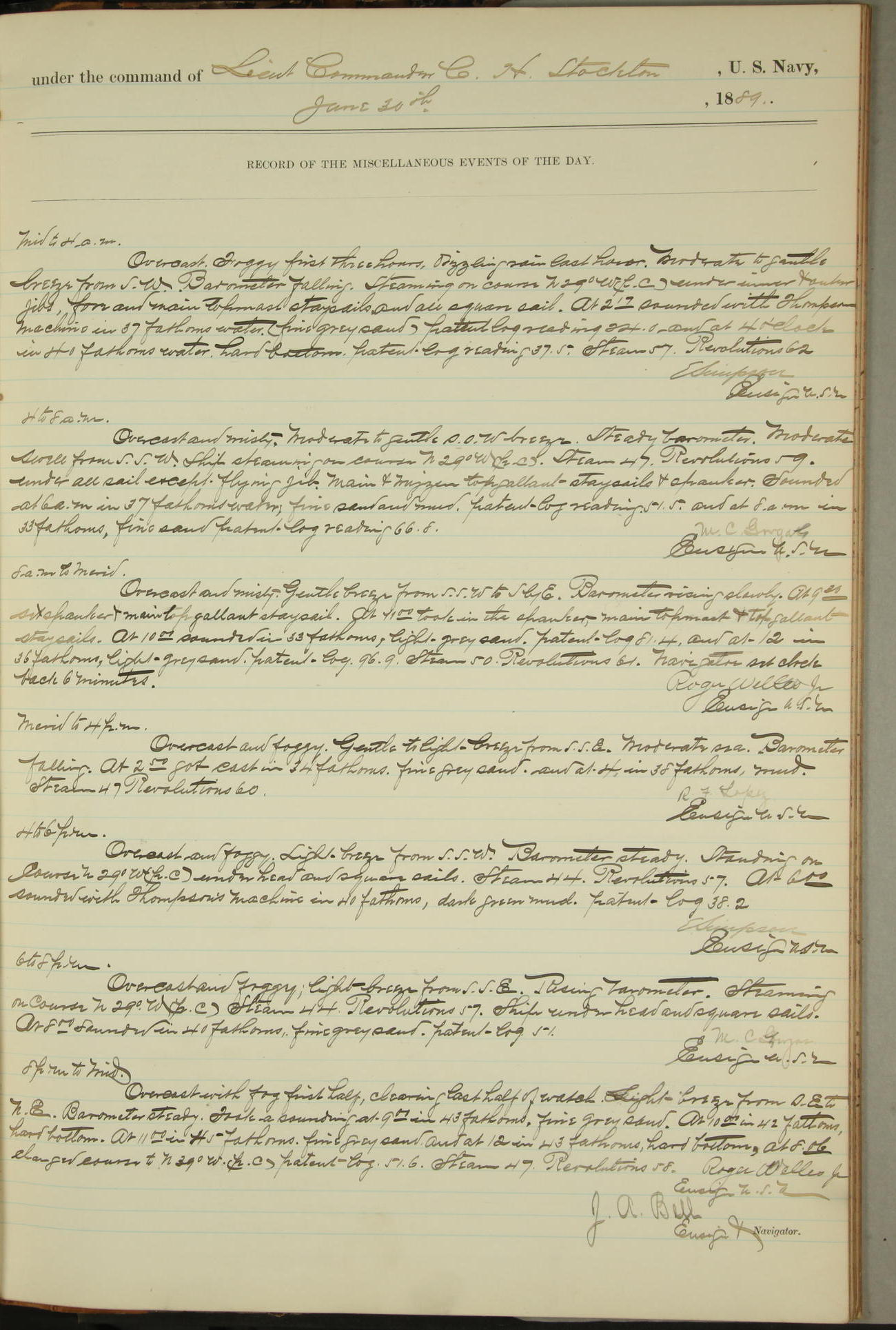 JA Dearborn - At 10am a Summary Court composed of Ensigns Simpson, Gorgas & Dewey as members with Asst Paymaster Lovell as Recorder convened for the tial of JA Dearborn (CH). The court adjourned at 11.20 to await the action of the Comd'g Officer.