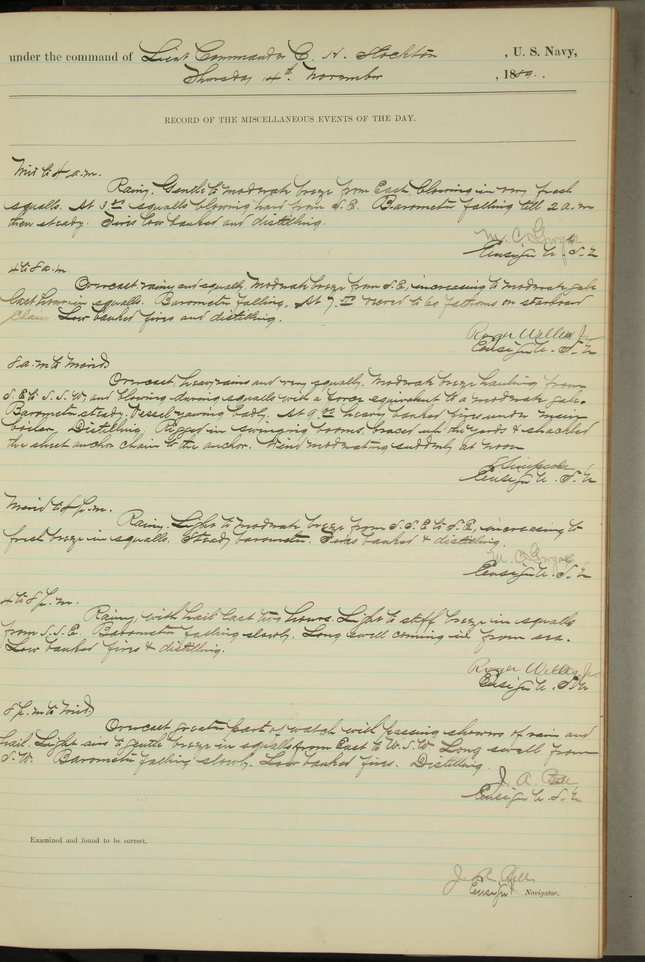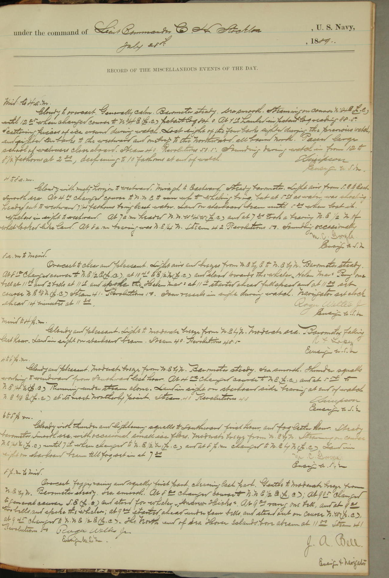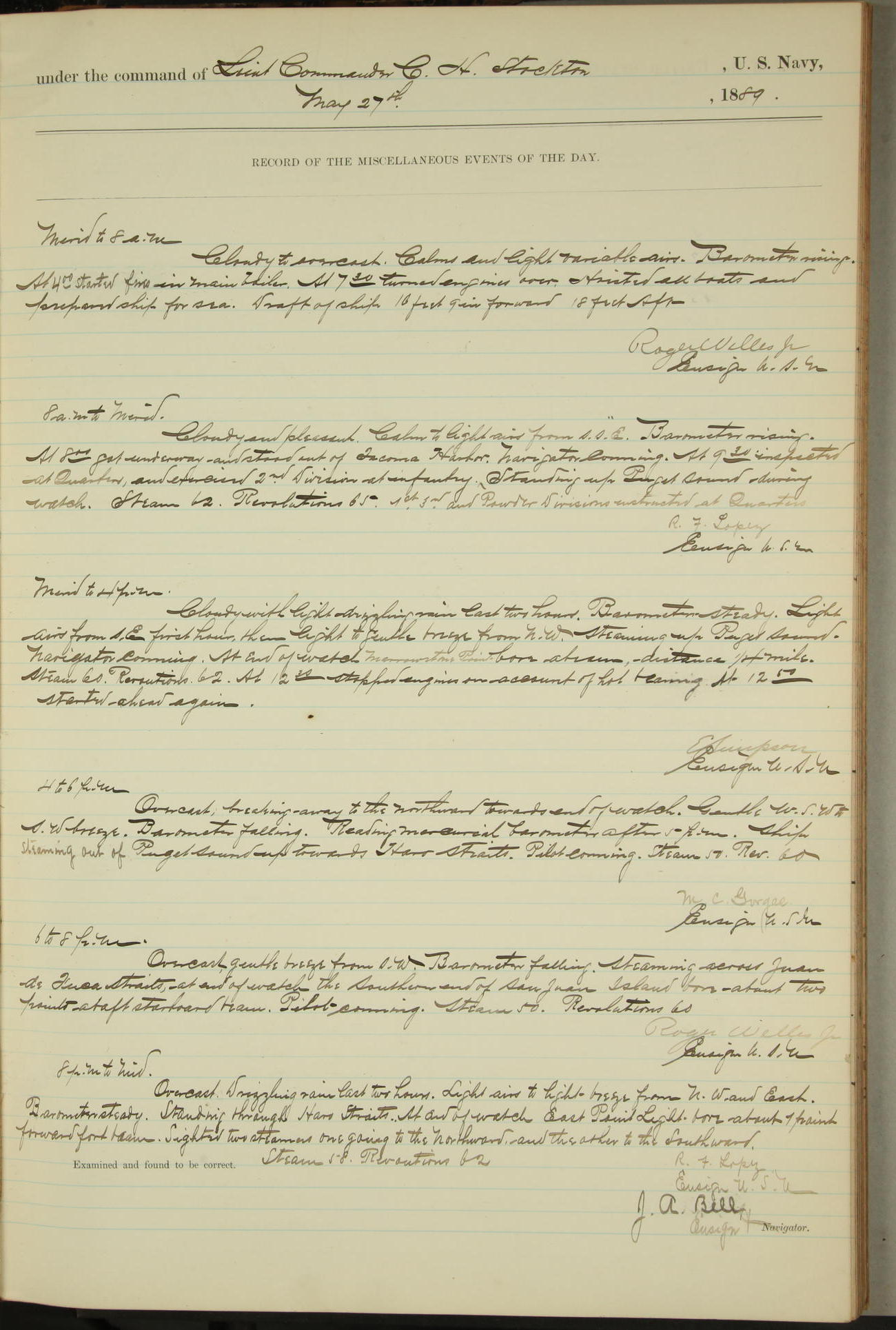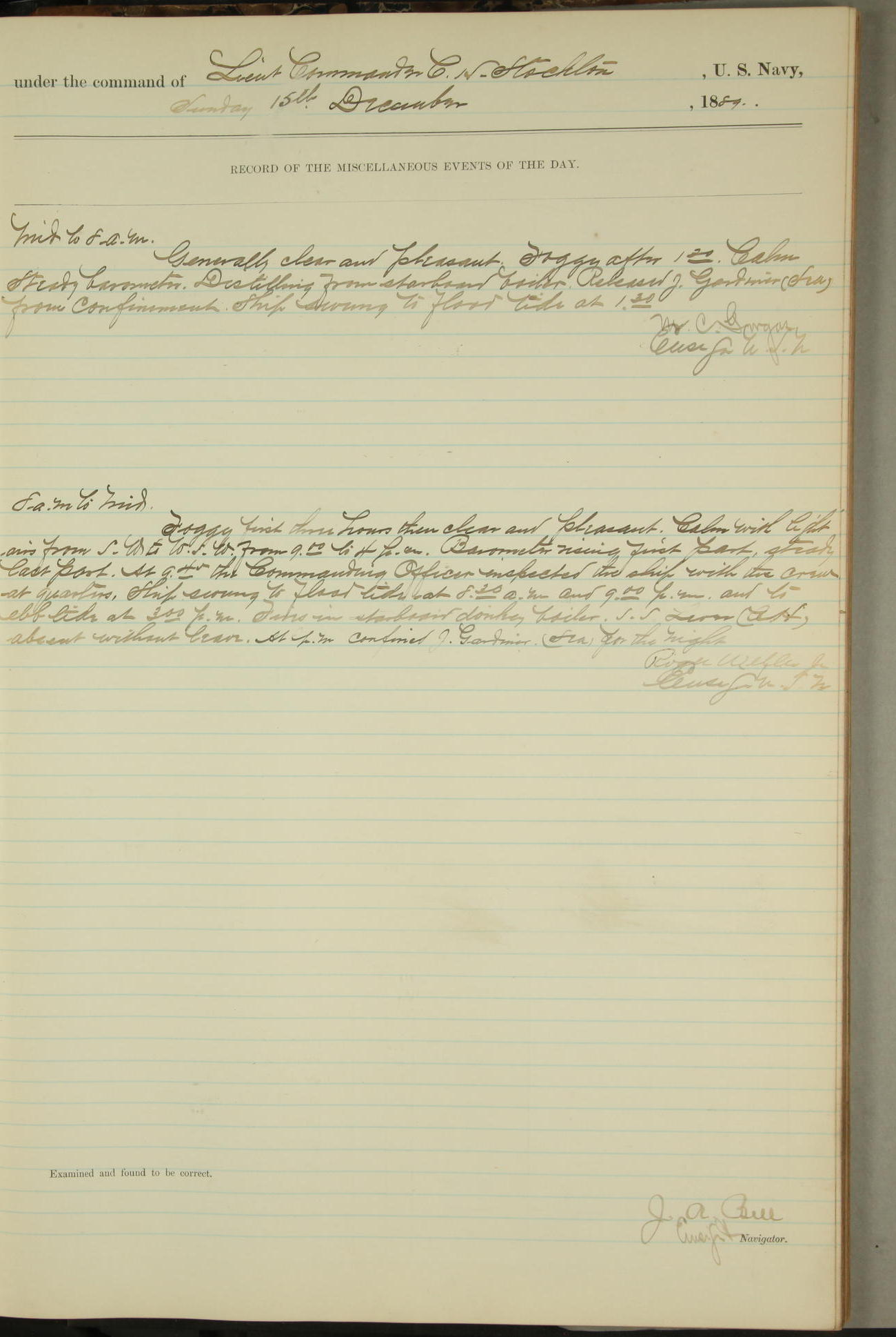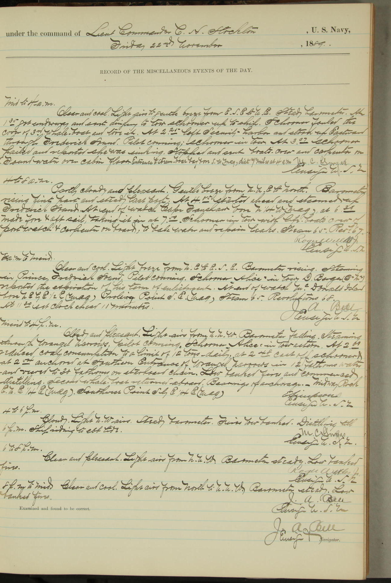 JA Dearborn - At 10am a Summary Court composed of Ensigns Simpson, Gorgas & Dewey as members with Asst Paymaster Lovell as Recorder convened for the tial of JA Dearborn (CH). The court adjourned at 11.20 to await the action of the Comd'g Officer.