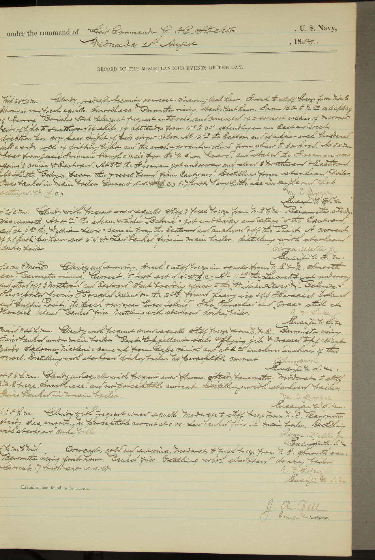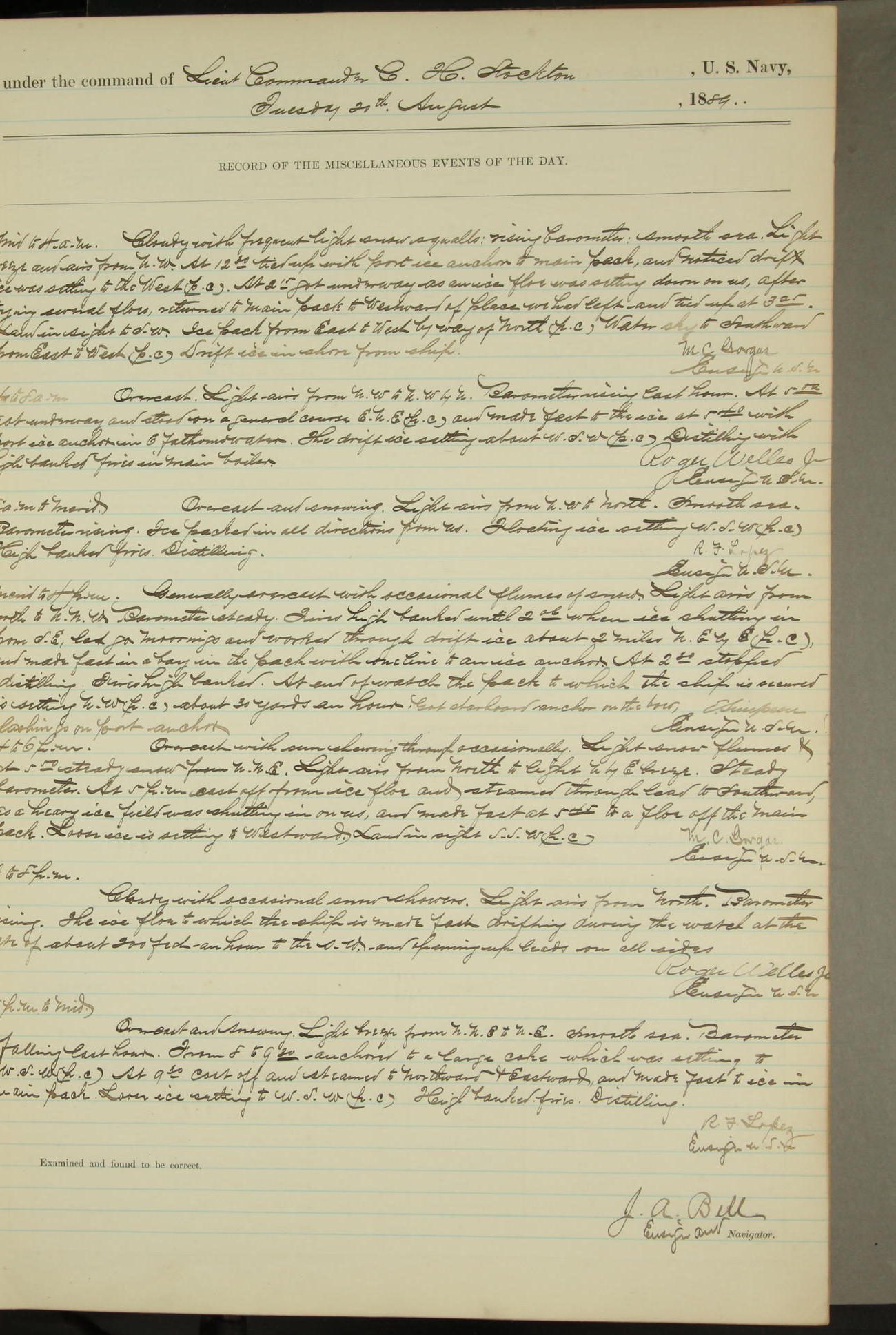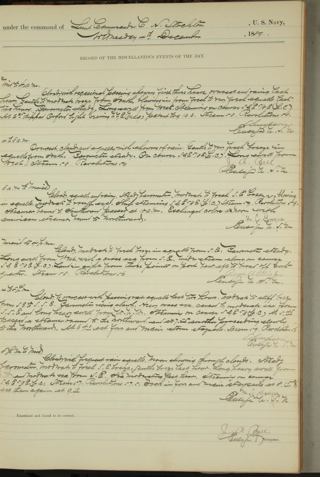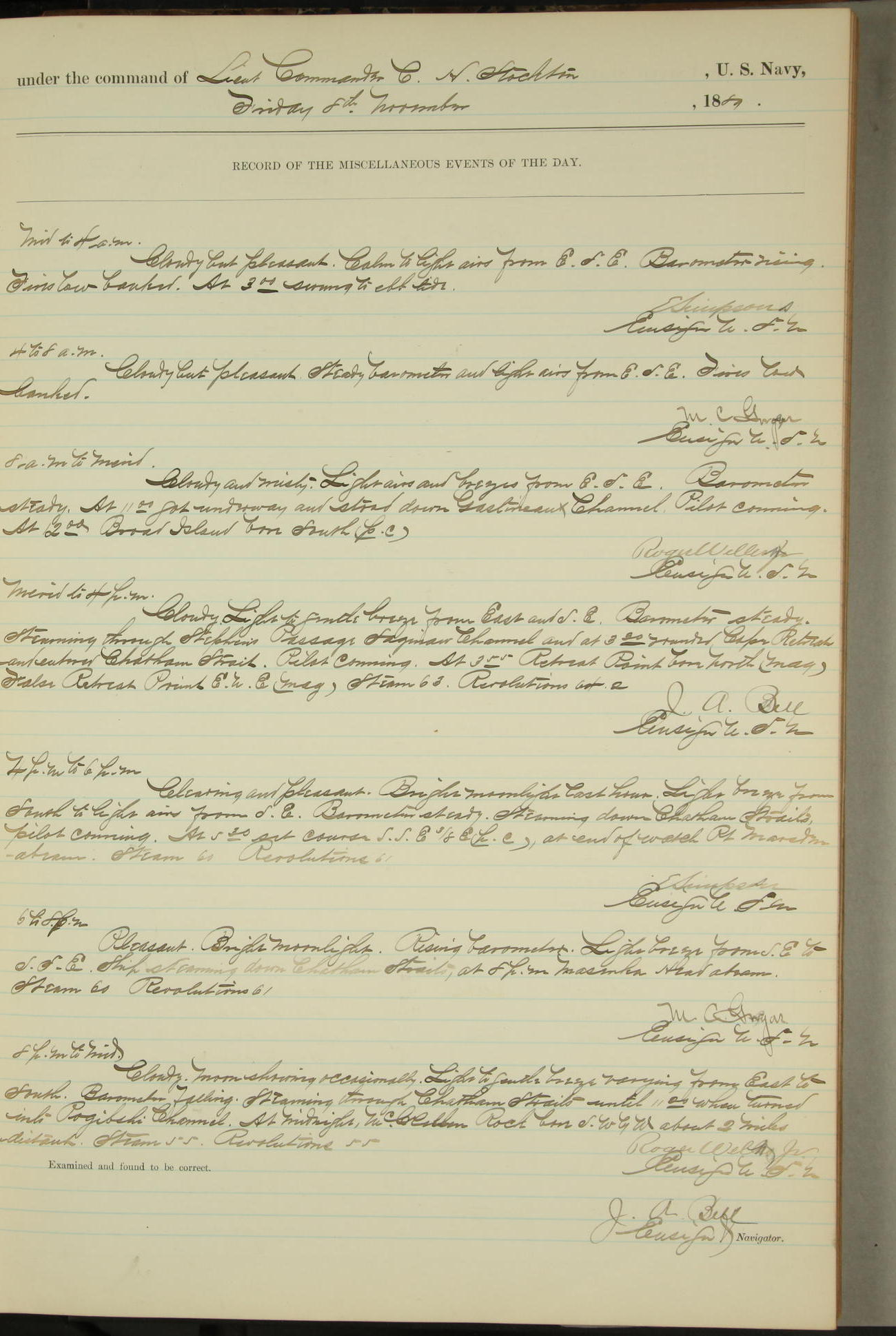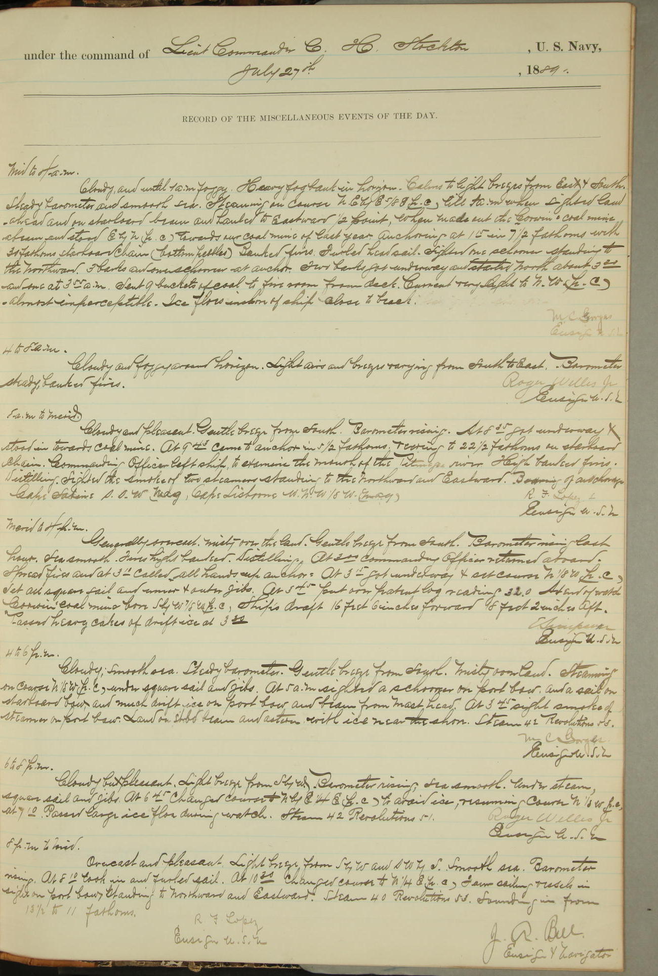 JA Dearborn - At 10am a Summary Court composed of Ensigns Simpson, Gorgas & Dewey as members with Asst Paymaster Lovell as Recorder convened for the tial of JA Dearborn (CH). The court adjourned at 11.20 to await the action of the Comd'g Officer.