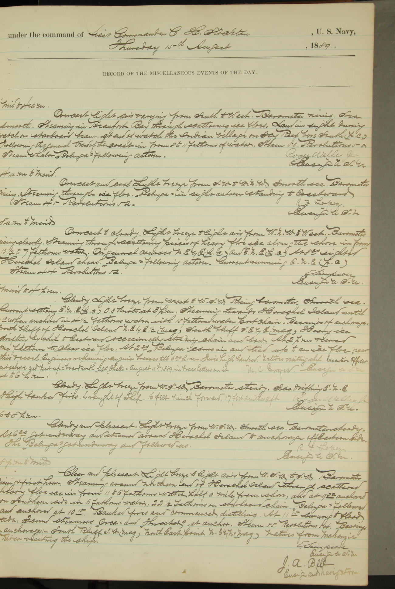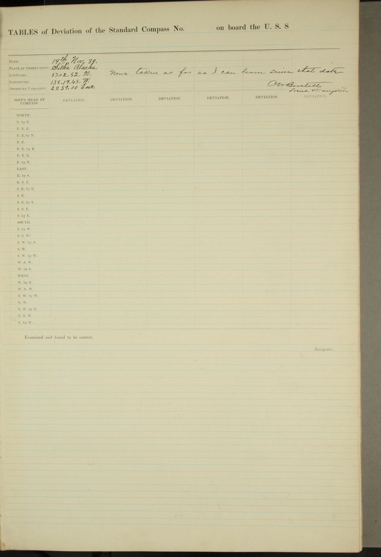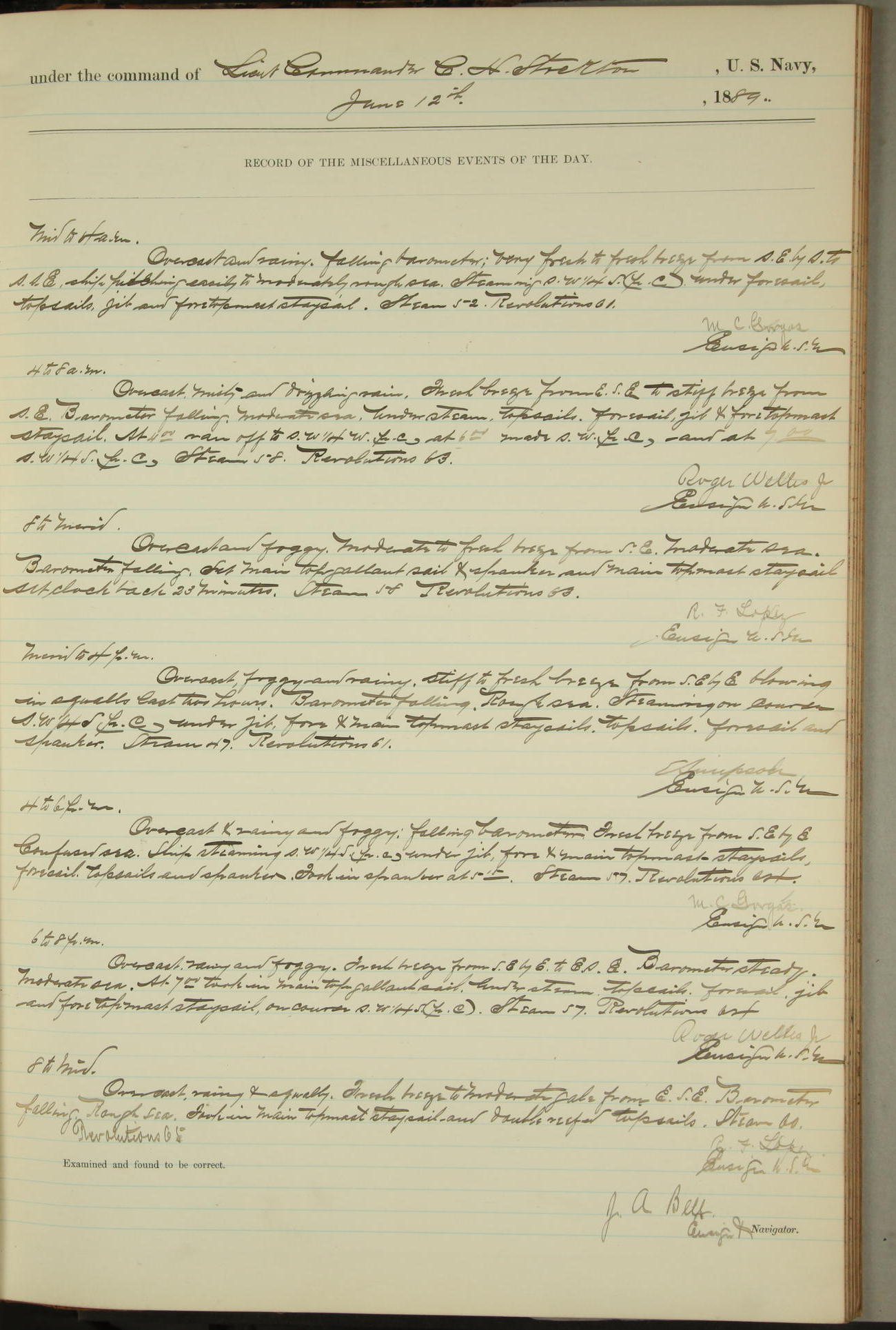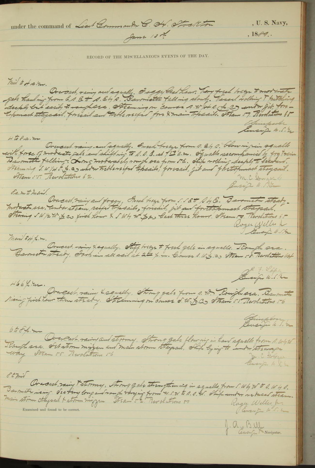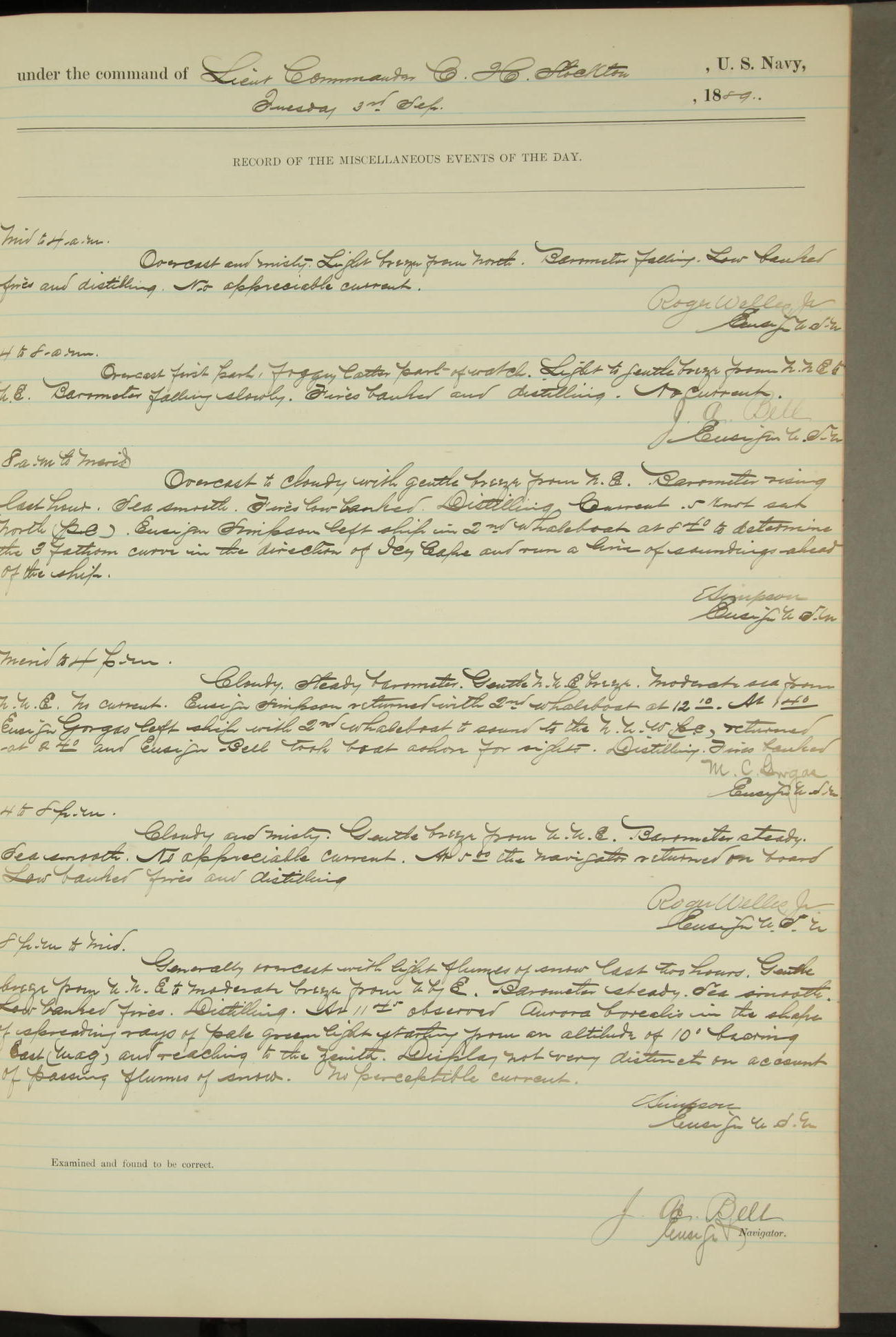 JA Dearborn - At 10am a Summary Court composed of Ensigns Simpson, Gorgas & Dewey as members with Asst Paymaster Lovell as Recorder convened for the tial of JA Dearborn (CH). The court adjourned at 11.20 to await the action of the Comd'g Officer.
