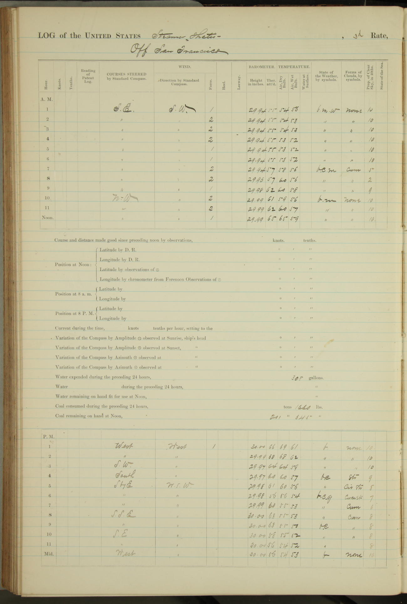 Commenced reading Holosteric Barometer at 1pm.