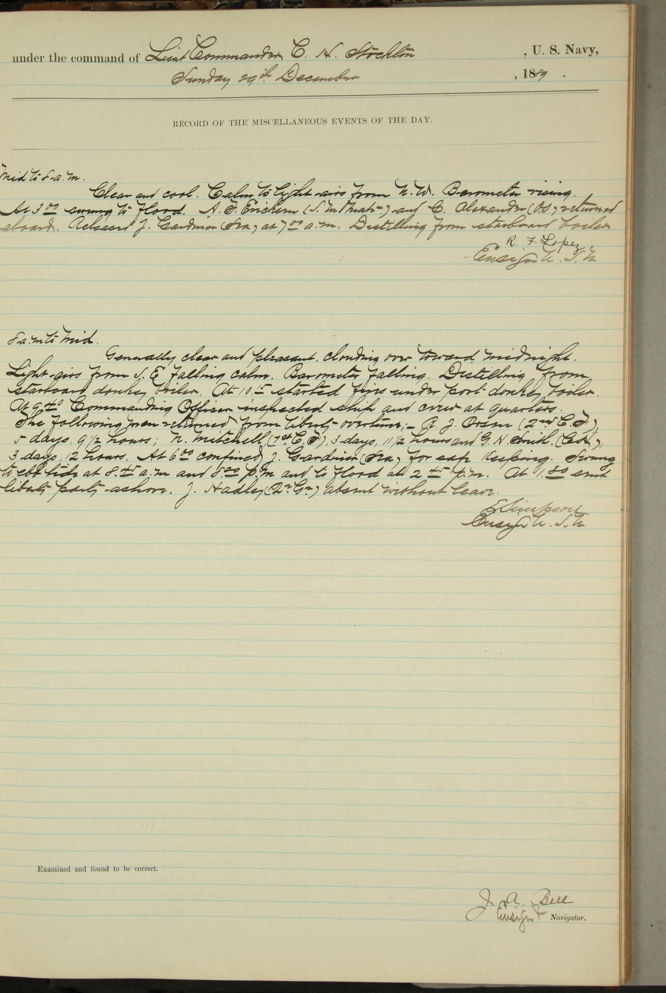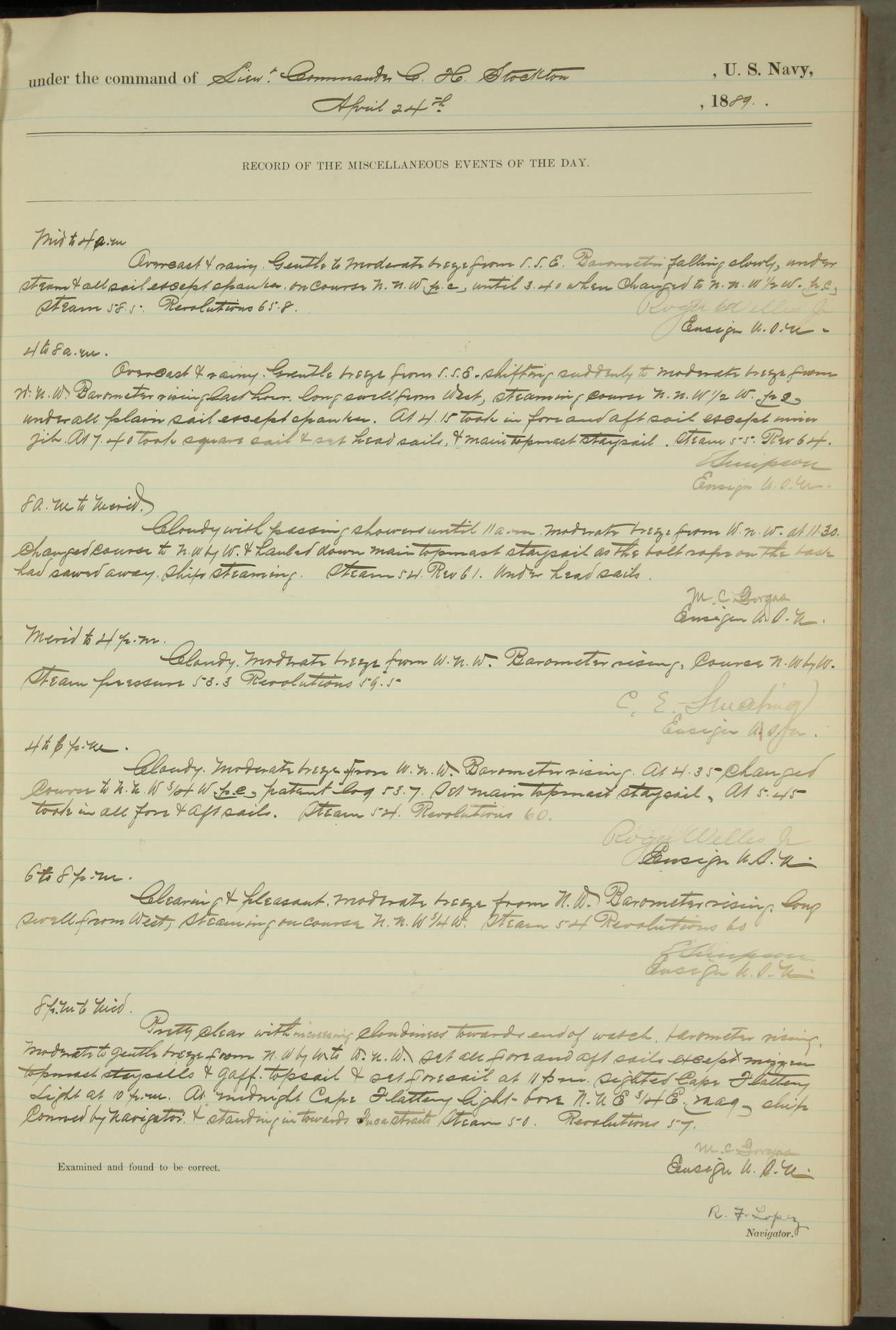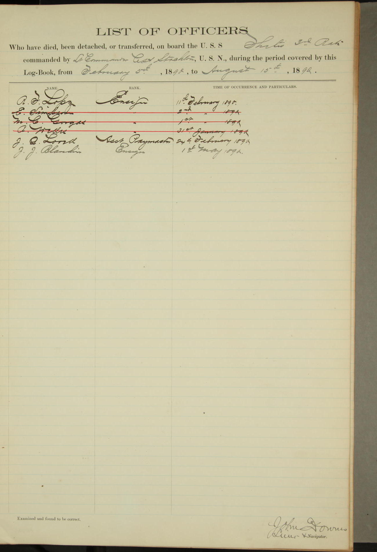 R F Lopez, Ensign + Navigator -