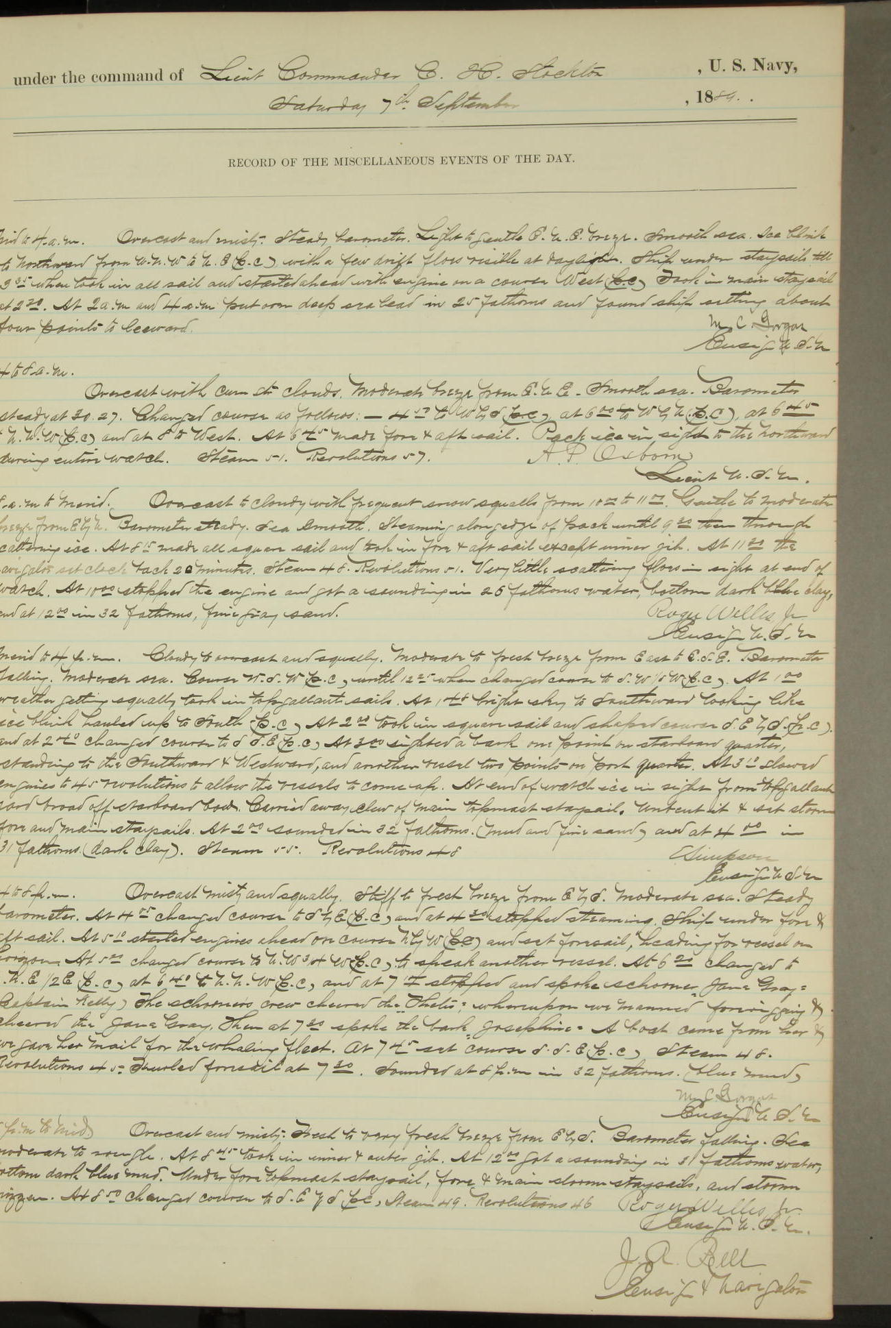 At 9.24AM a salute of 11 guns was fired from the Navy Yard shore-battery and at 9.45AM the USS Swatara fired a salute of 11 guns in honor of Commodore John Irwin, President of the Board of Instruction.