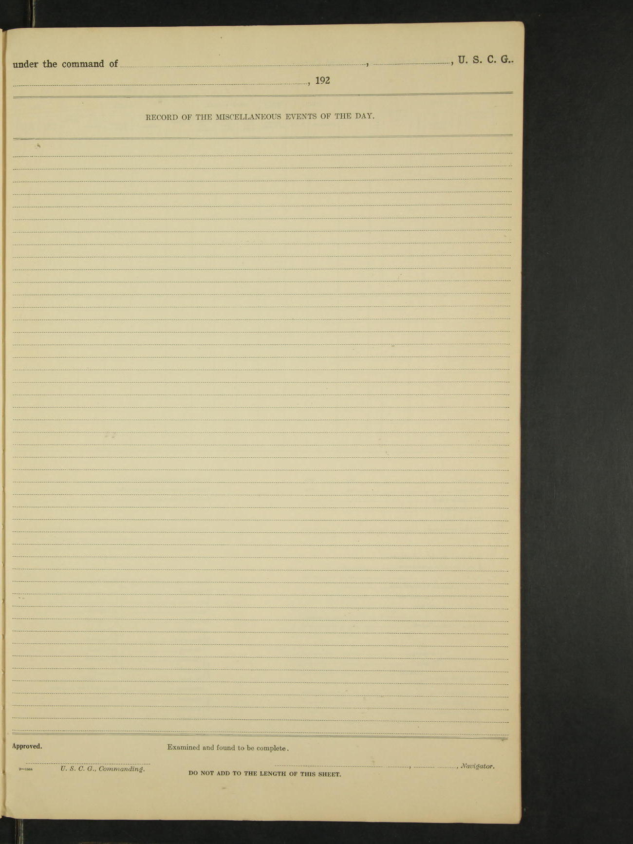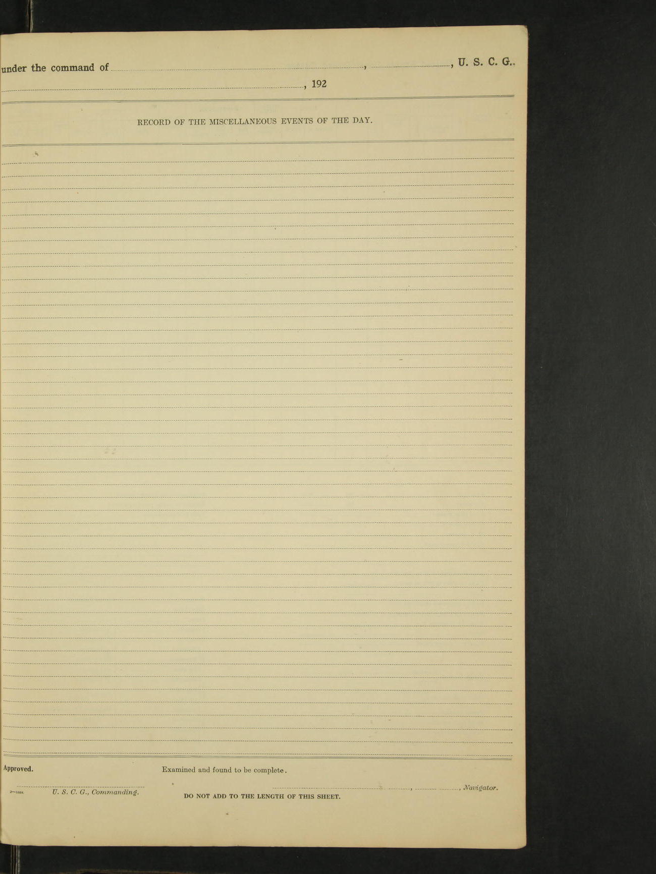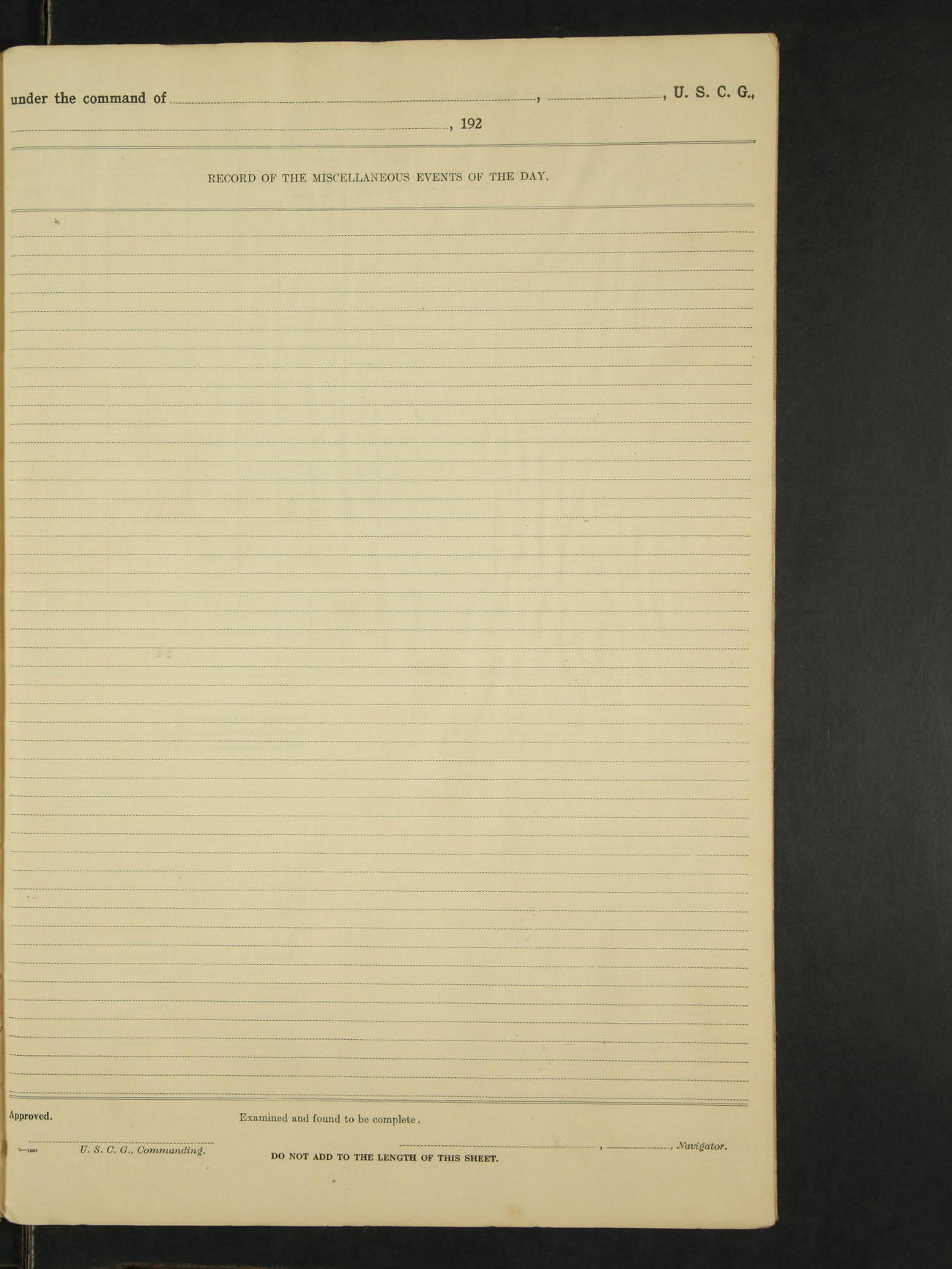 *The following named men were placed on the binnacle list by the ship's medical officer; Clarence L. McFarland, RM 2c, Floyd Smith, F 1c. Santiago M. Cezar, M.Att 1c was placed on the binnacle list by the ship's medical officer, for a disease due to his own misconduct, no pay accrue after this date.