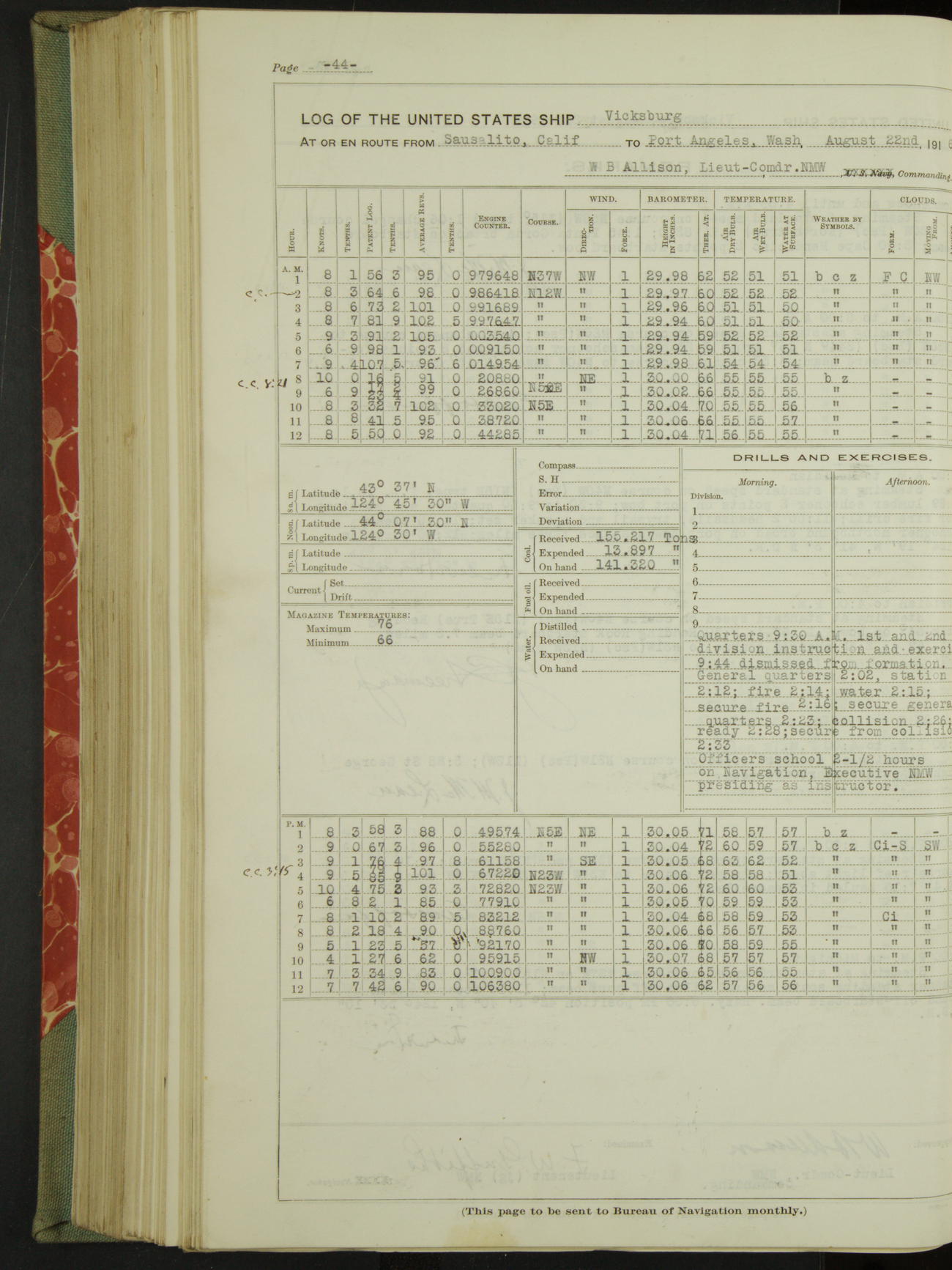 50874eb209d409075501abfd: (http://oldweather.s3.amazonaws.com/ow3/final/USS Vicksburg/vol022of023_cr2_to_jpg/vol022of023_157_0.jpg)