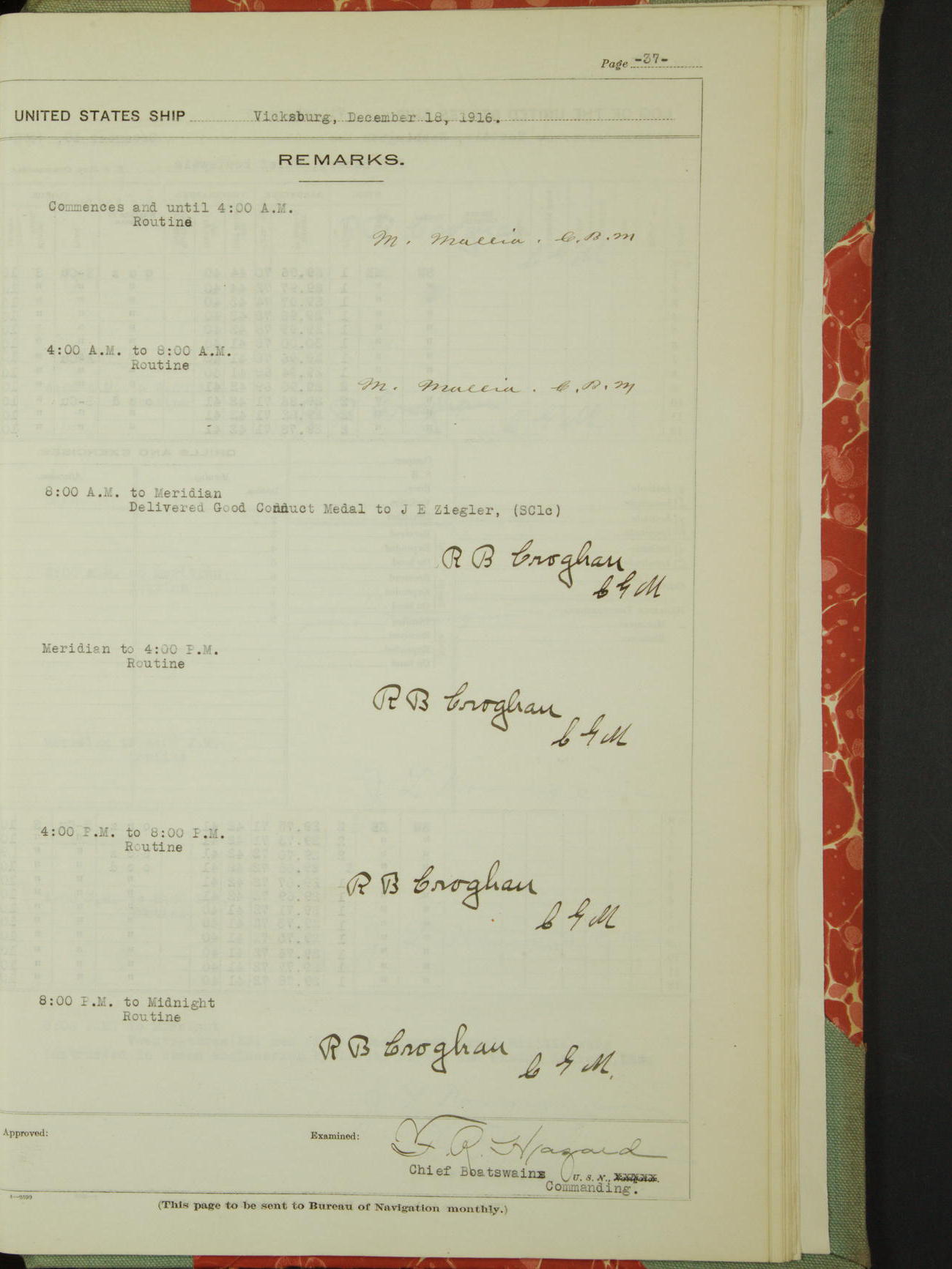 JE Ziegler (SC1c) - delivered good conduct medal