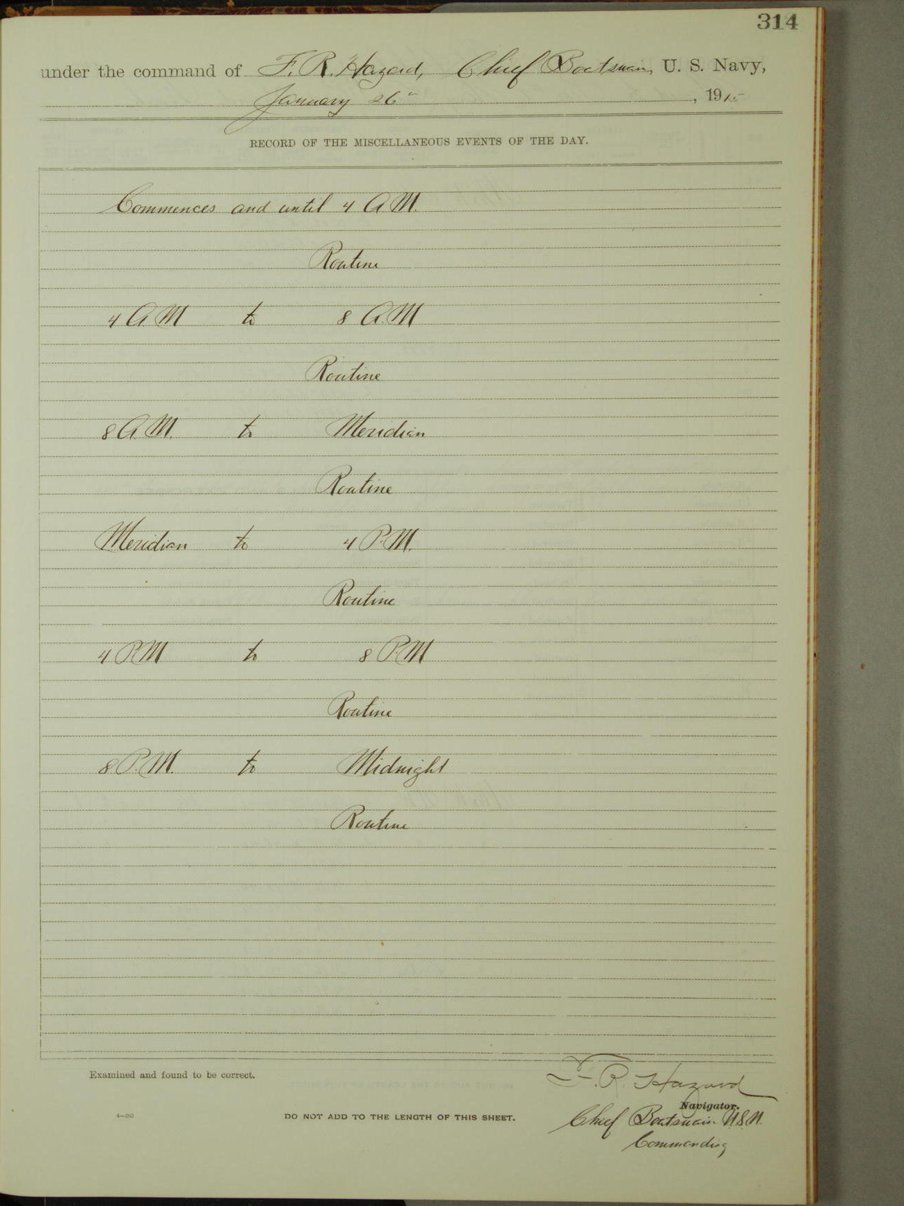 LOGS FOR JANUARY 1915