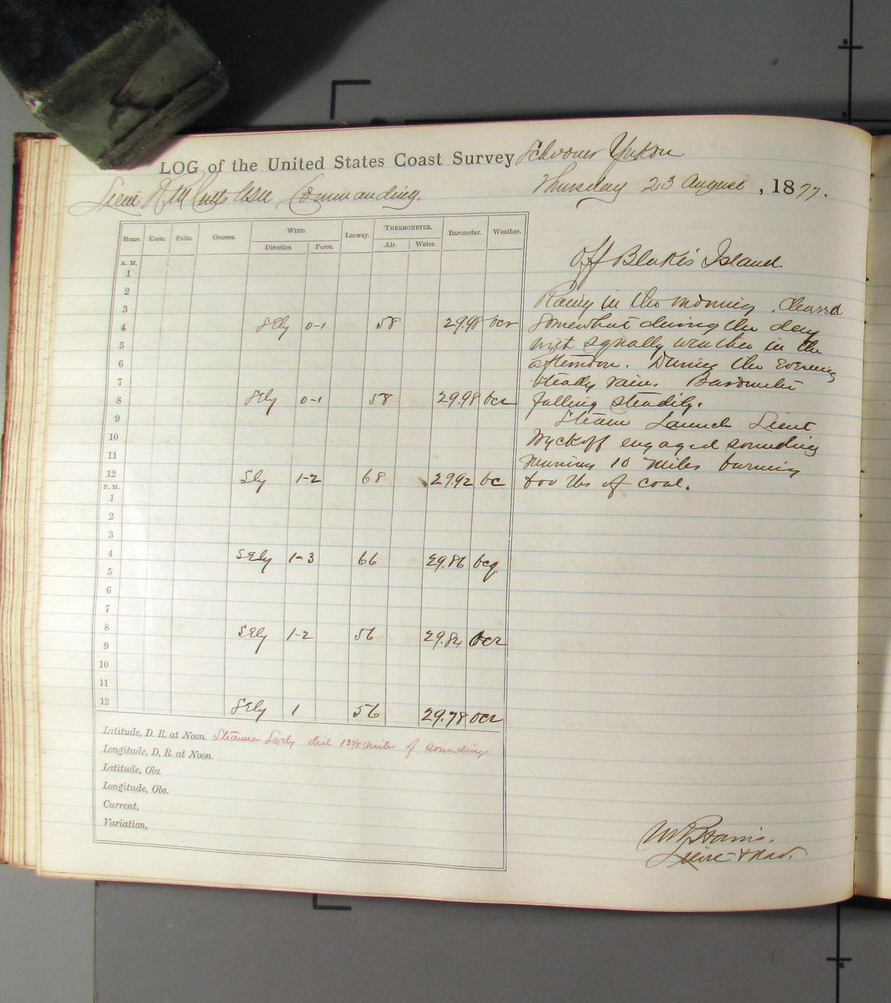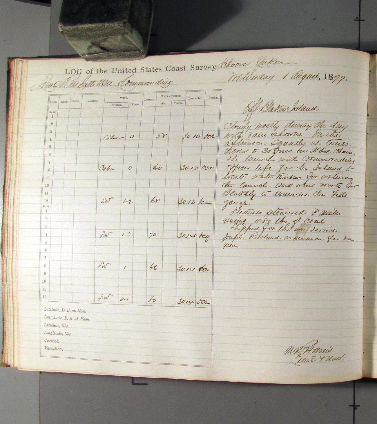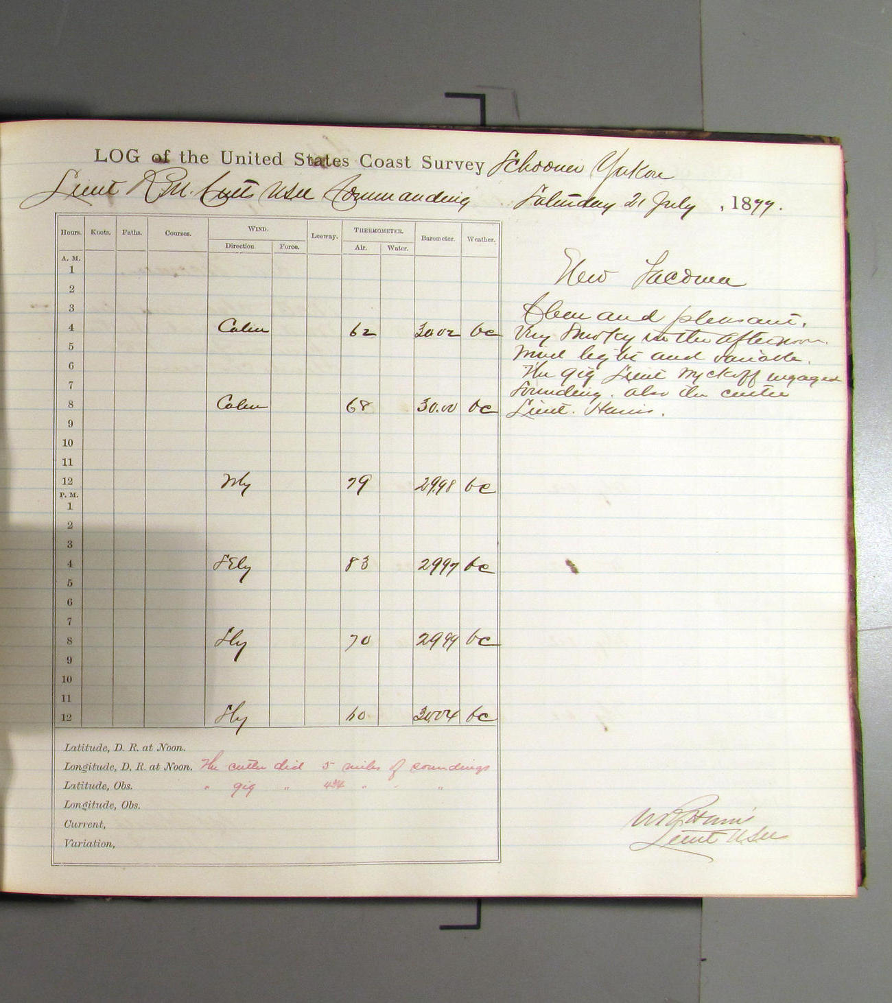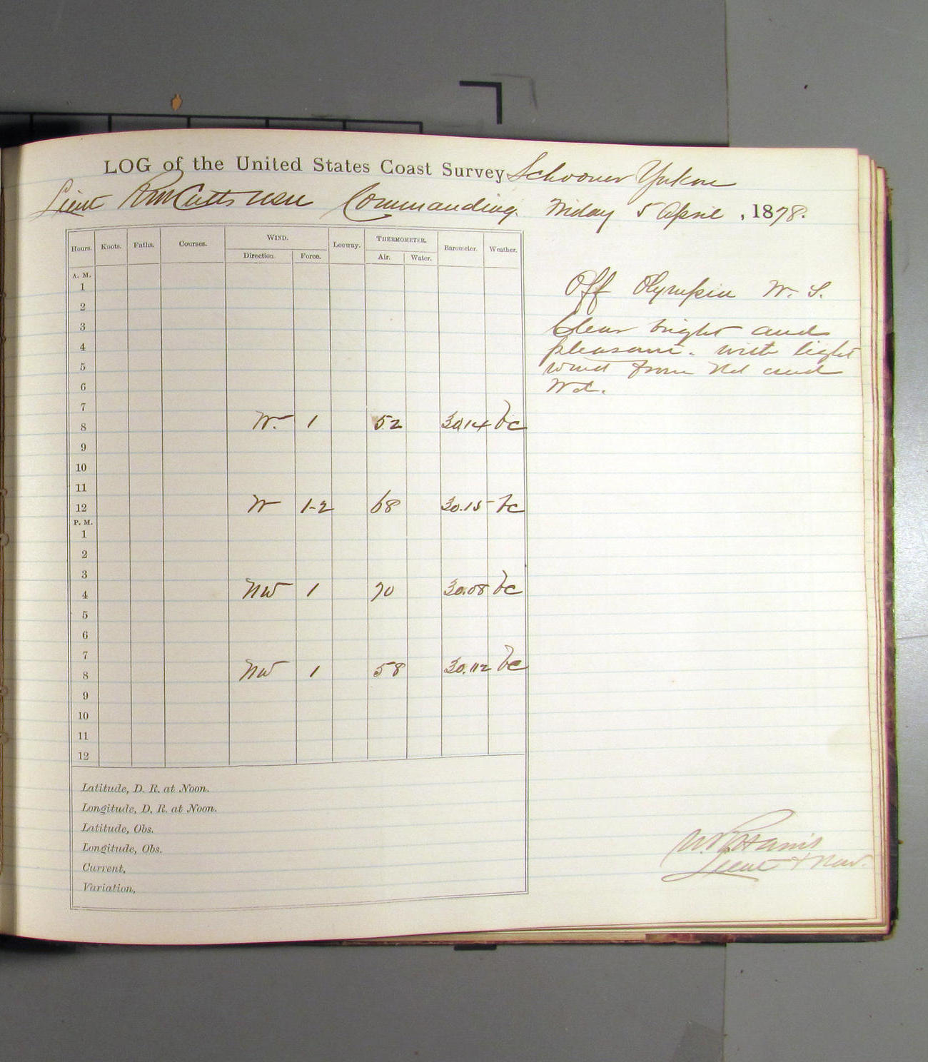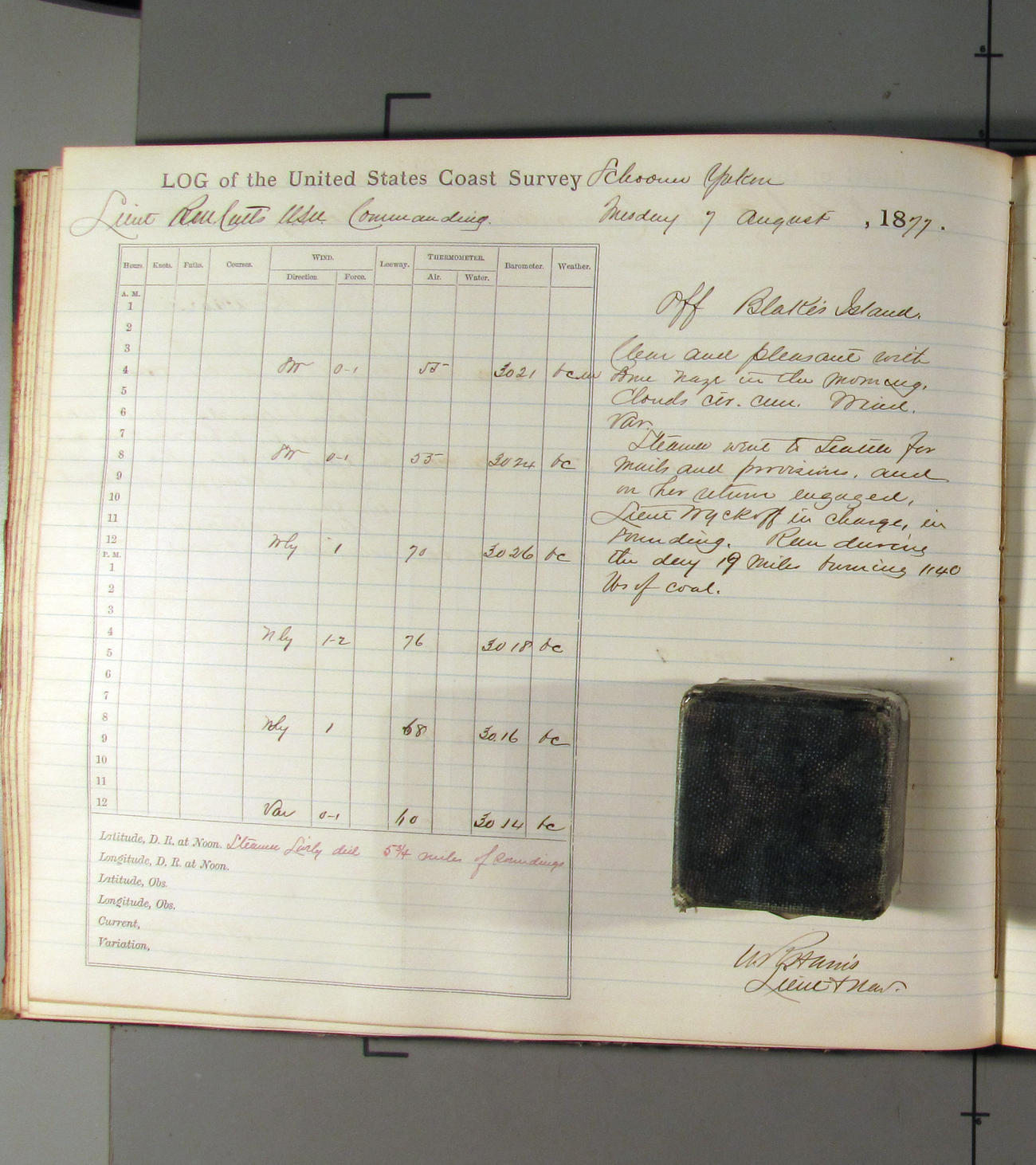 This day commences with light variable airs attended by light rain. Latter part wind fresh NW. Weather clear.