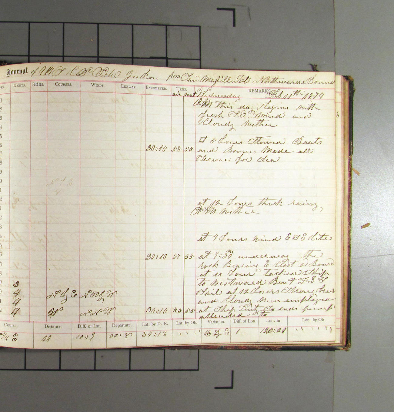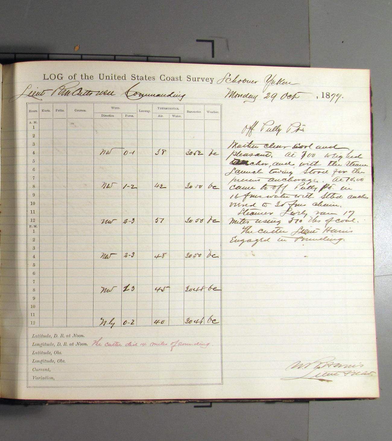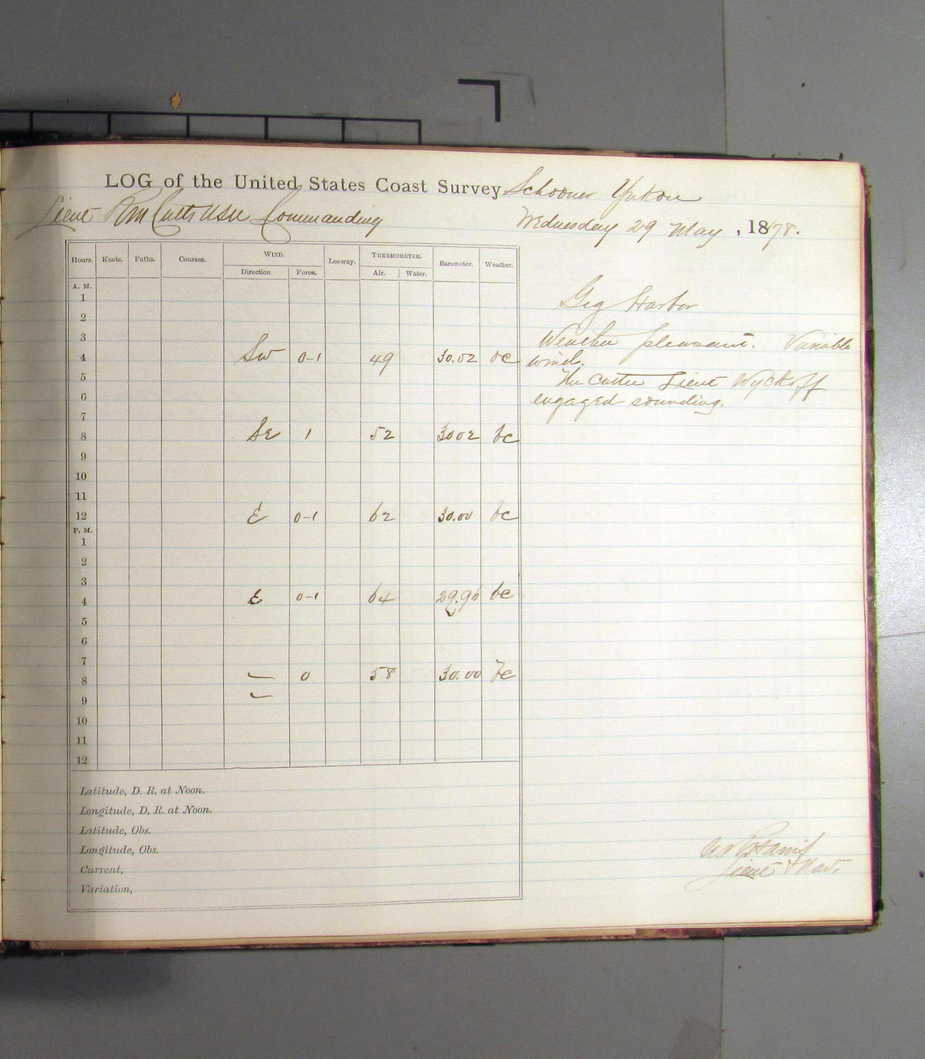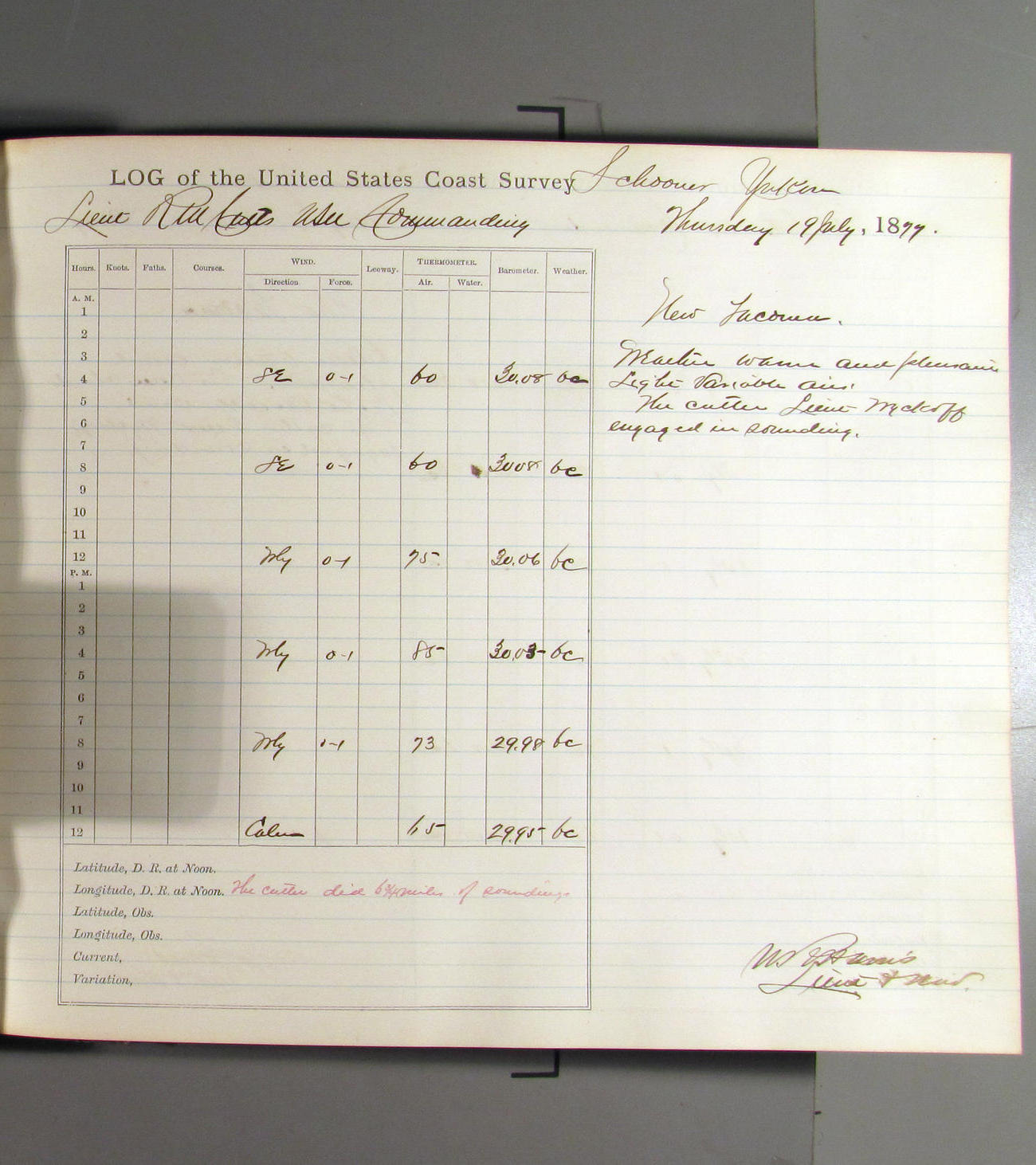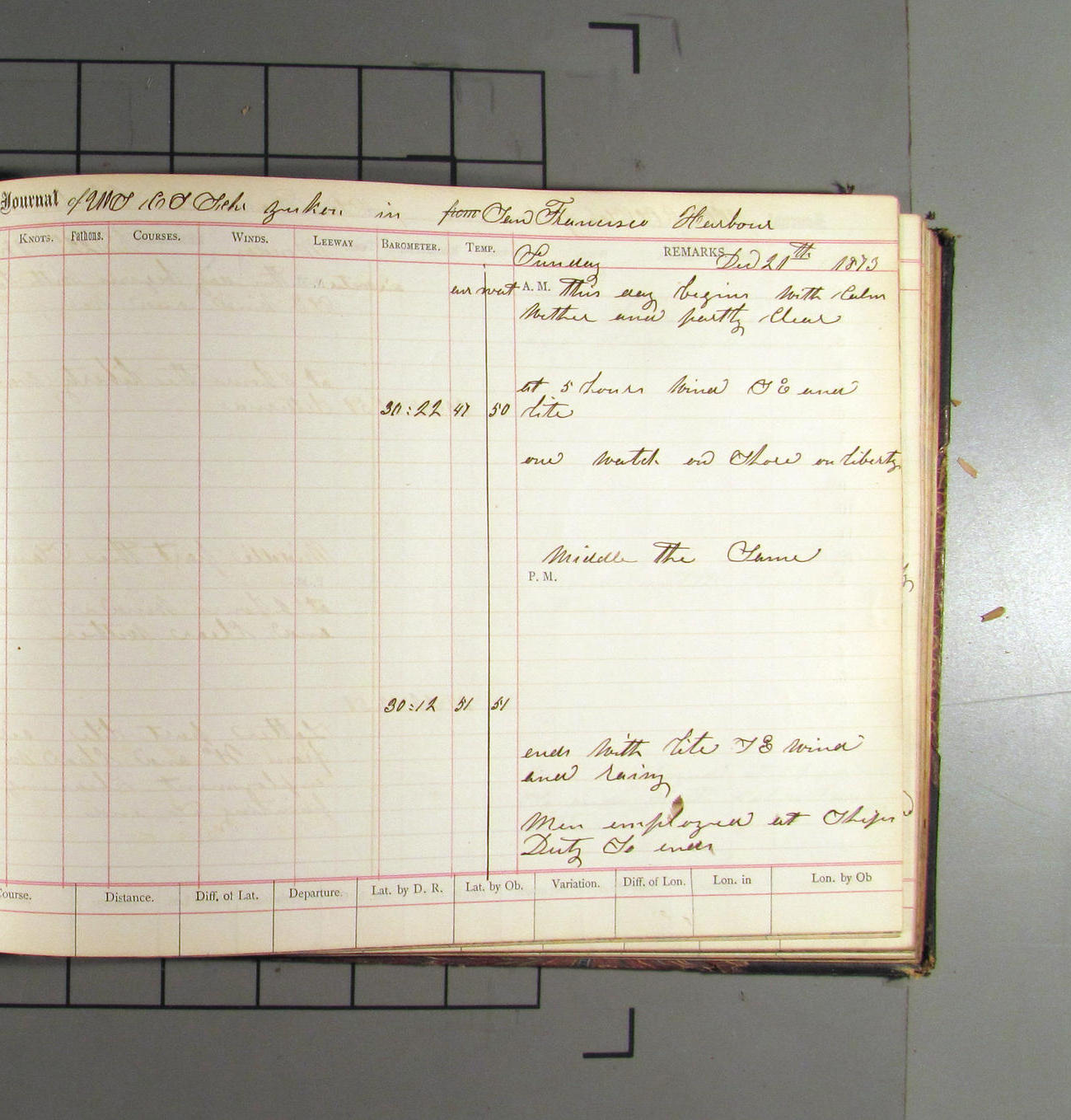 This day commences with light variable airs attended by light rain. Latter part wind fresh NW. Weather clear.