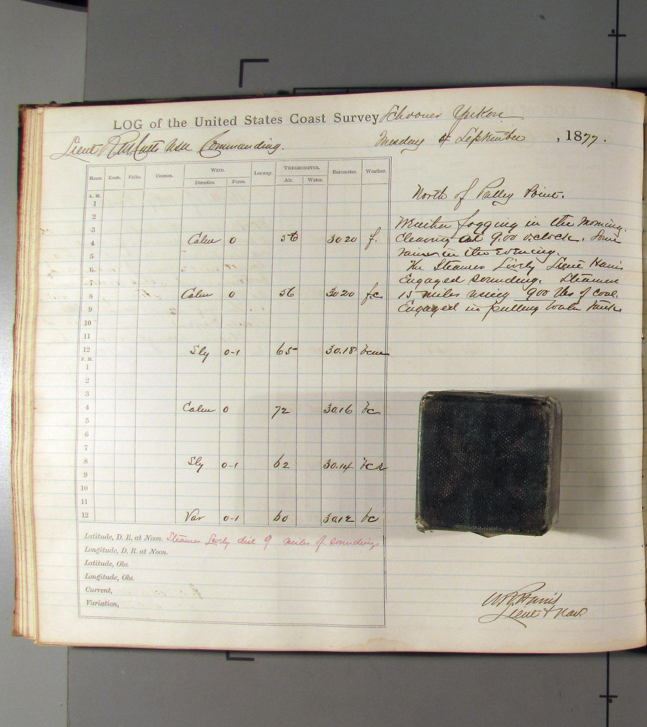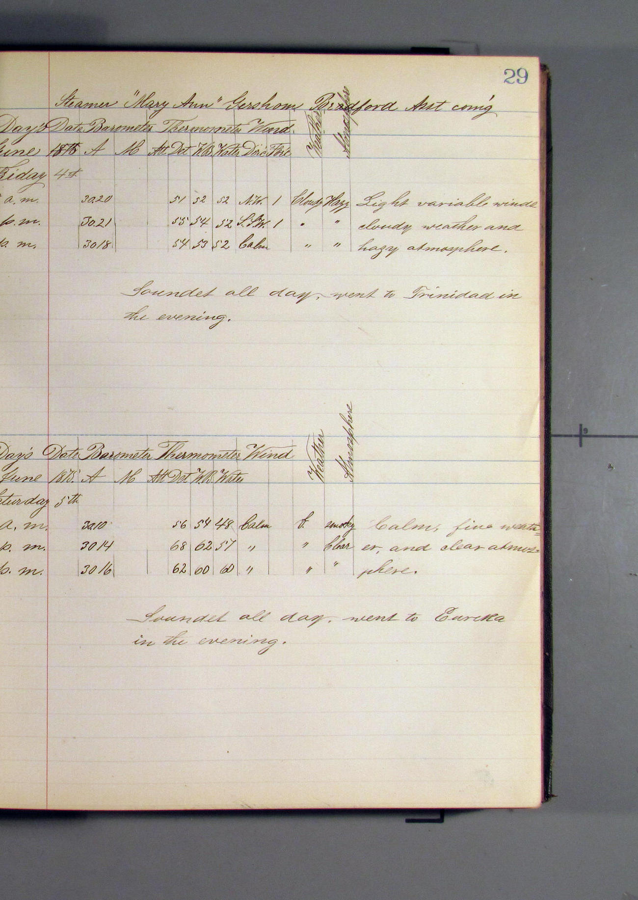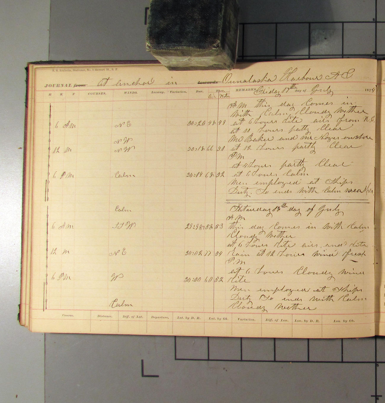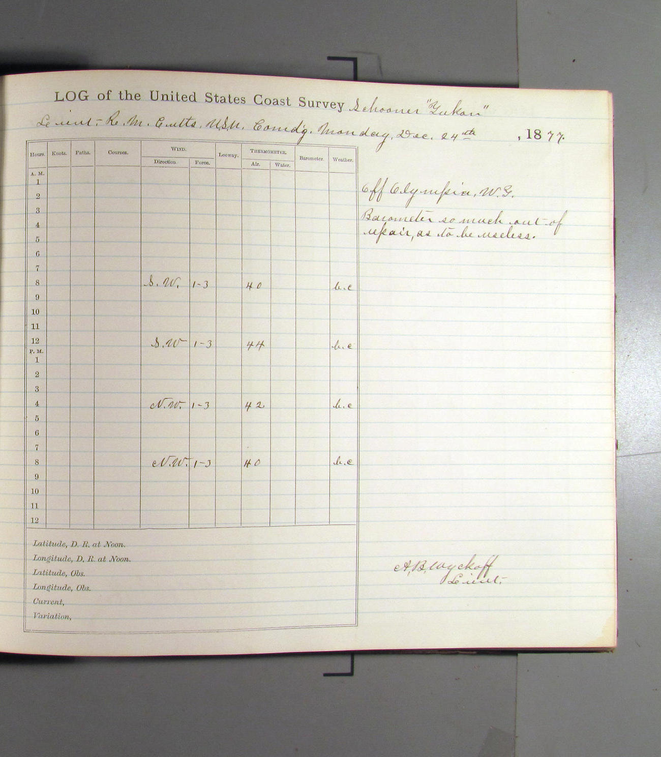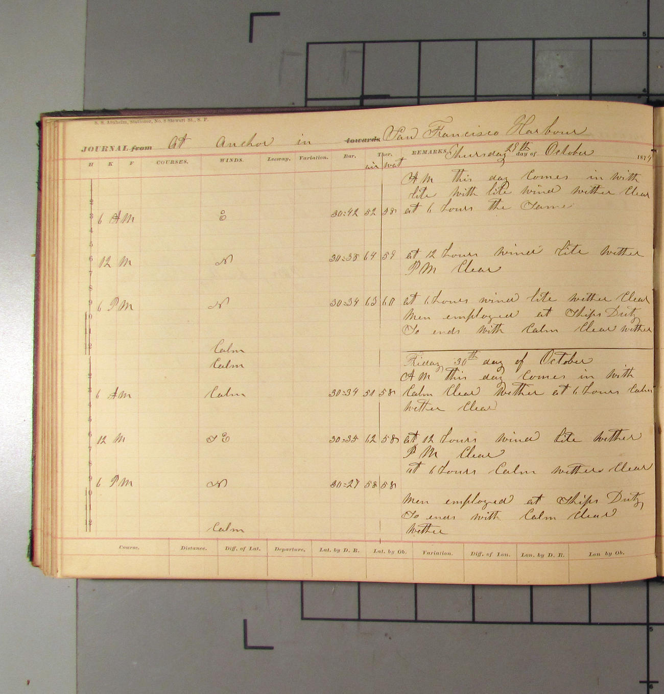 This day commences with light variable airs attended by light rain. Latter part wind fresh NW. Weather clear.