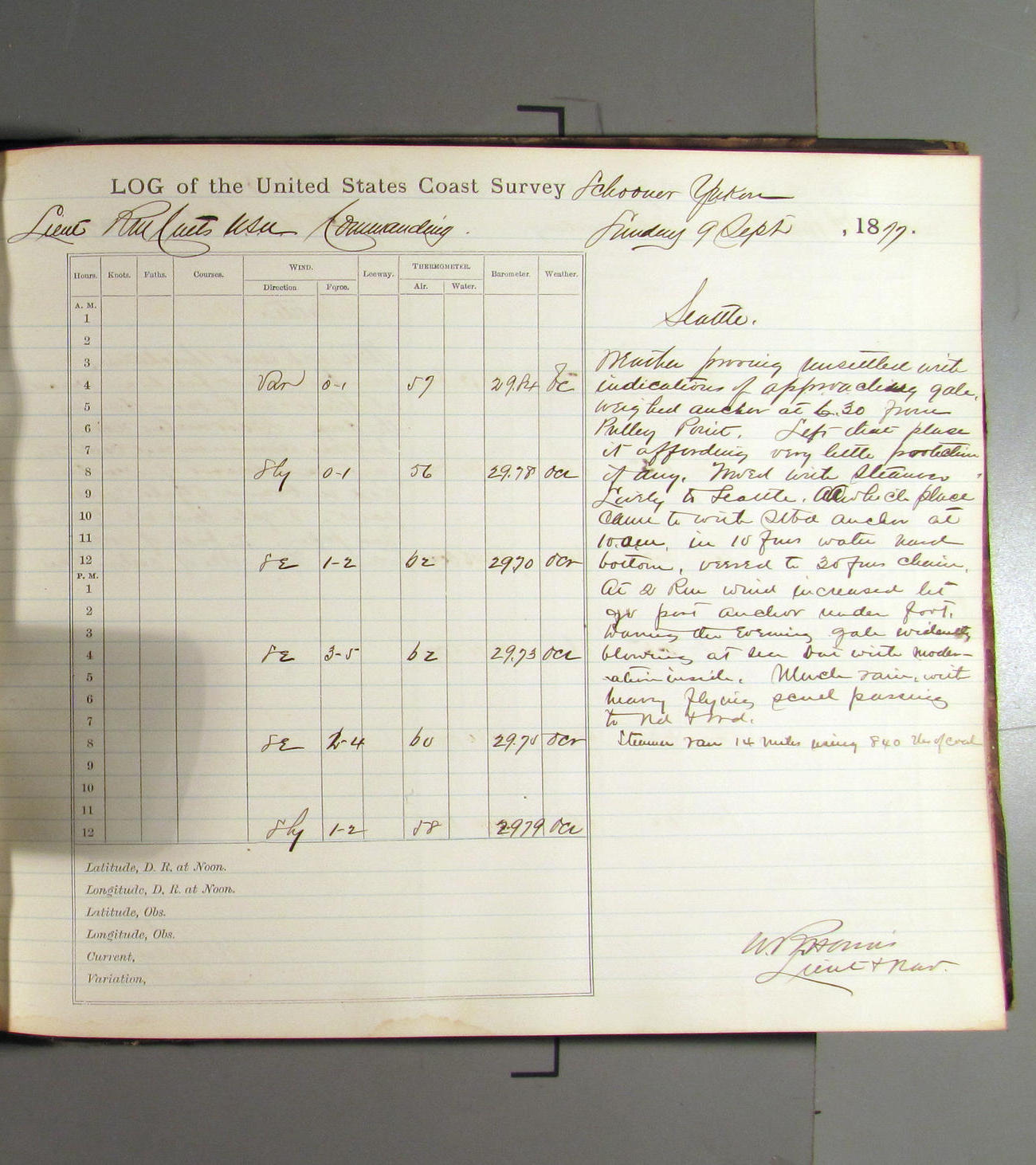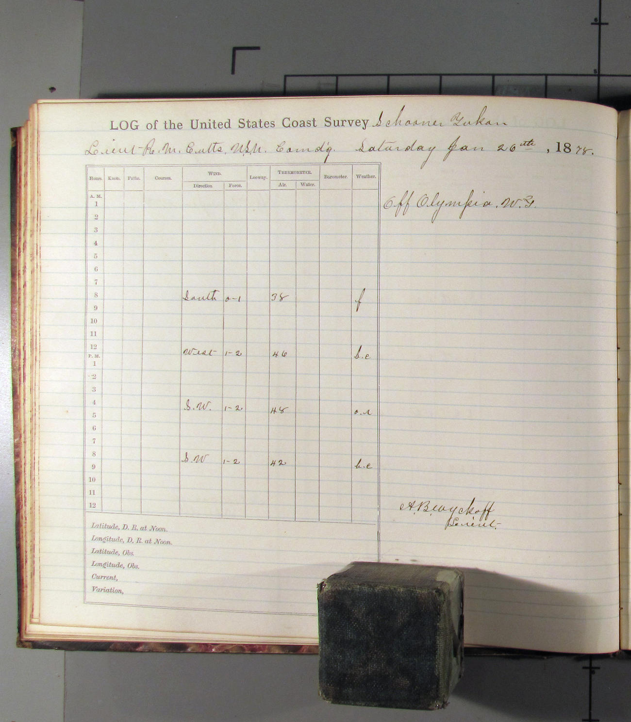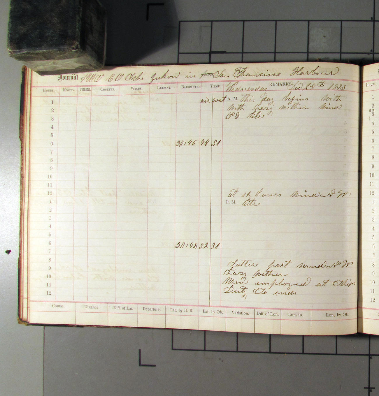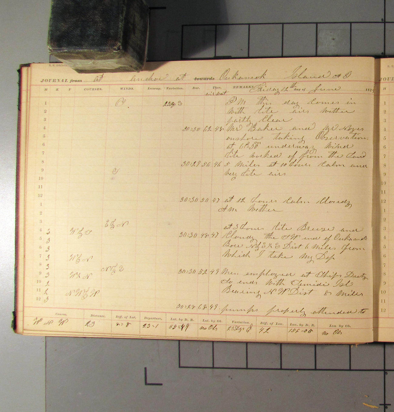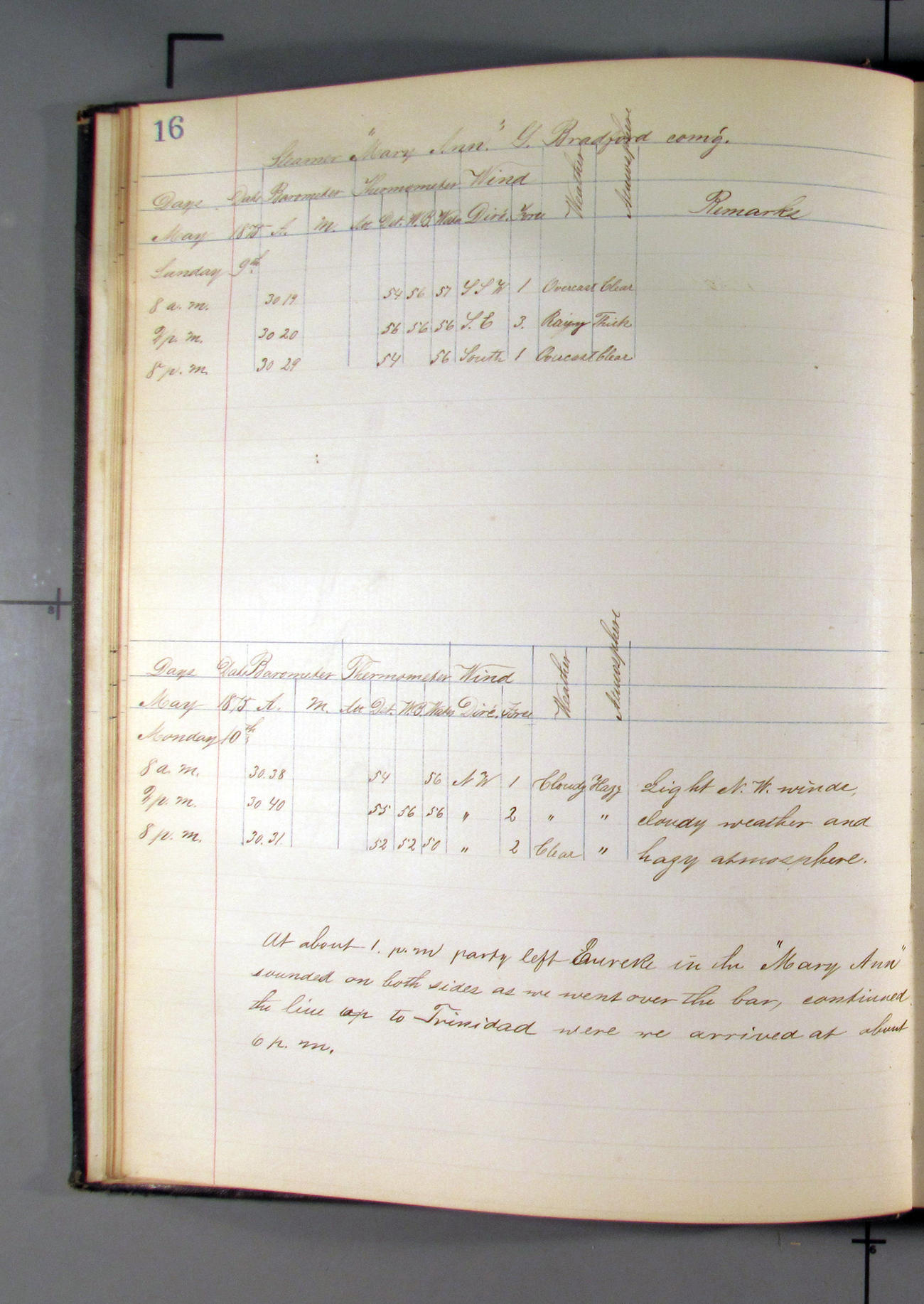 This day commences with light variable airs attended by light rain. Latter part wind fresh NW. Weather clear.