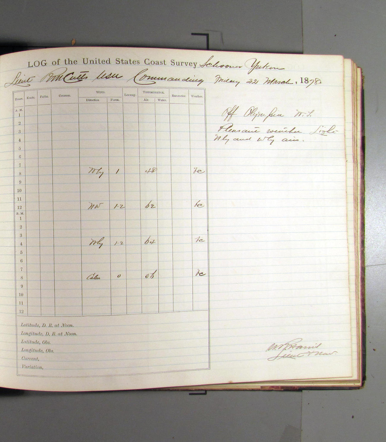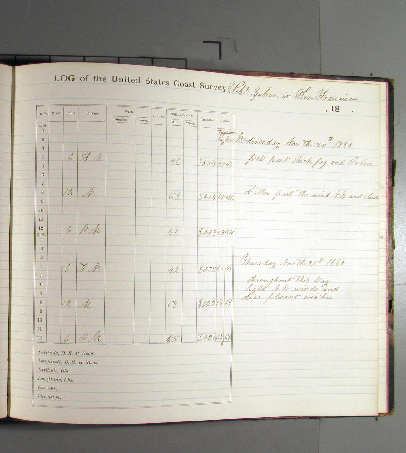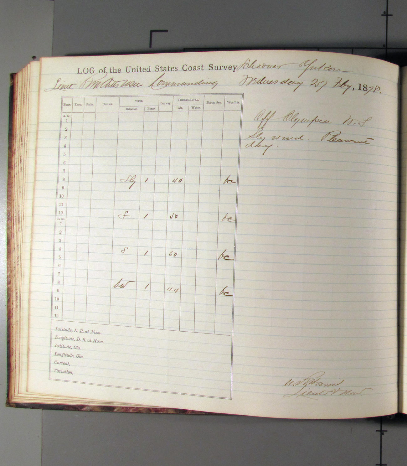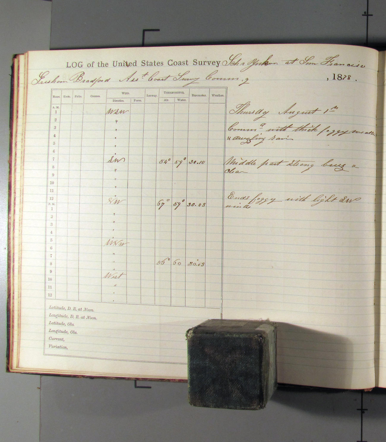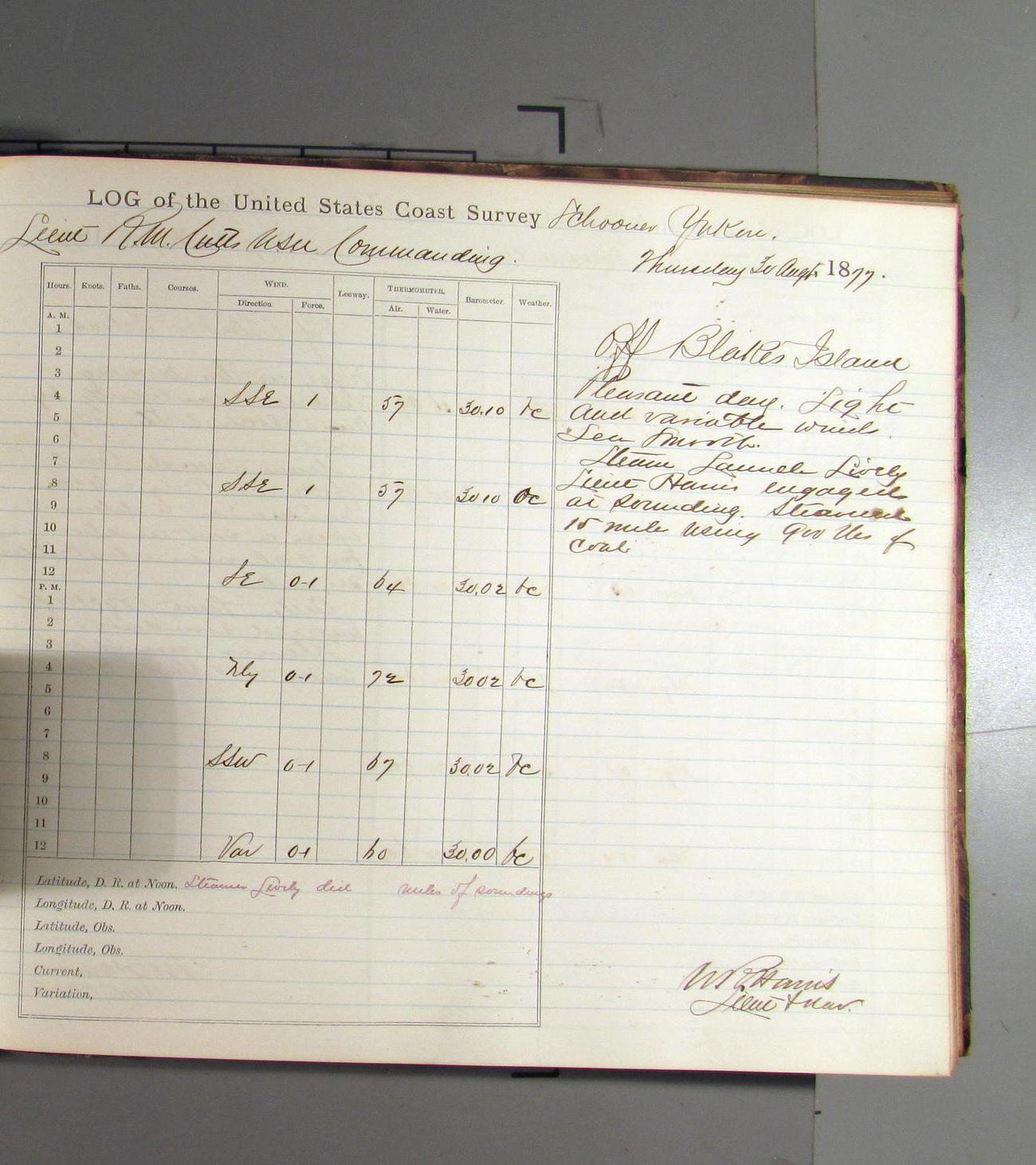 This day commences with light variable airs attended by light rain. Latter part wind fresh NW. Weather clear.