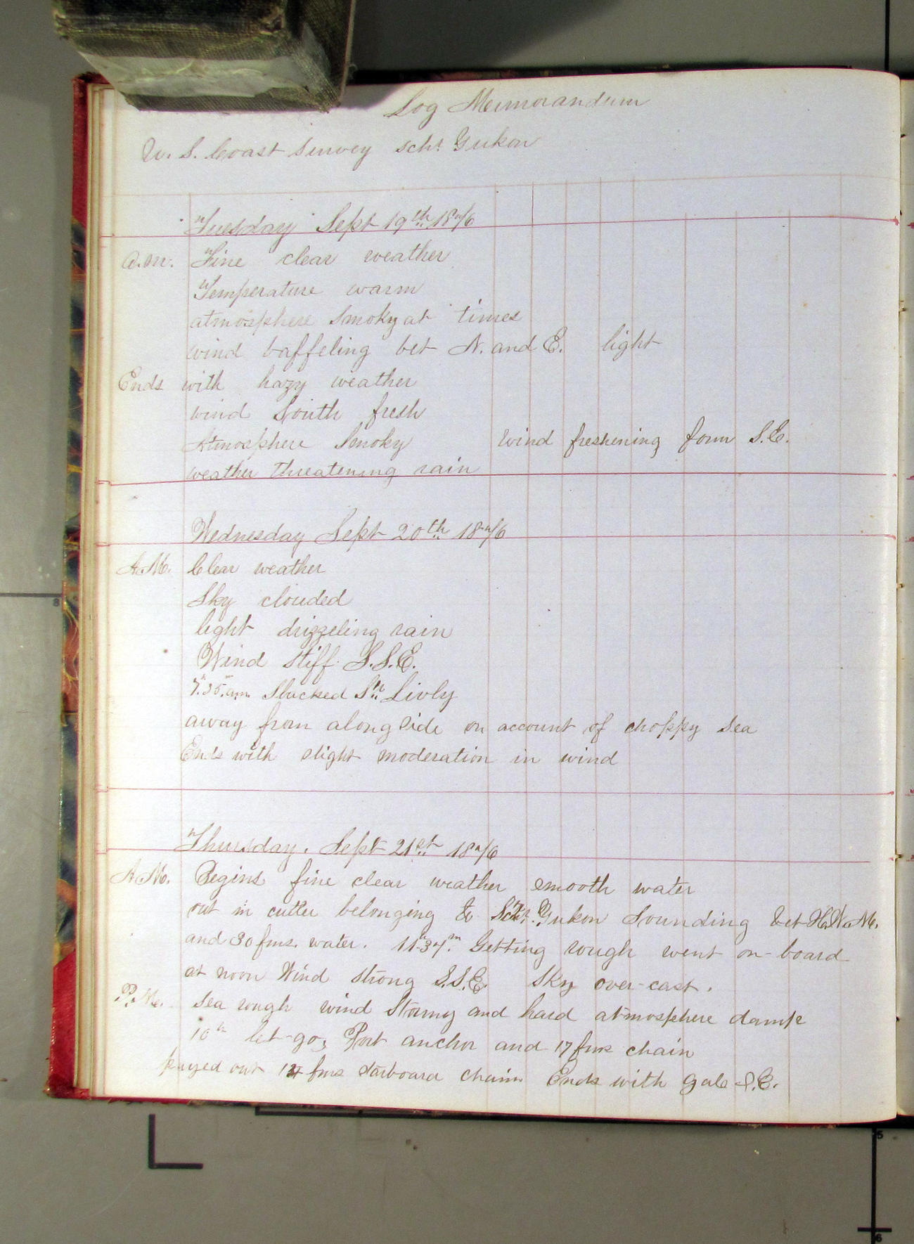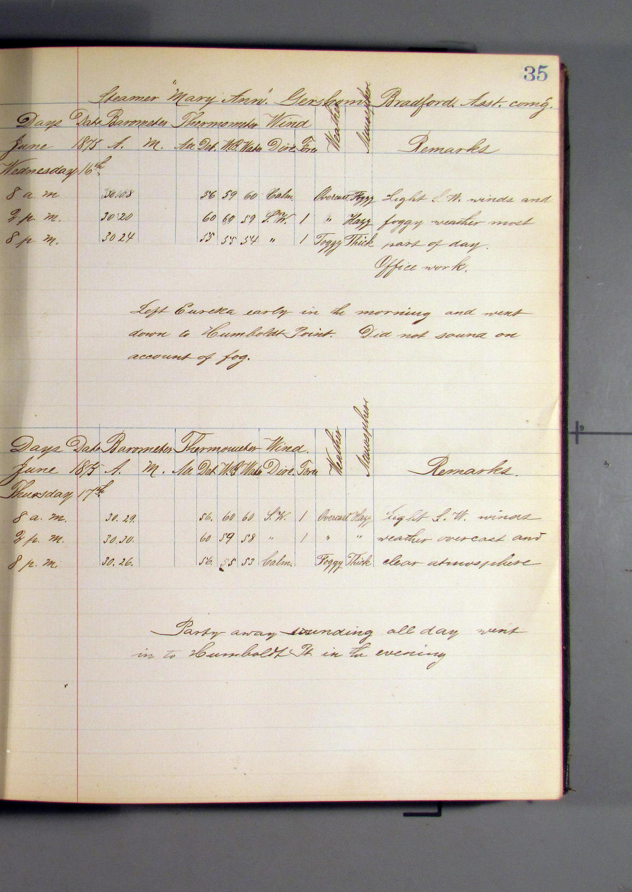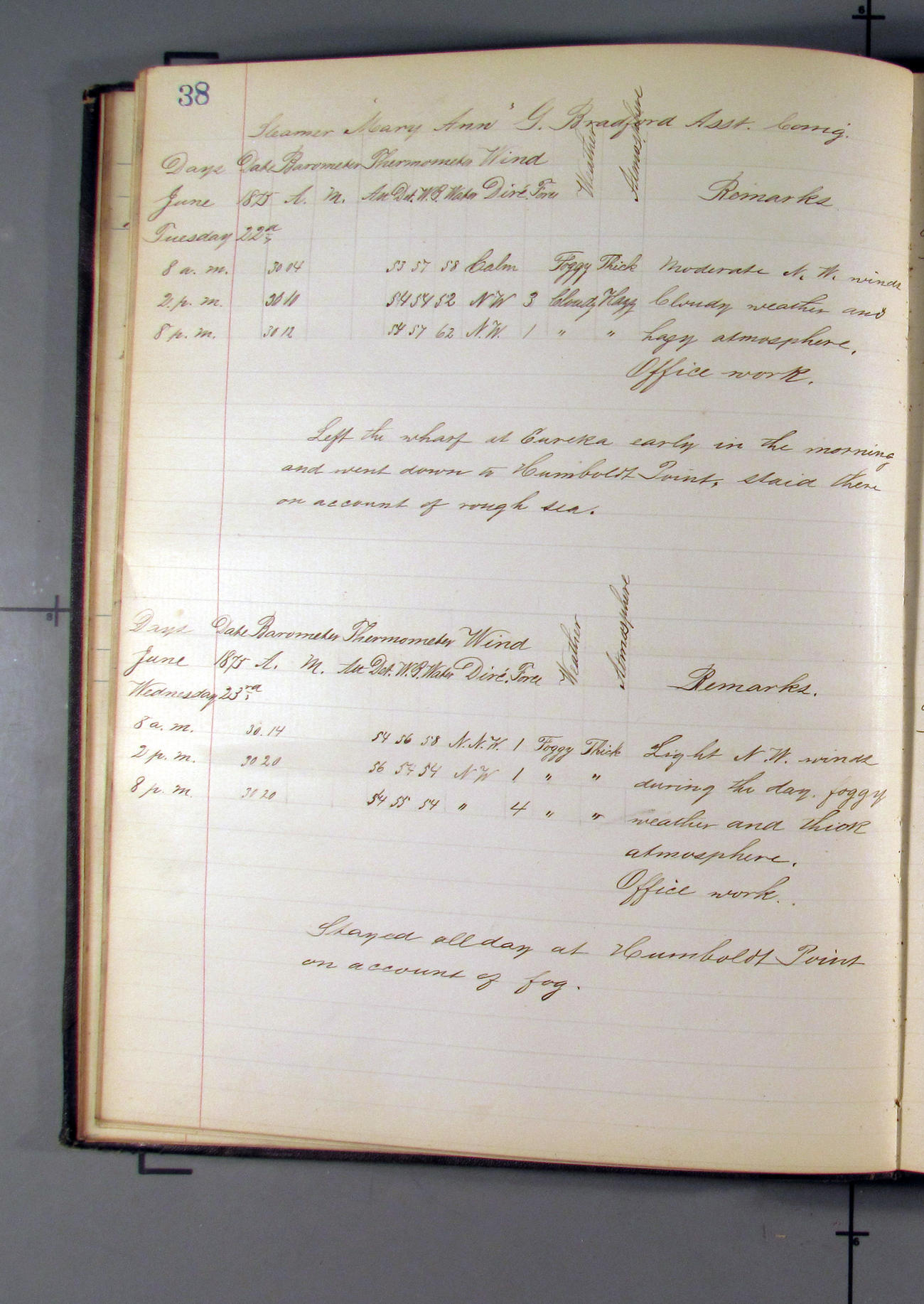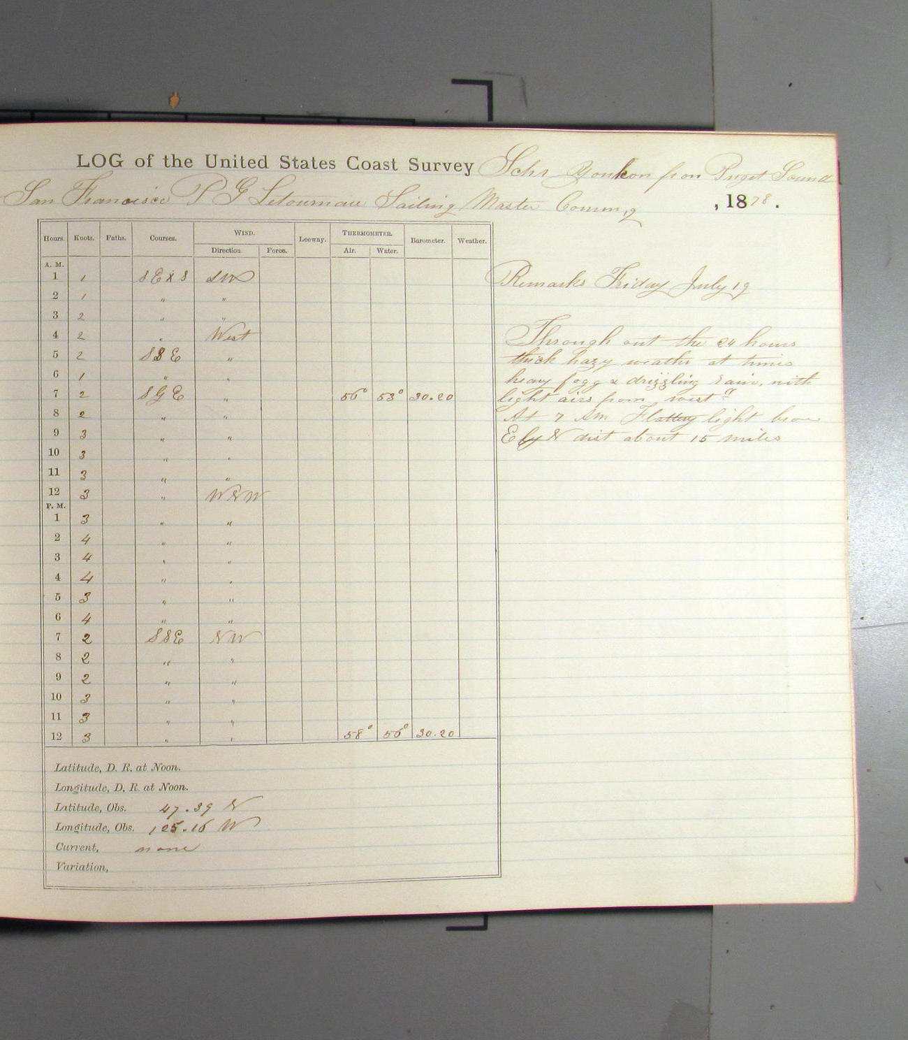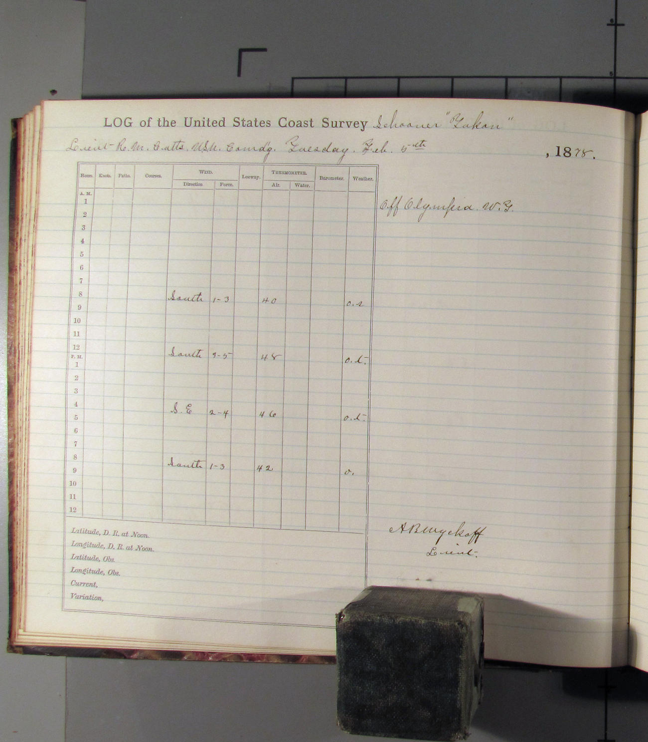 This day commences with light variable airs attended by light rain. Latter part wind fresh NW. Weather clear.