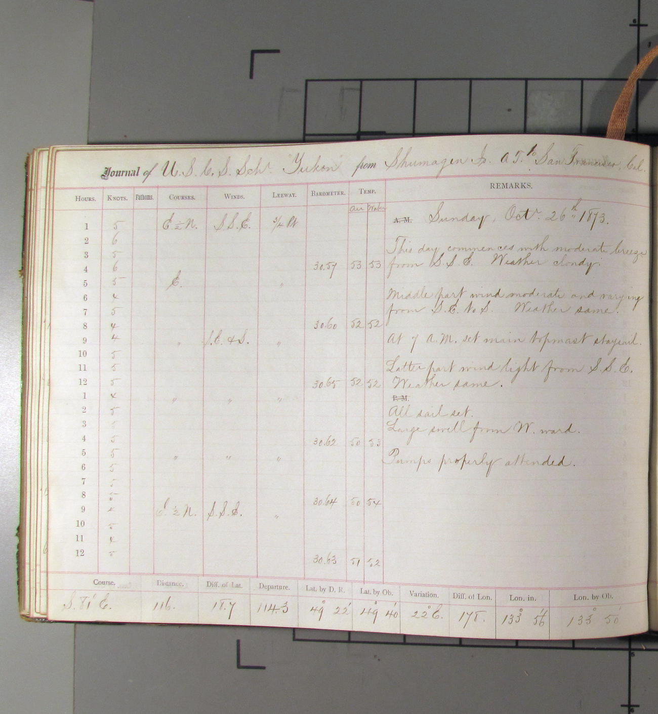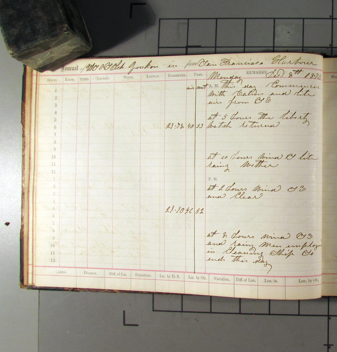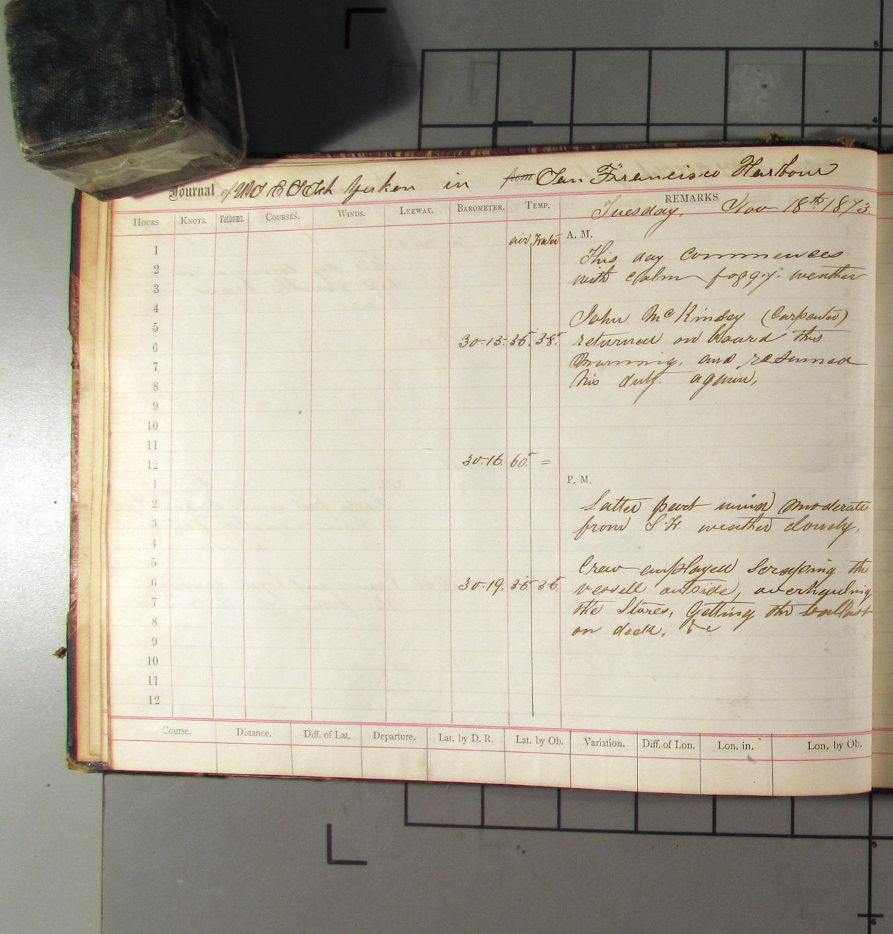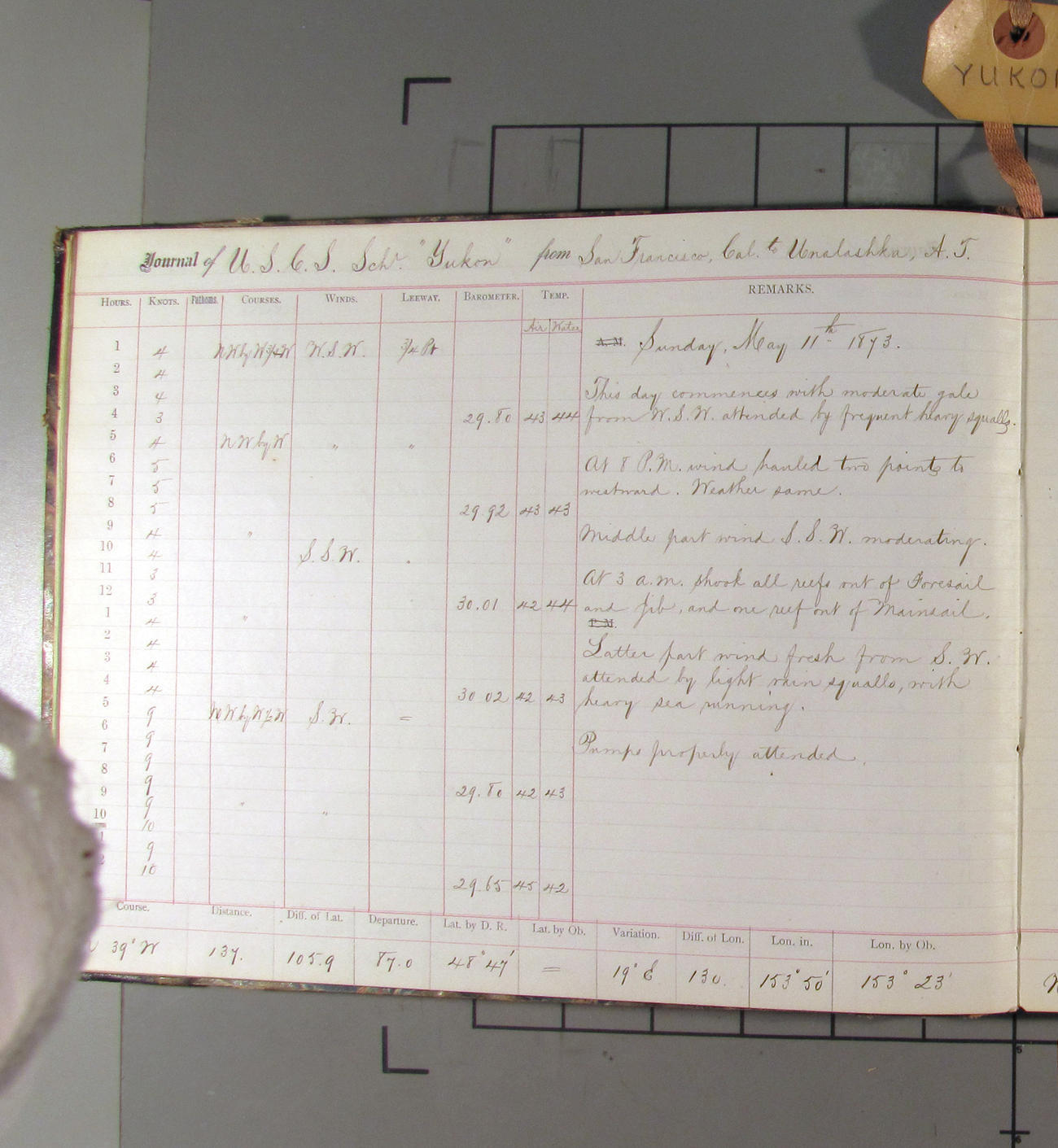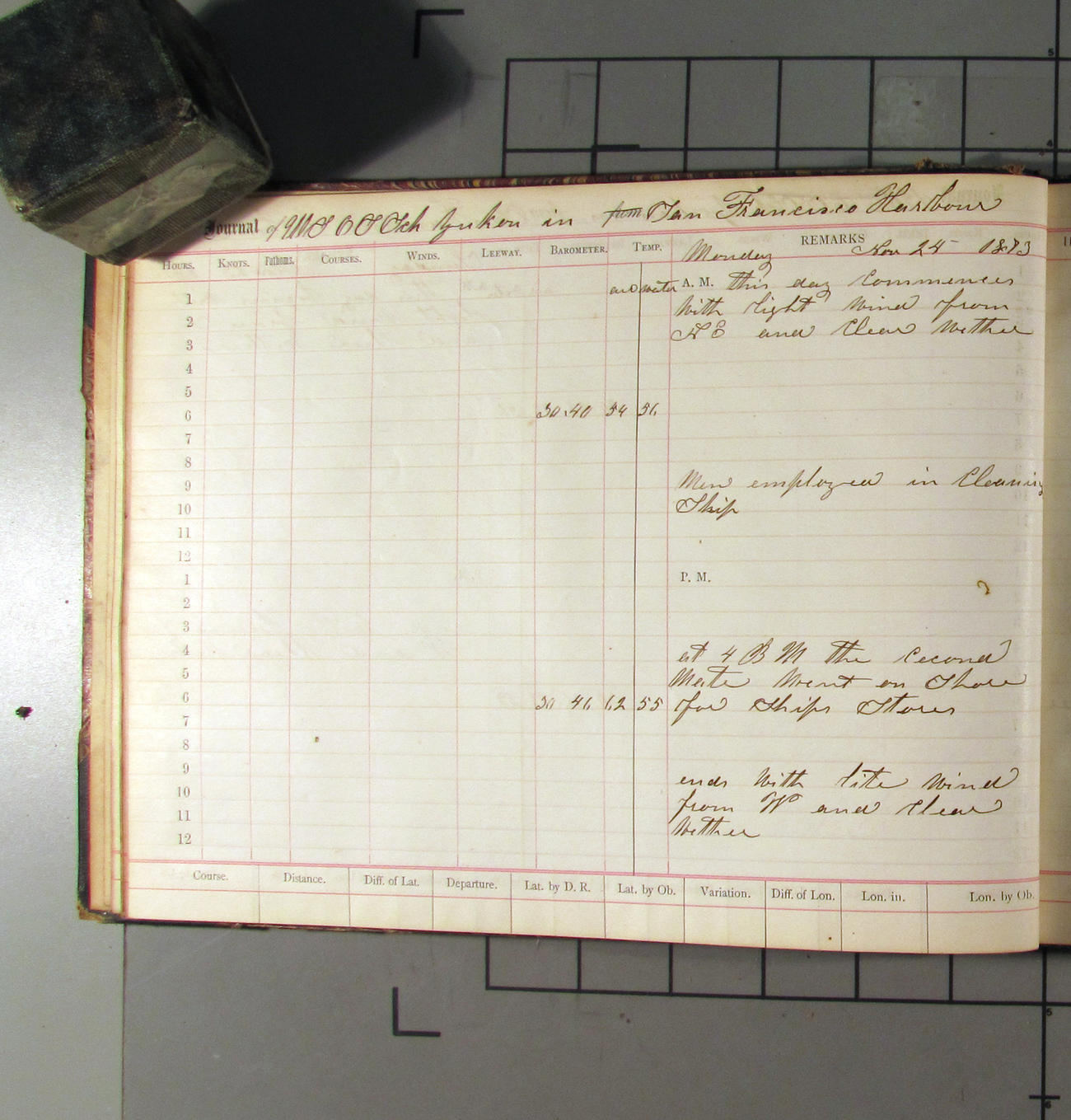 LOG BOOK – APRIL 28th 1873 TO NOVEMBER 9th 1873