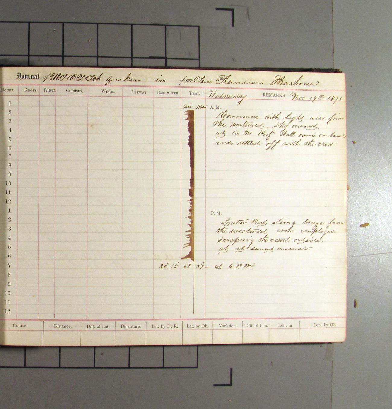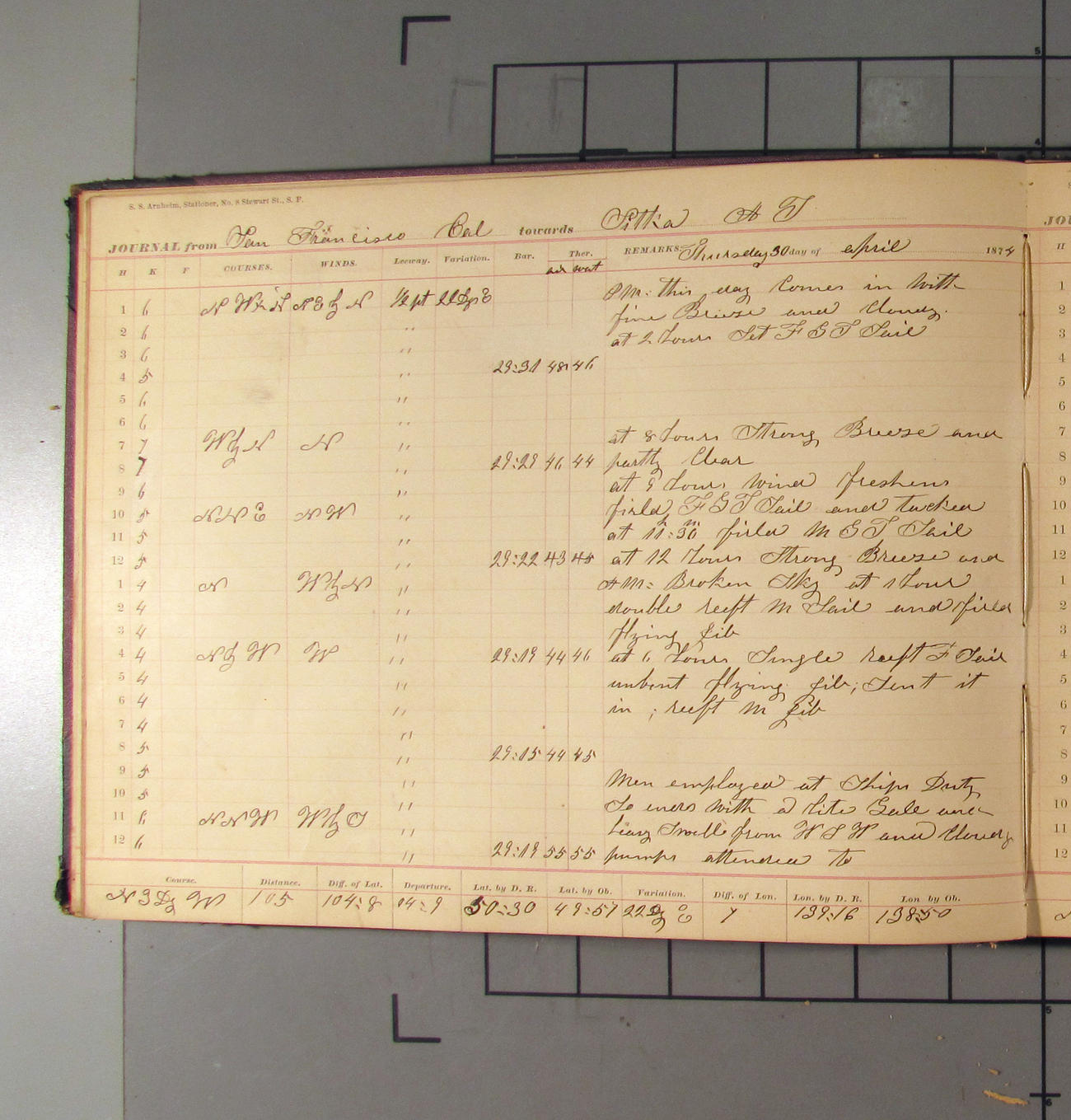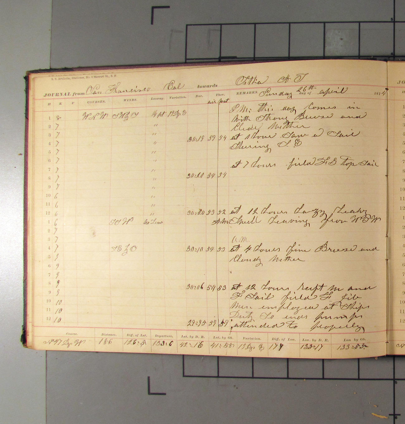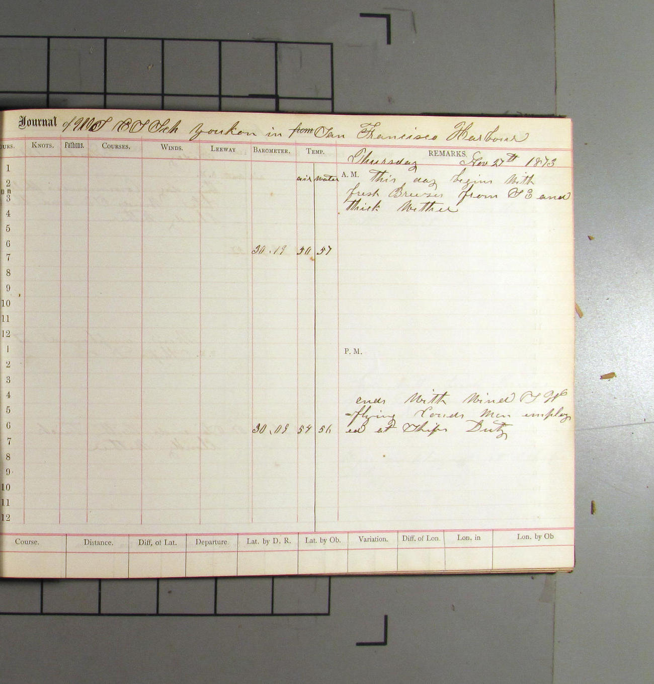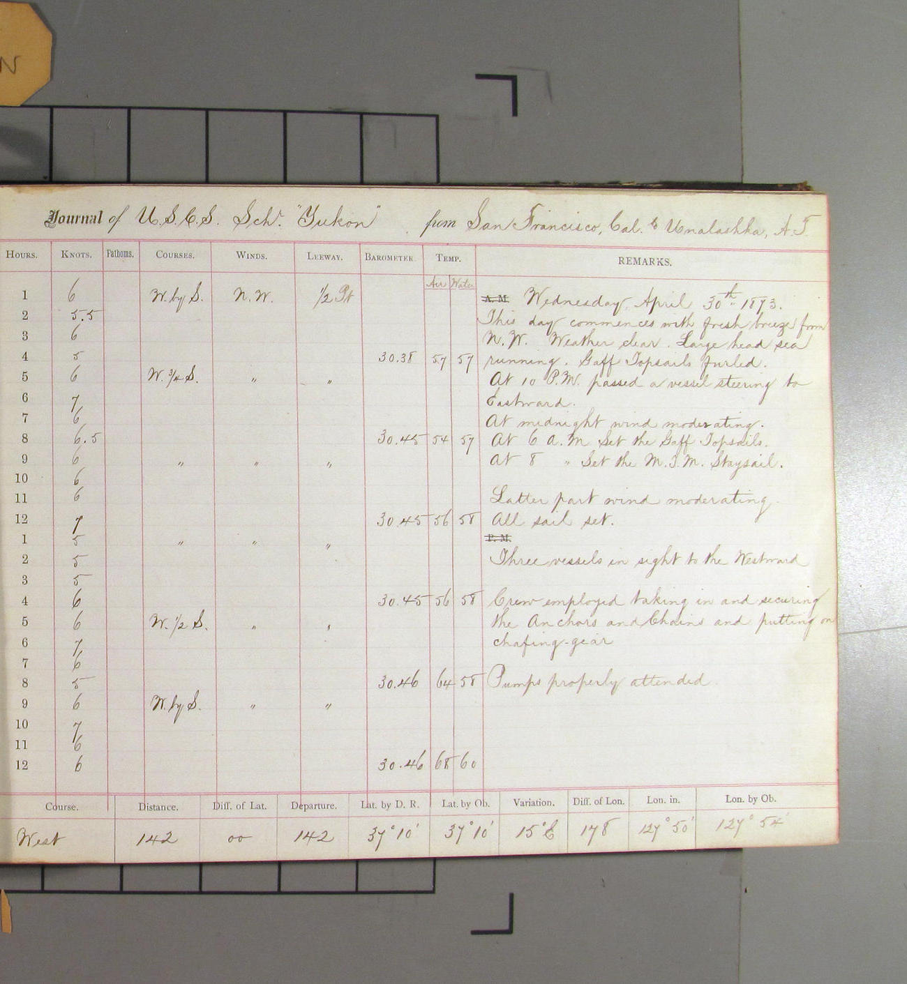 LOG BOOK – APRIL 28th 1873 TO NOVEMBER 9th 1873