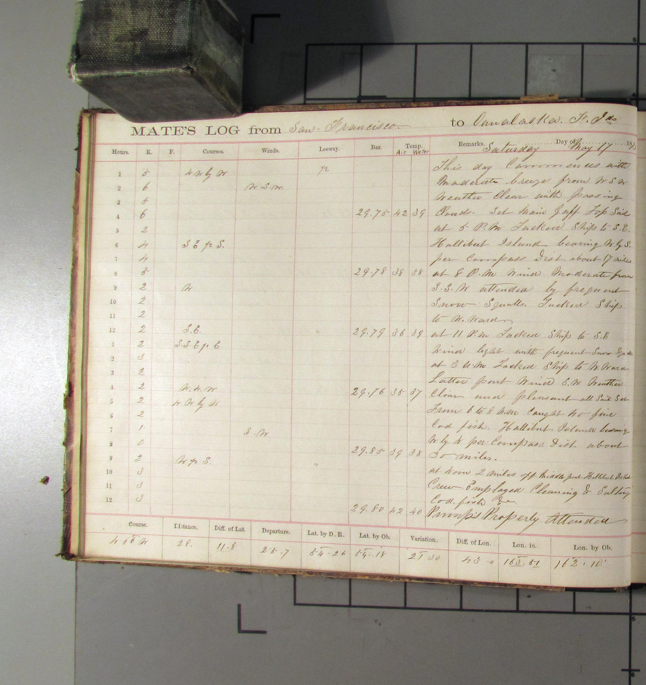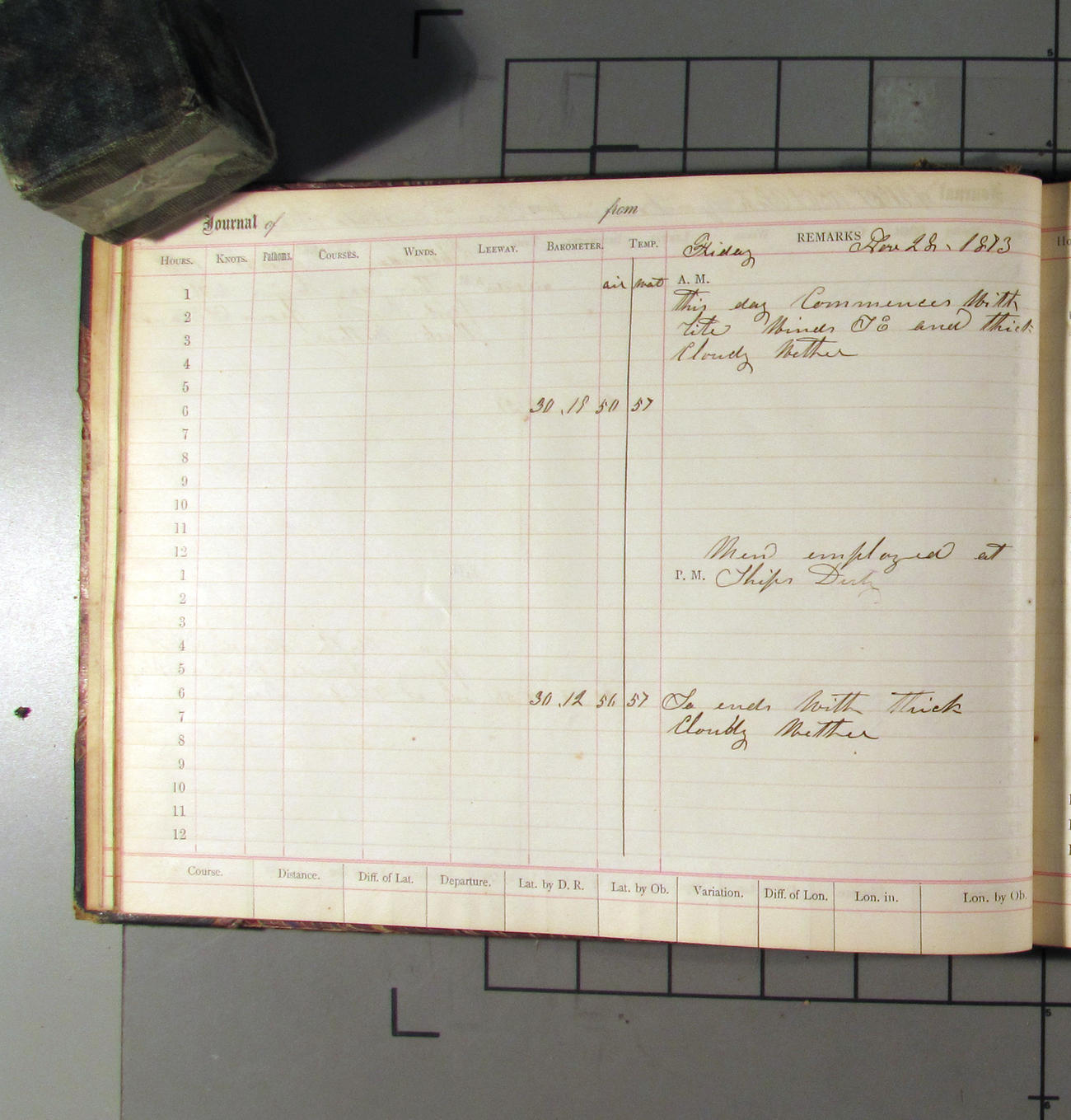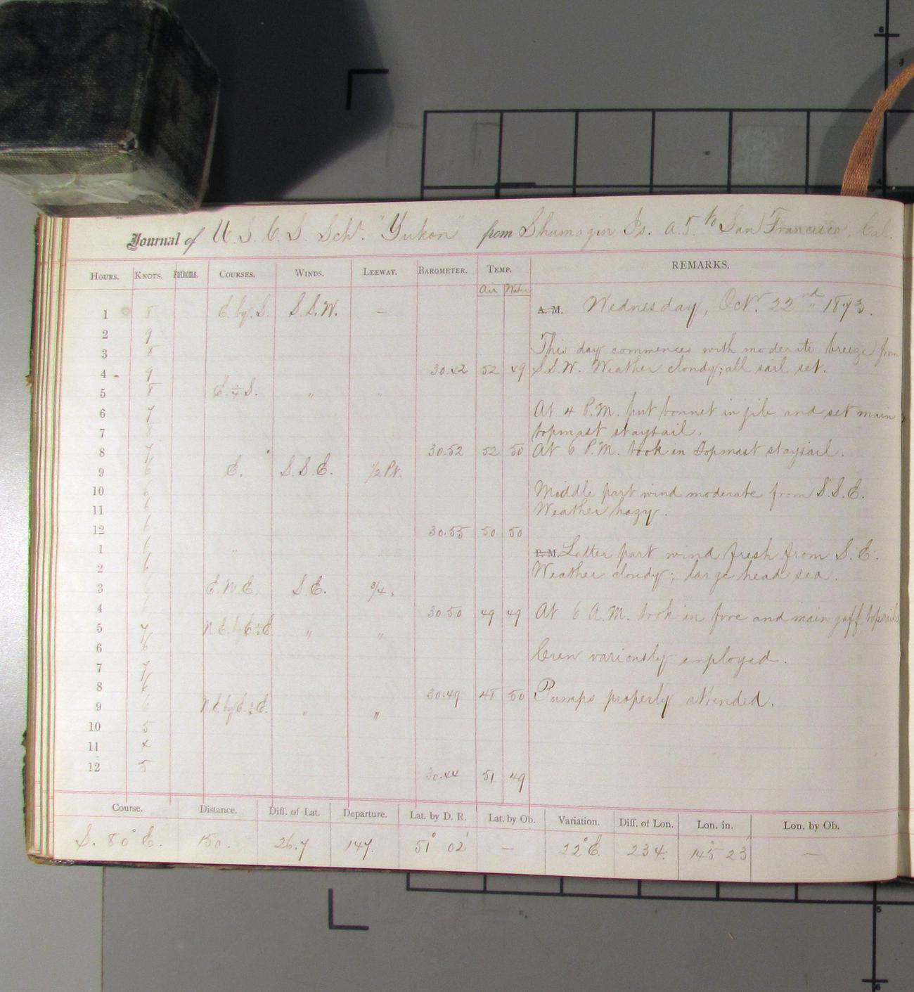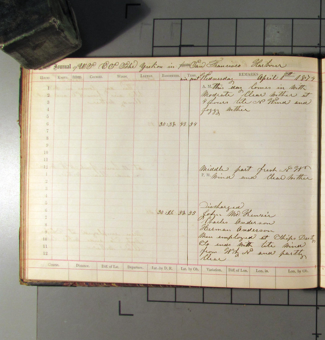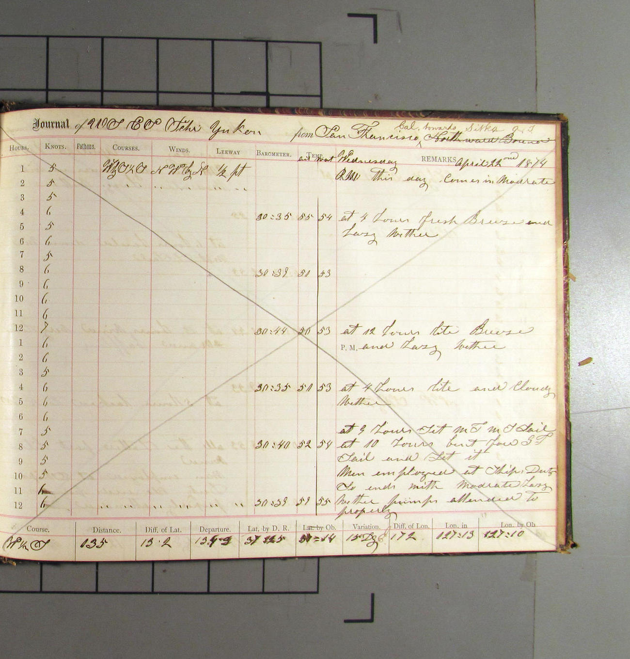 LOG BOOK – APRIL 28th 1873 TO NOVEMBER 9th 1873
