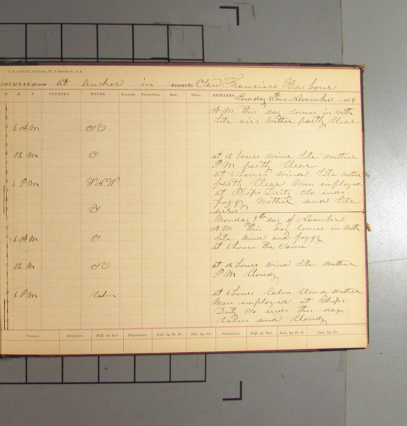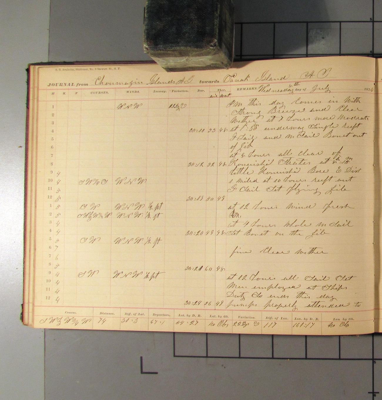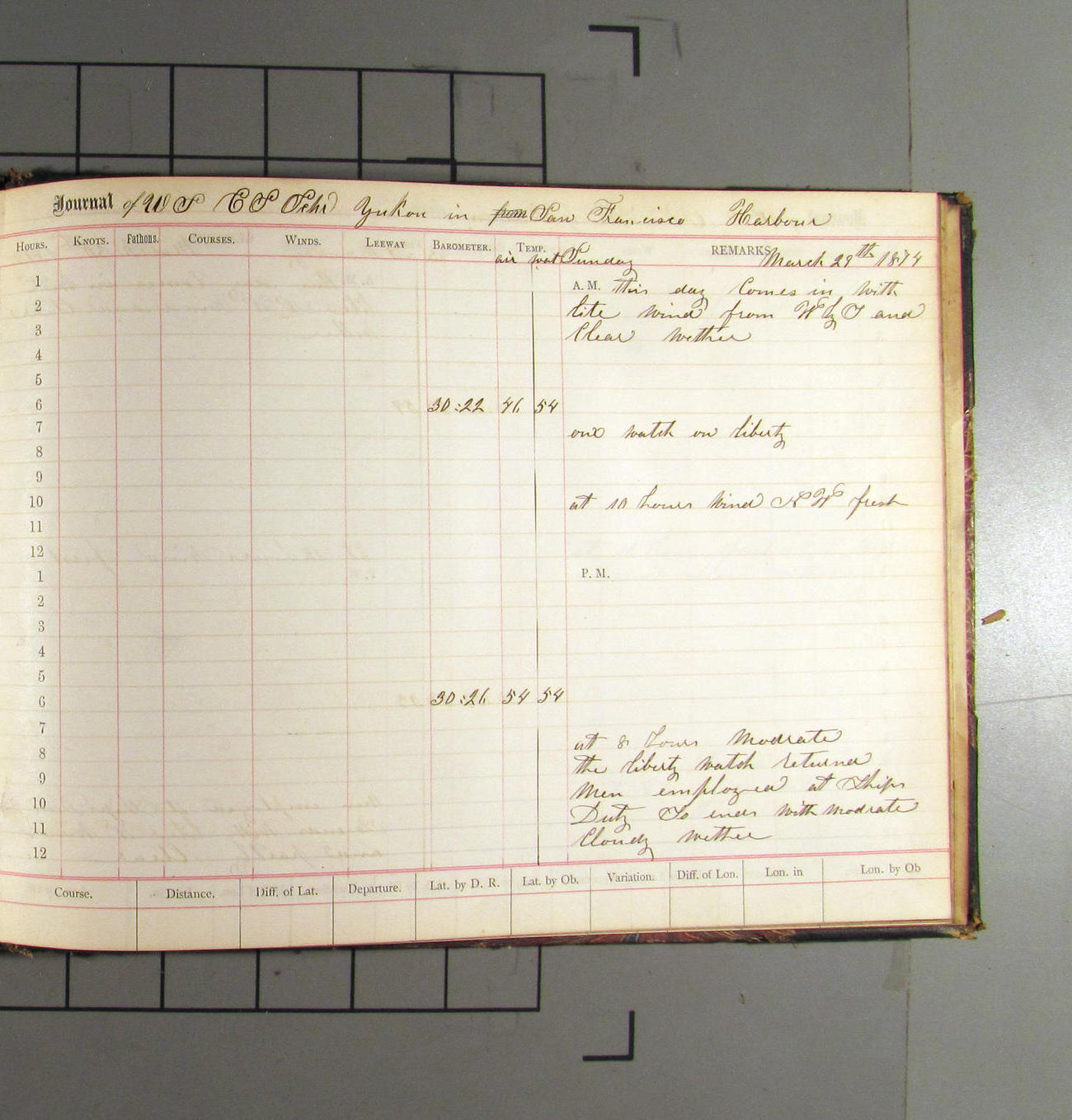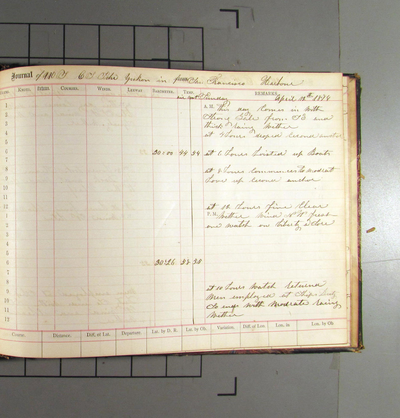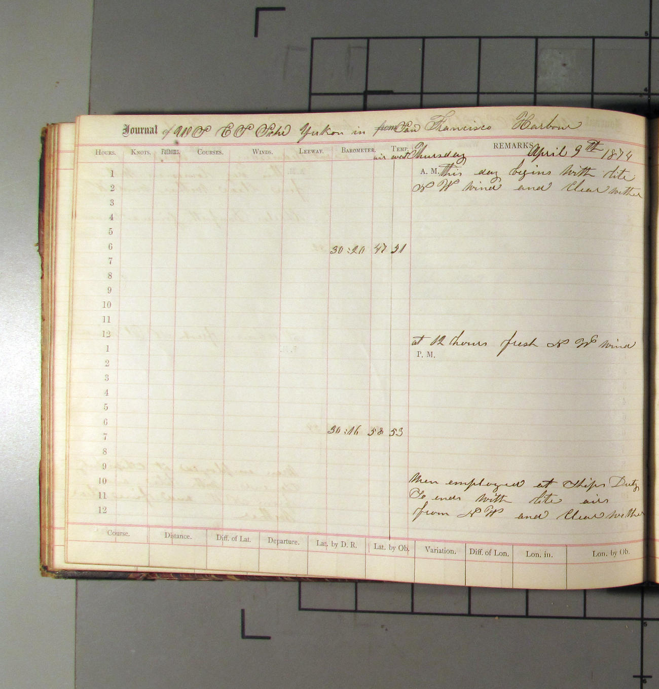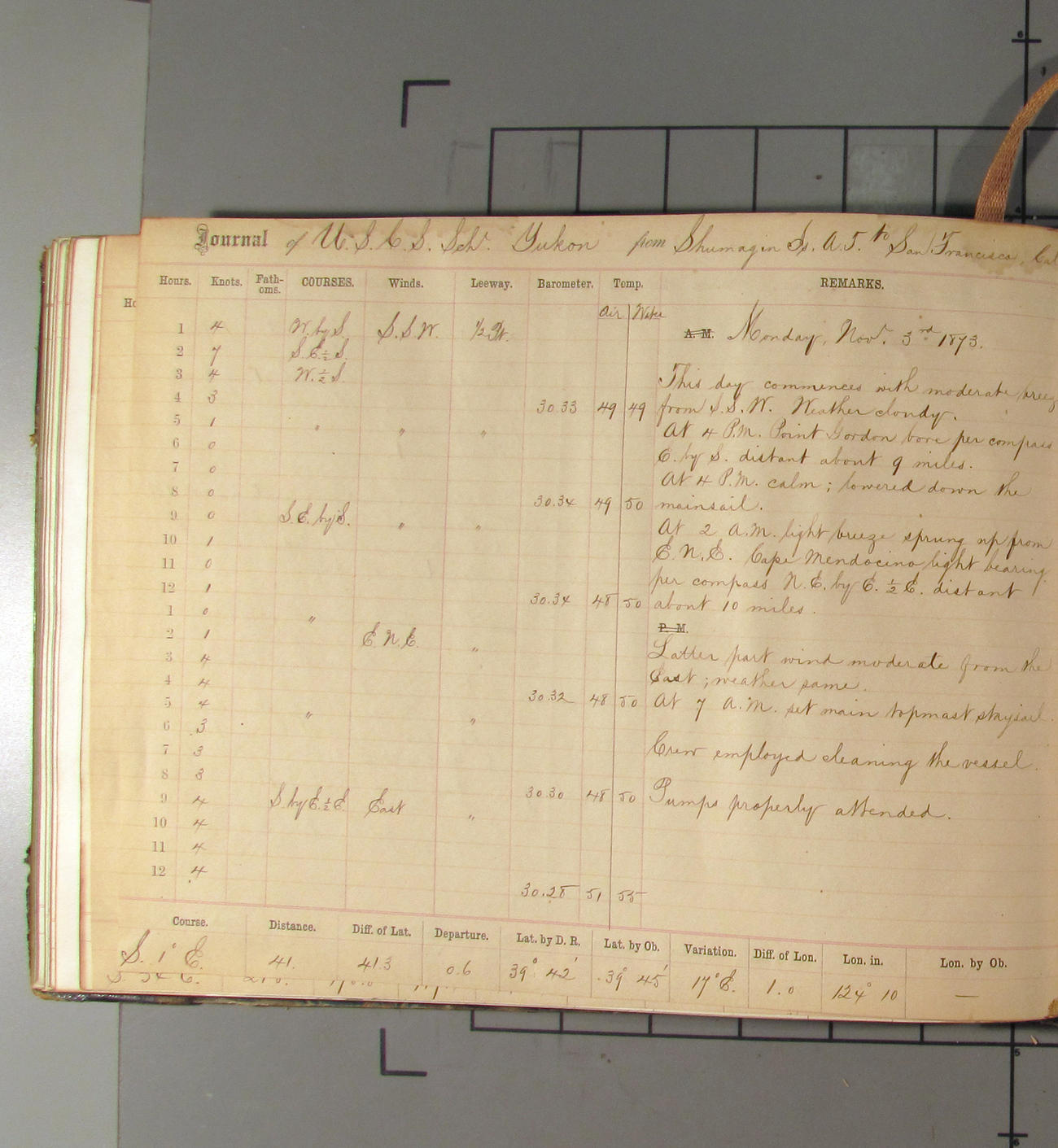 LOG BOOK – APRIL 28th 1873 TO NOVEMBER 9th 1873