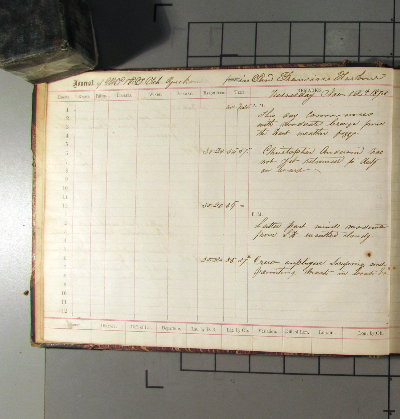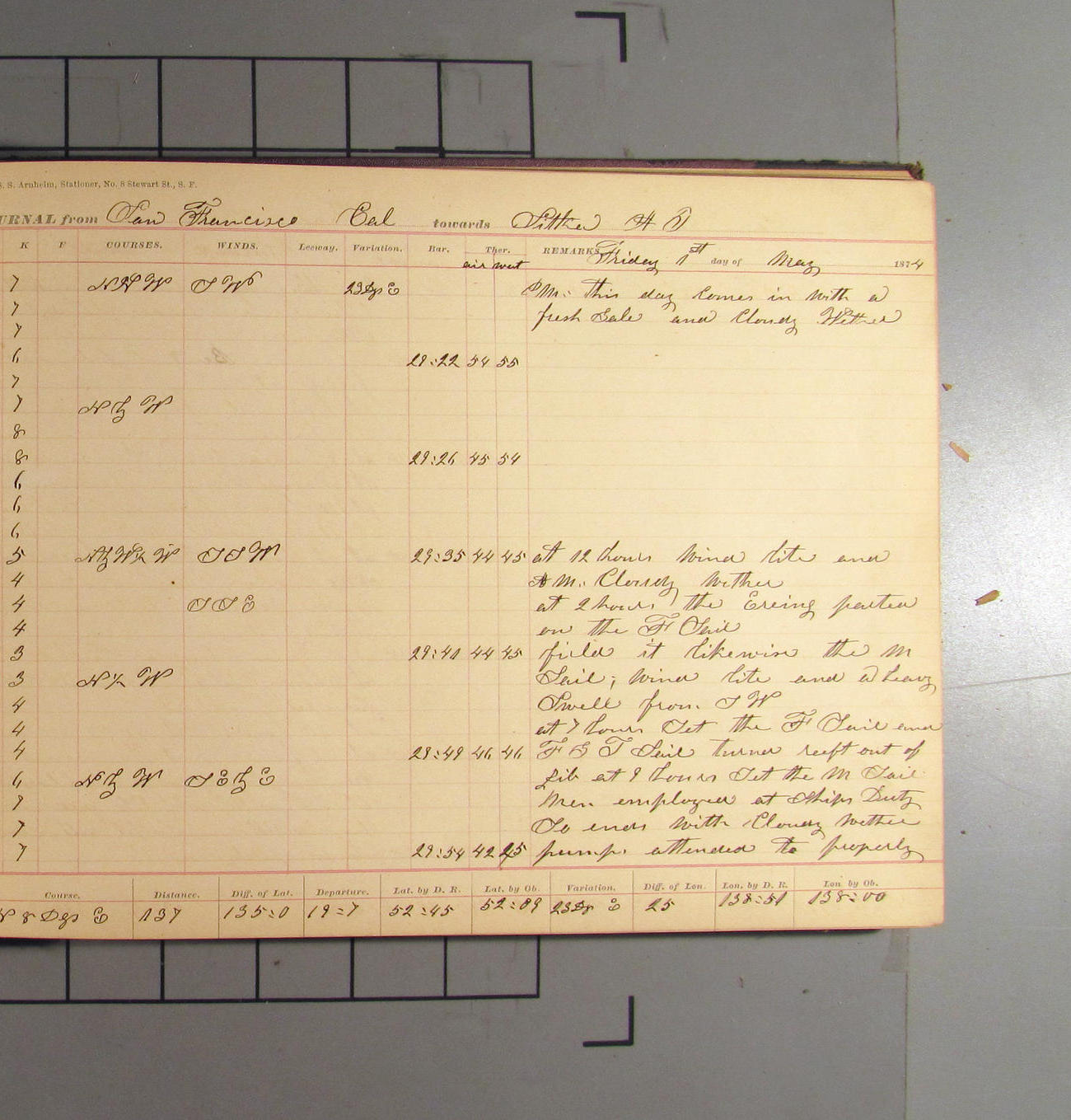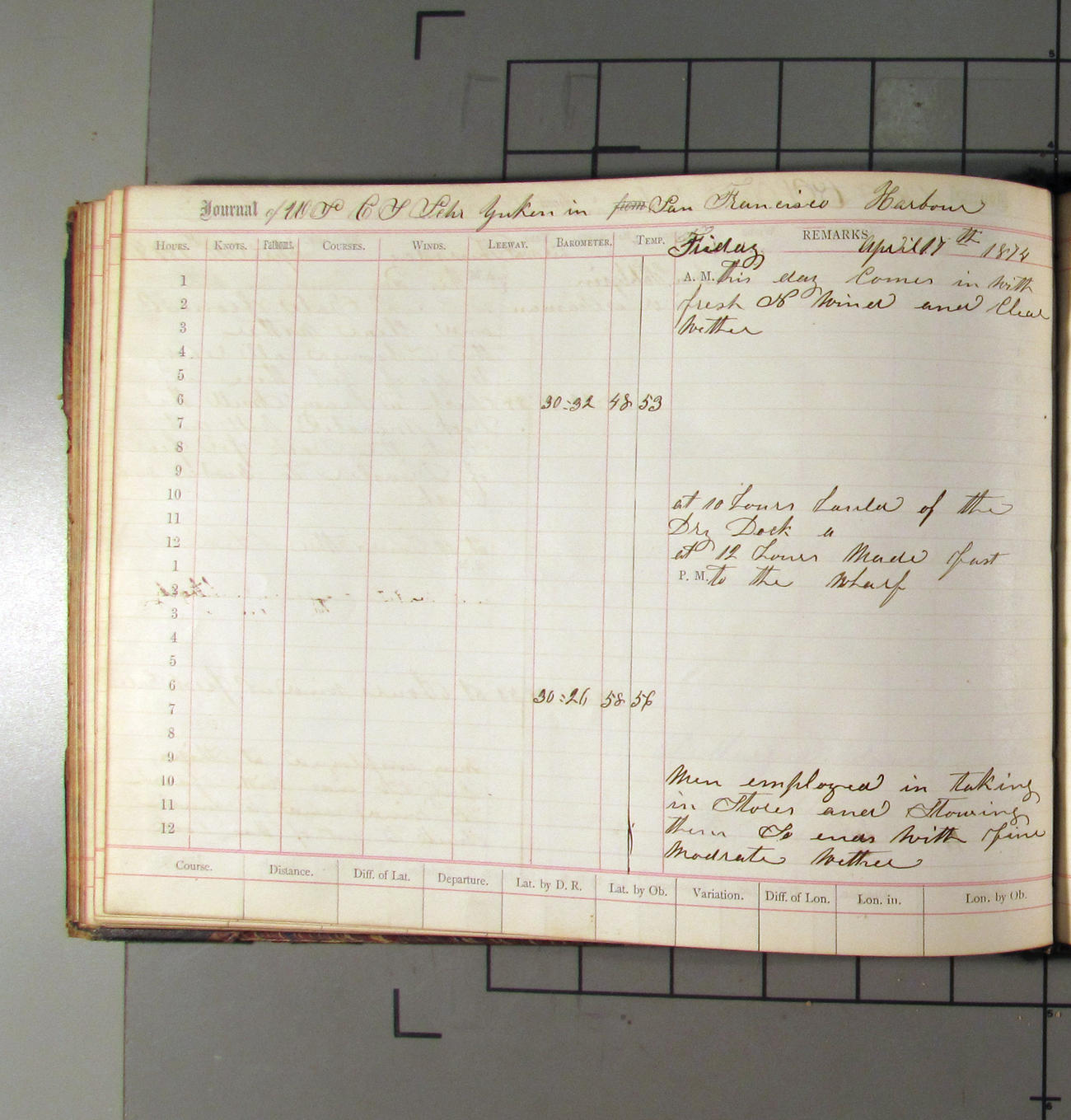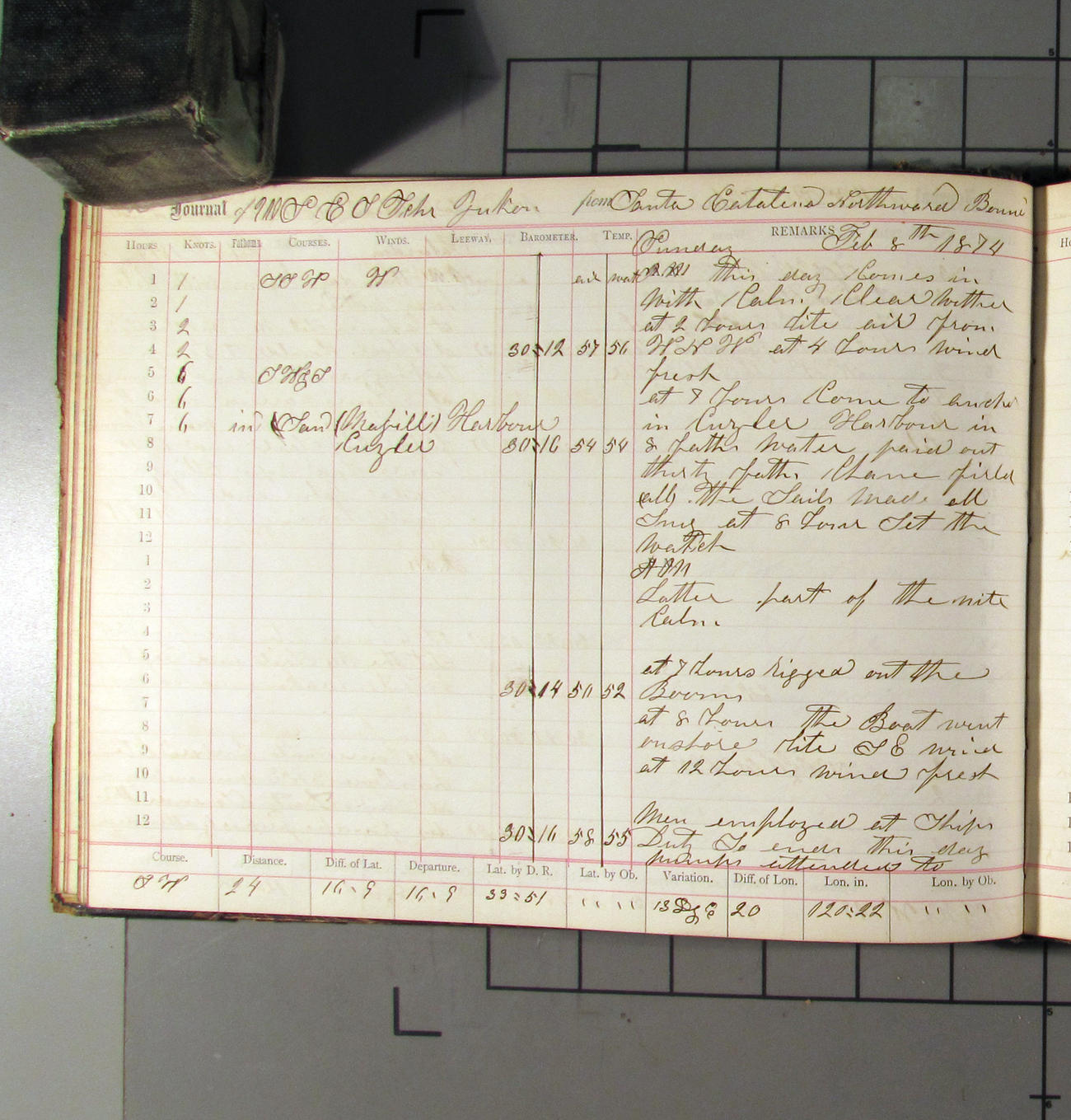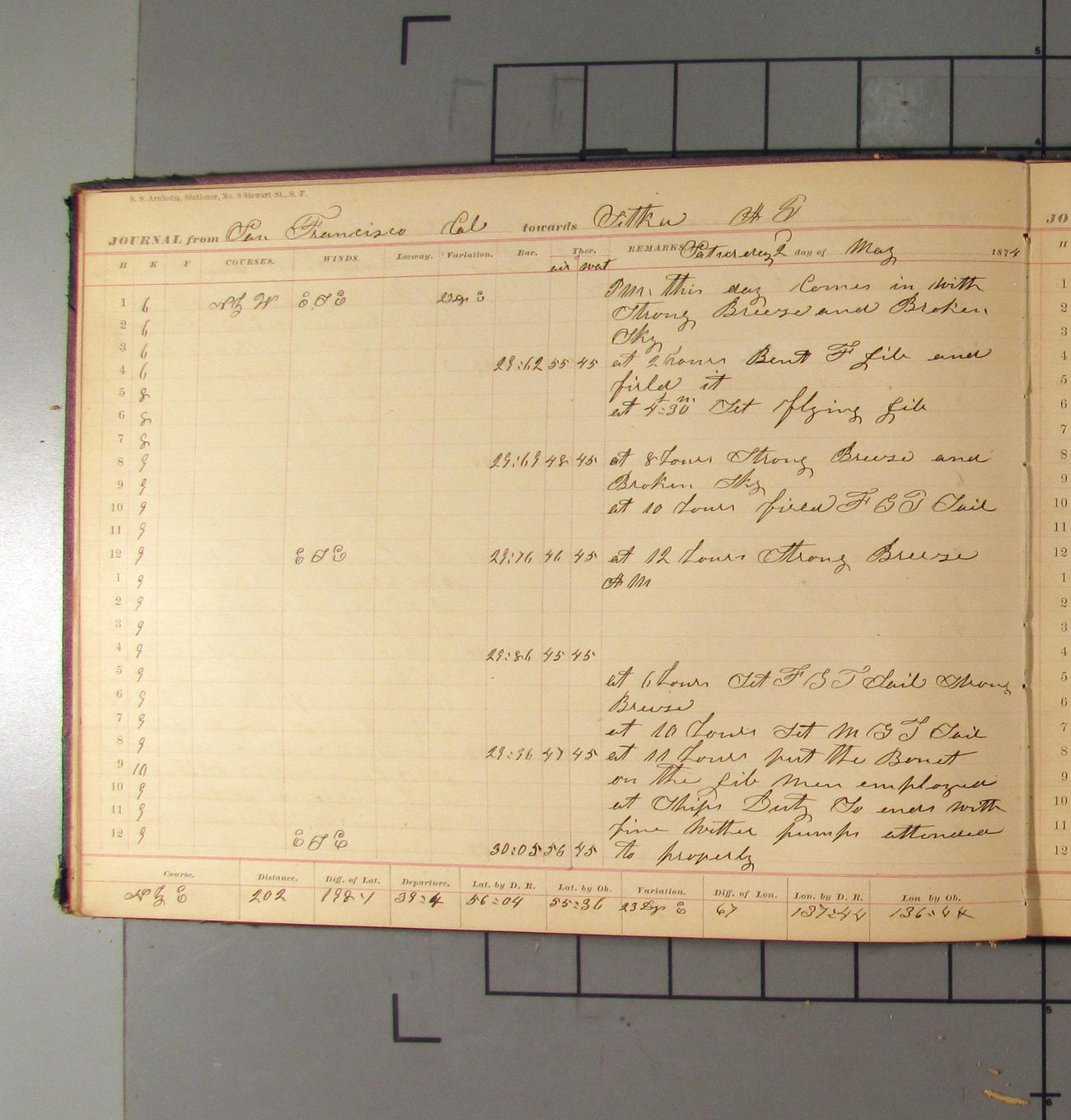 LOG BOOK – APRIL 28th 1873 TO NOVEMBER 9th 1873