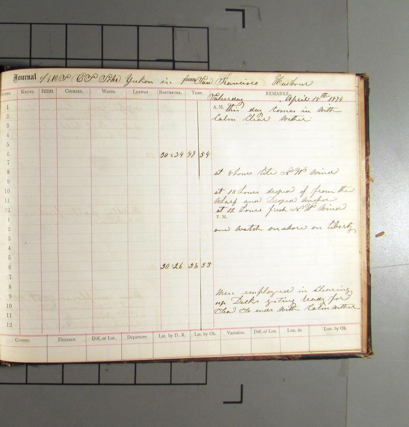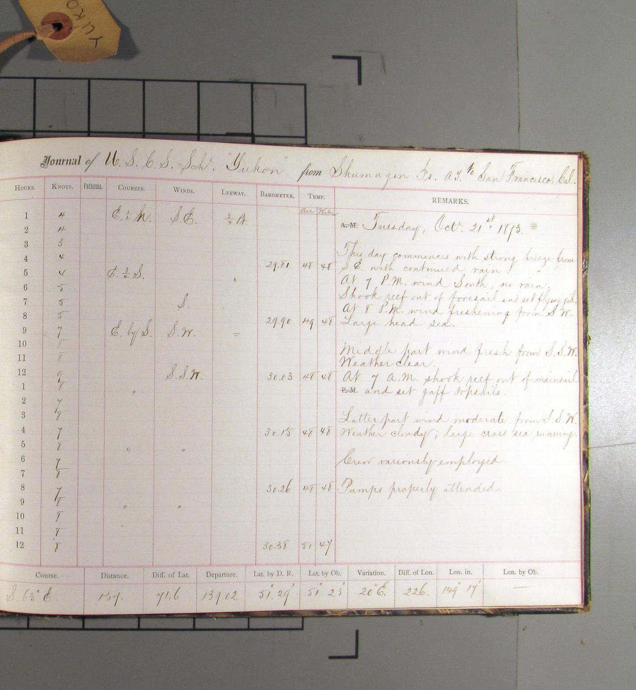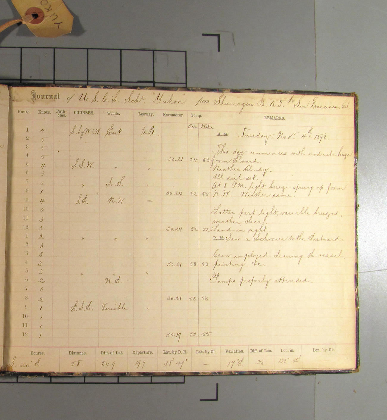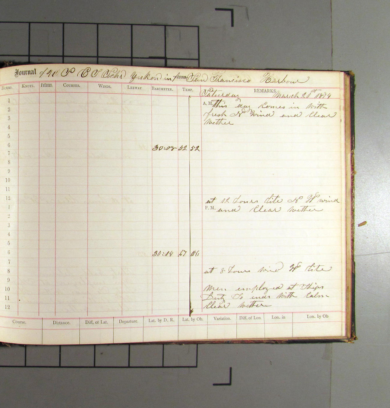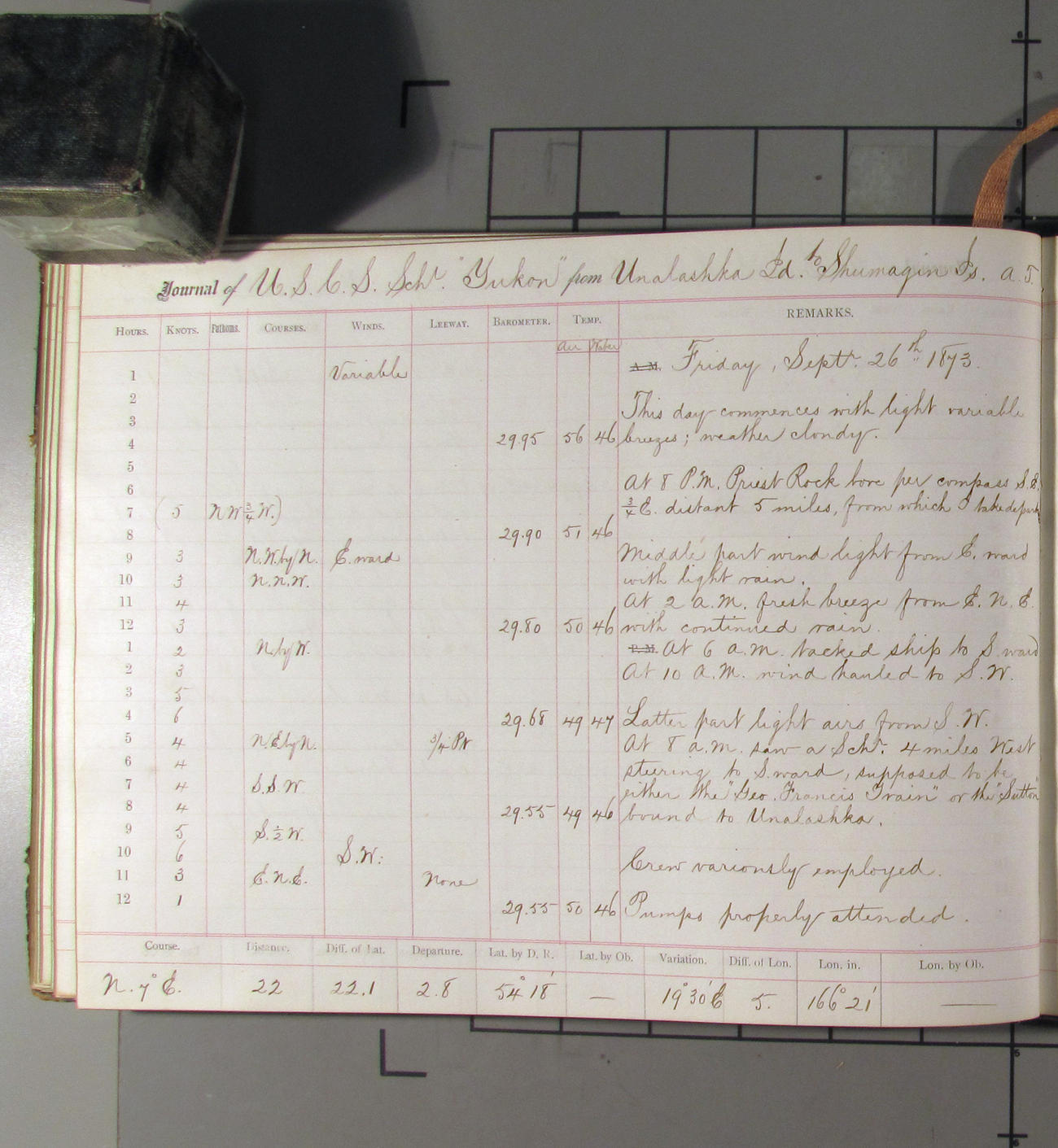 LOG BOOK – APRIL 28th 1873 TO NOVEMBER 9th 1873