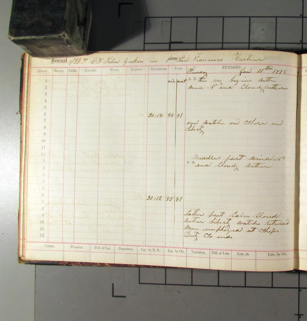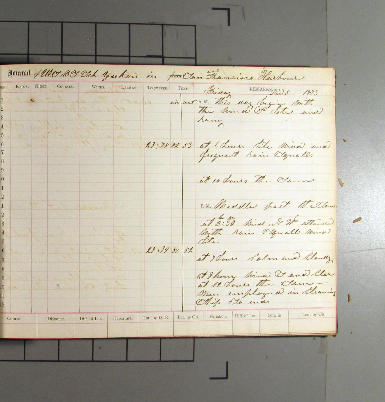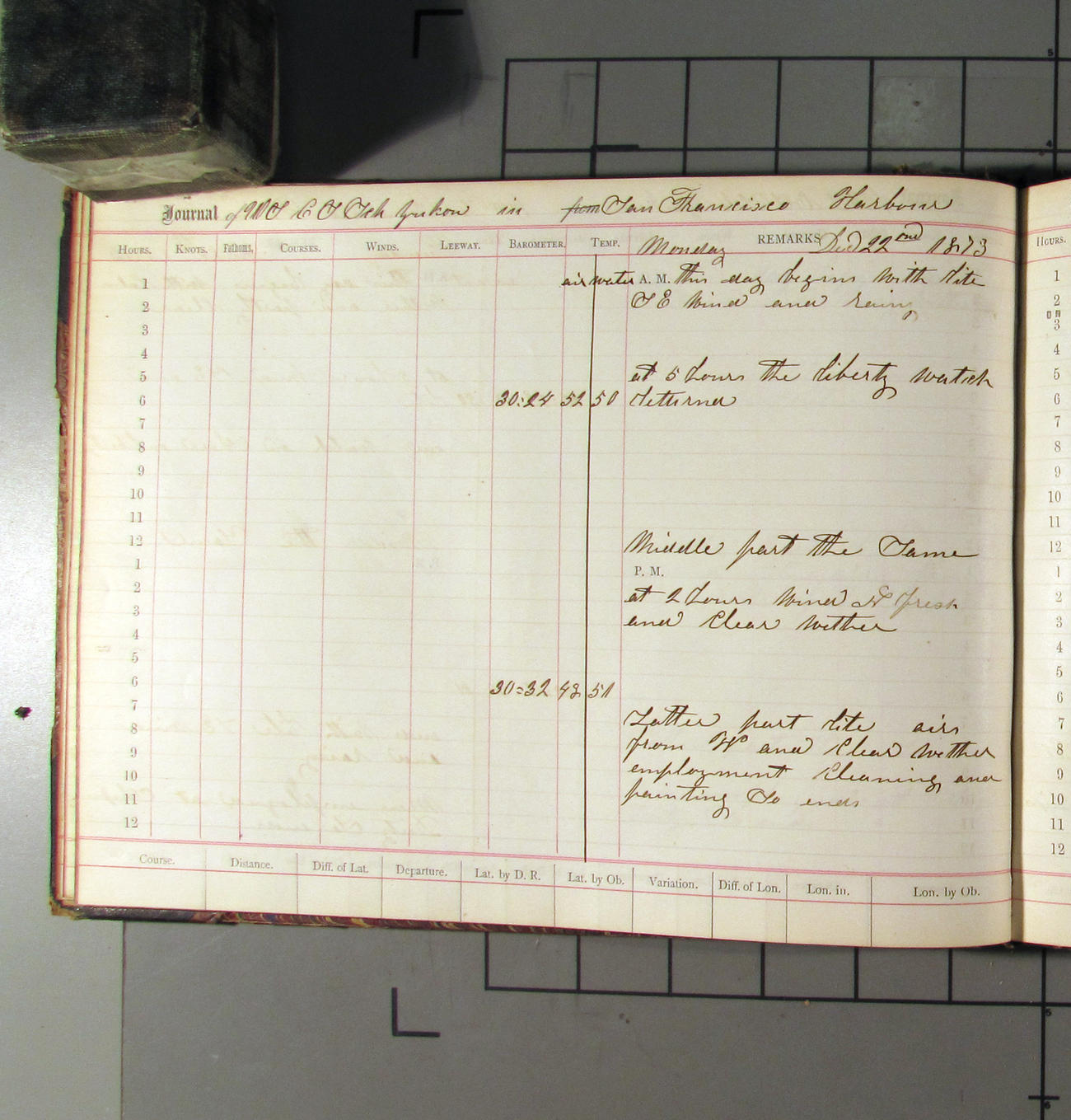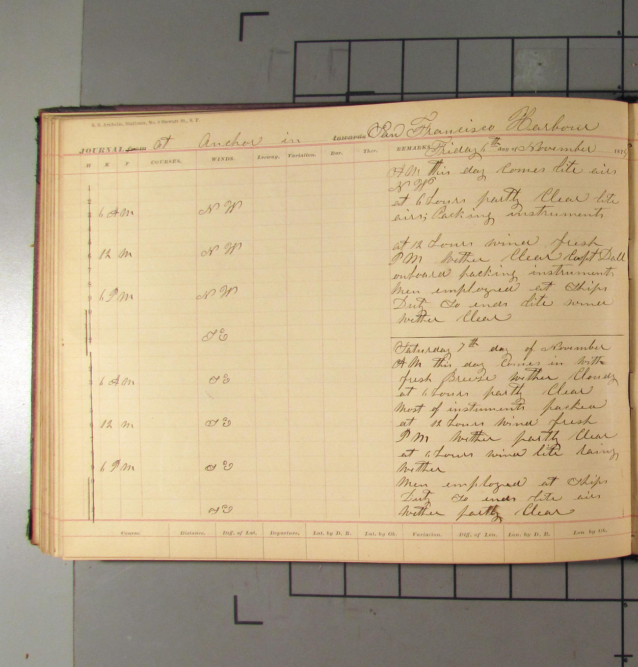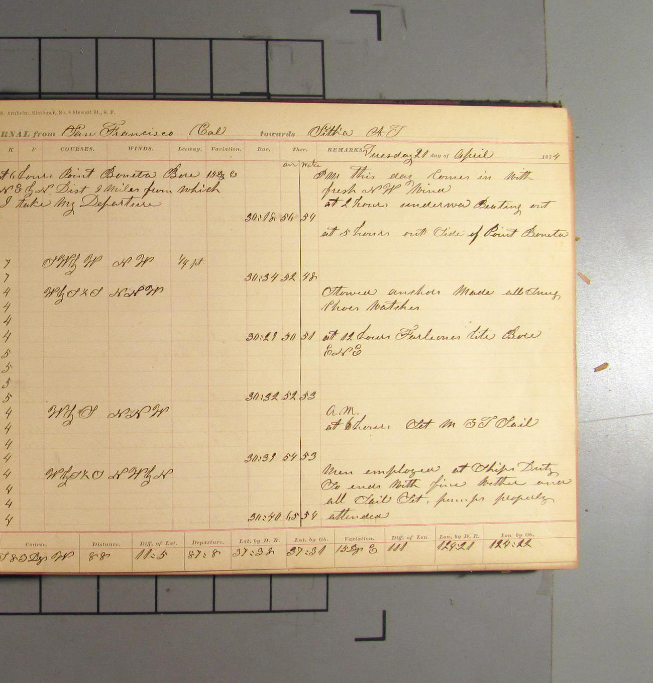 LOG BOOK – APRIL 28th 1873 TO NOVEMBER 9th 1873