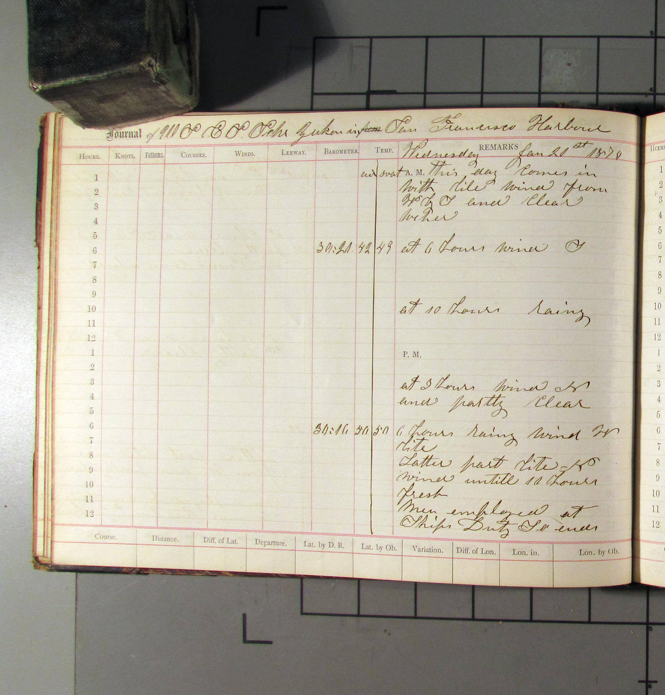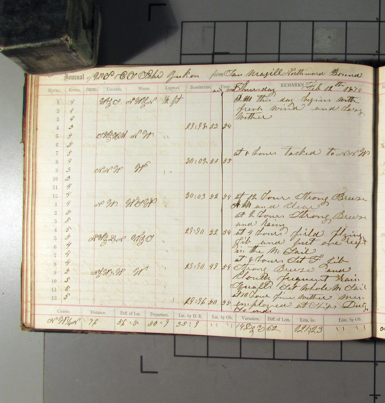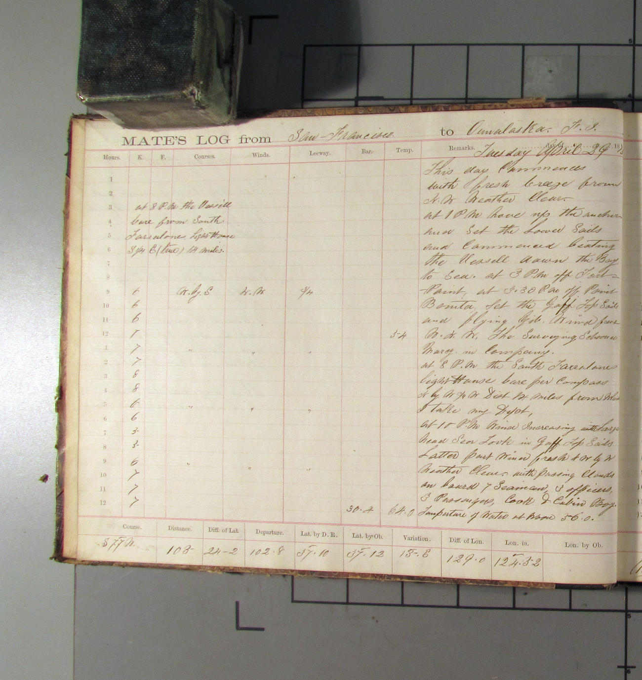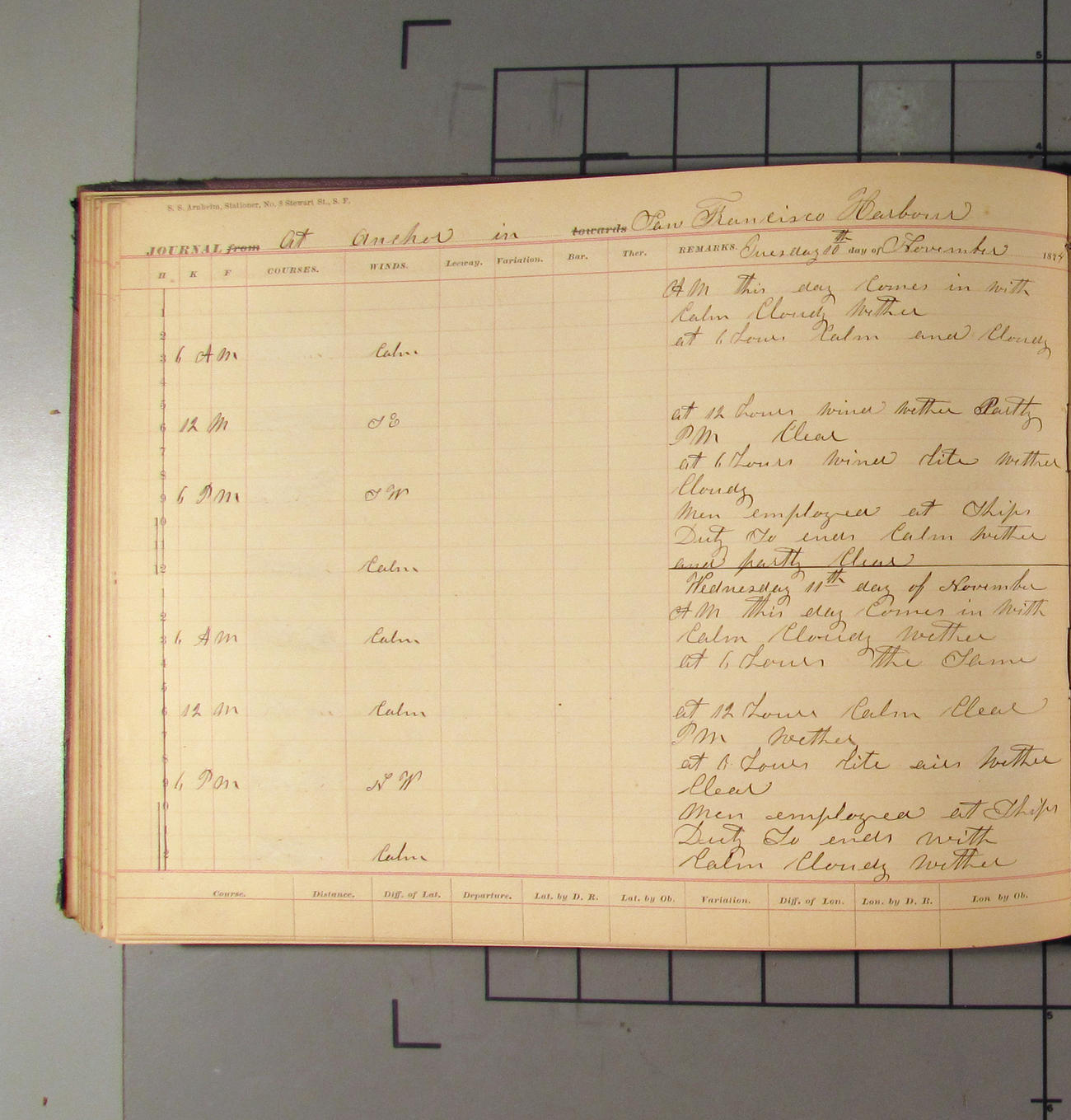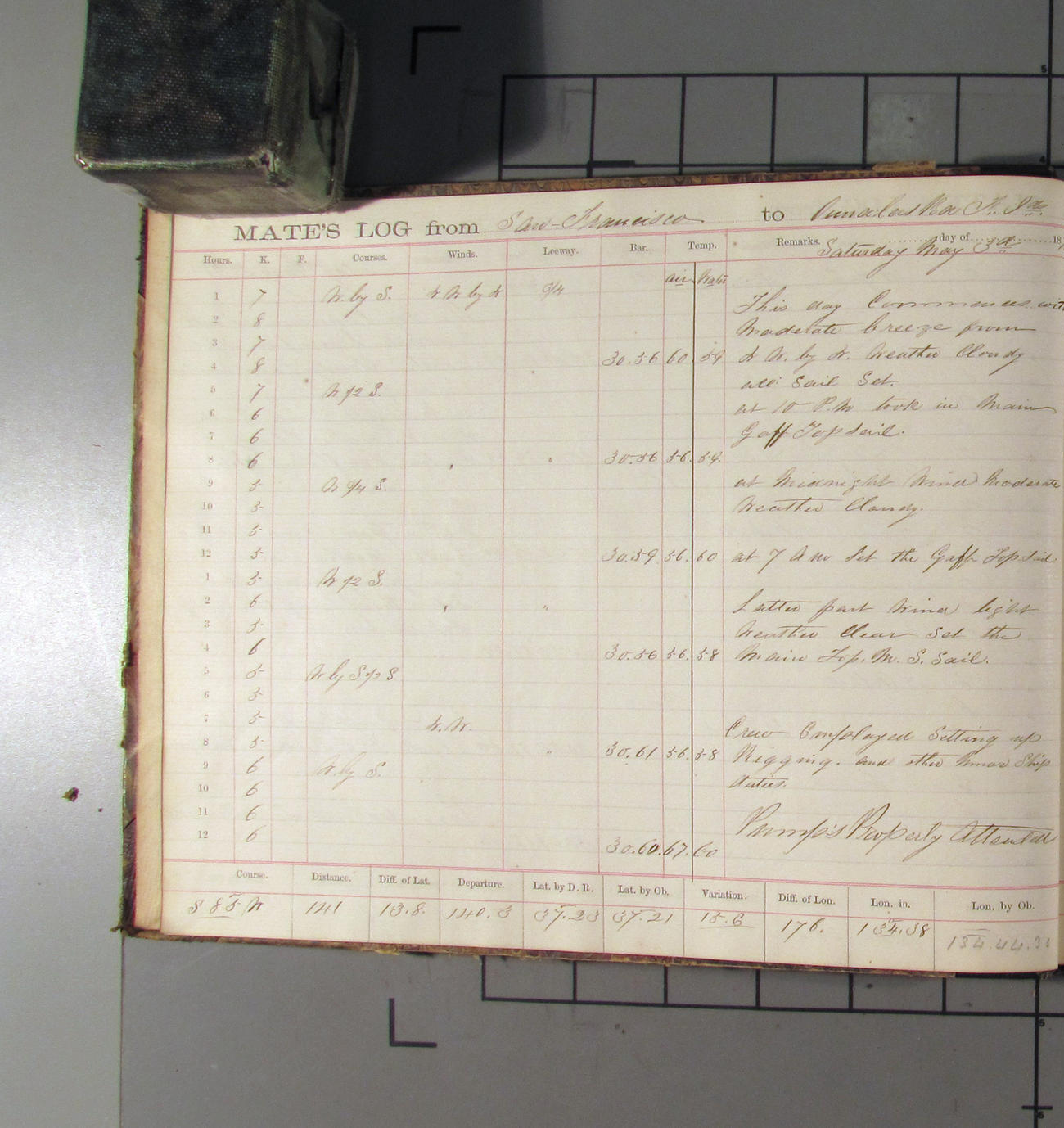 LOG BOOK – APRIL 28th 1873 TO NOVEMBER 9th 1873
