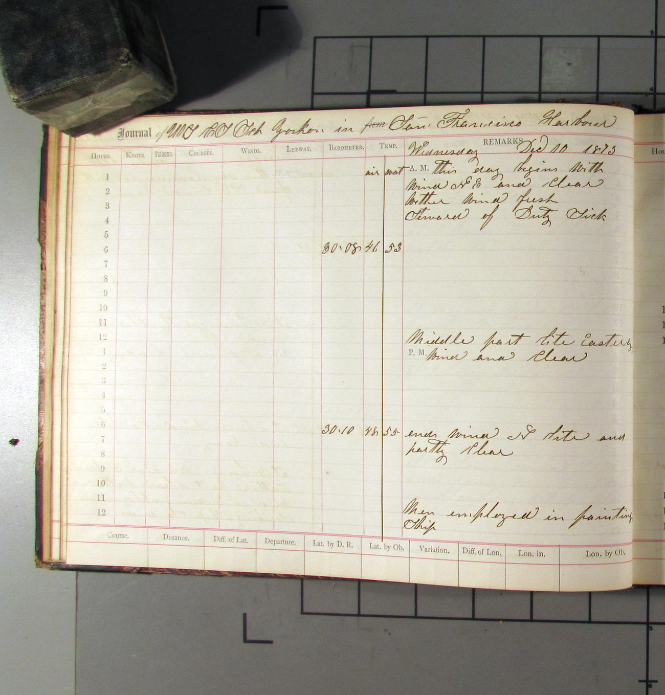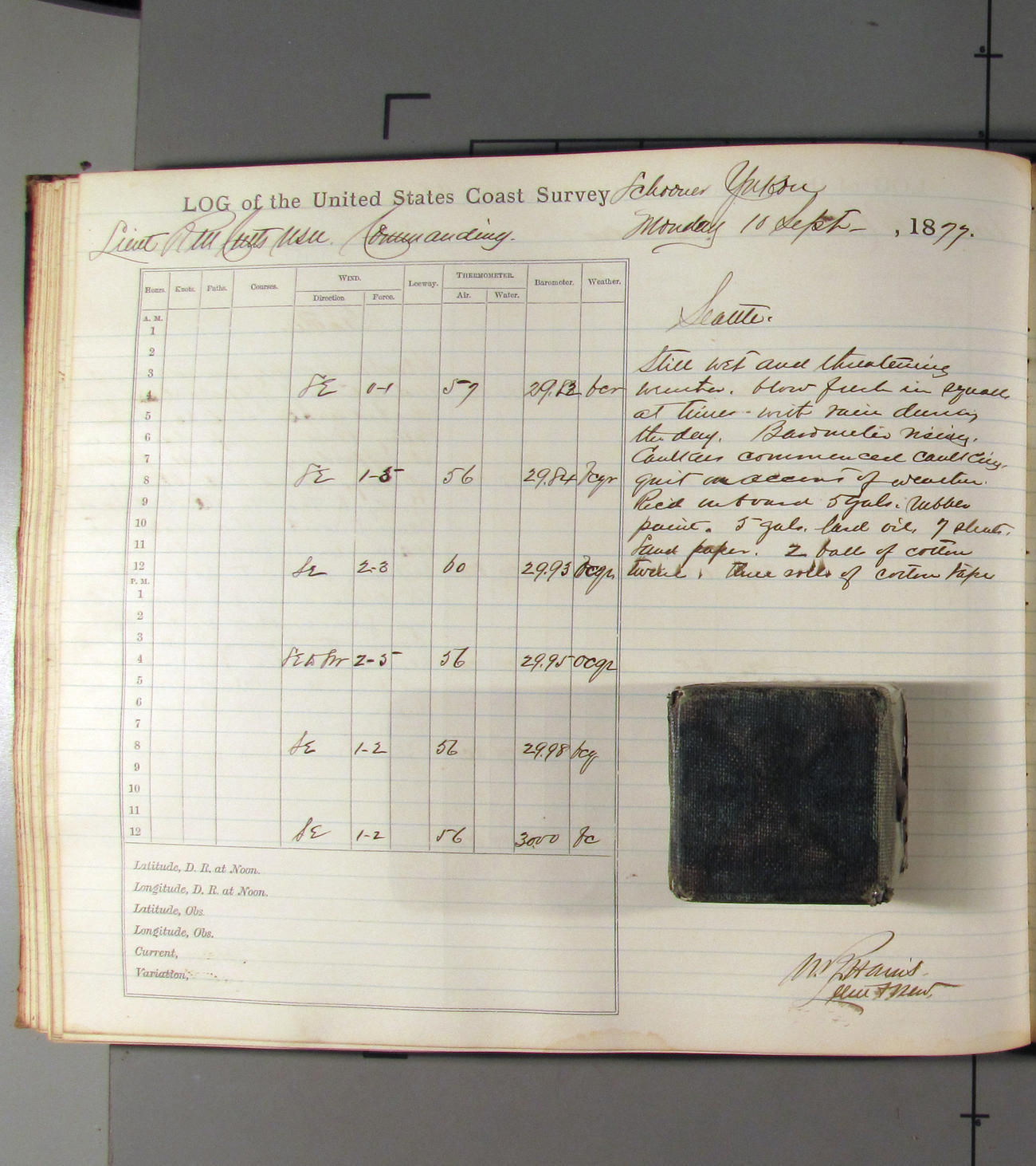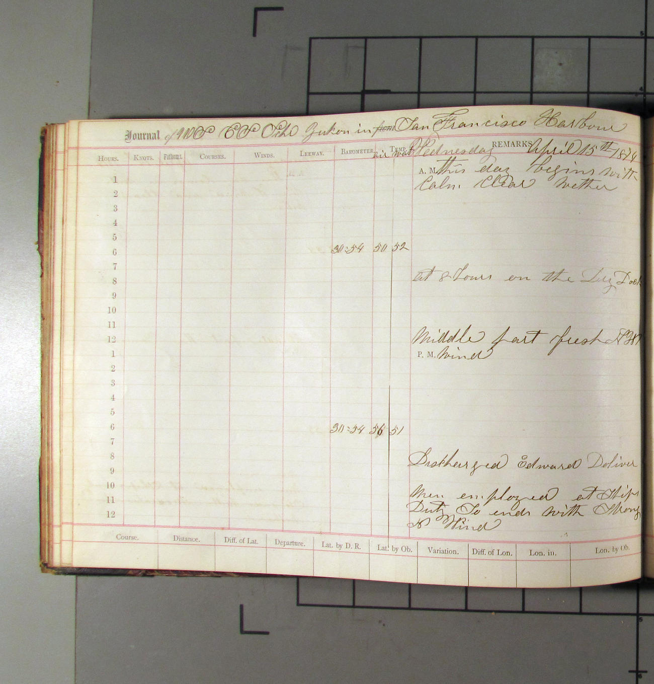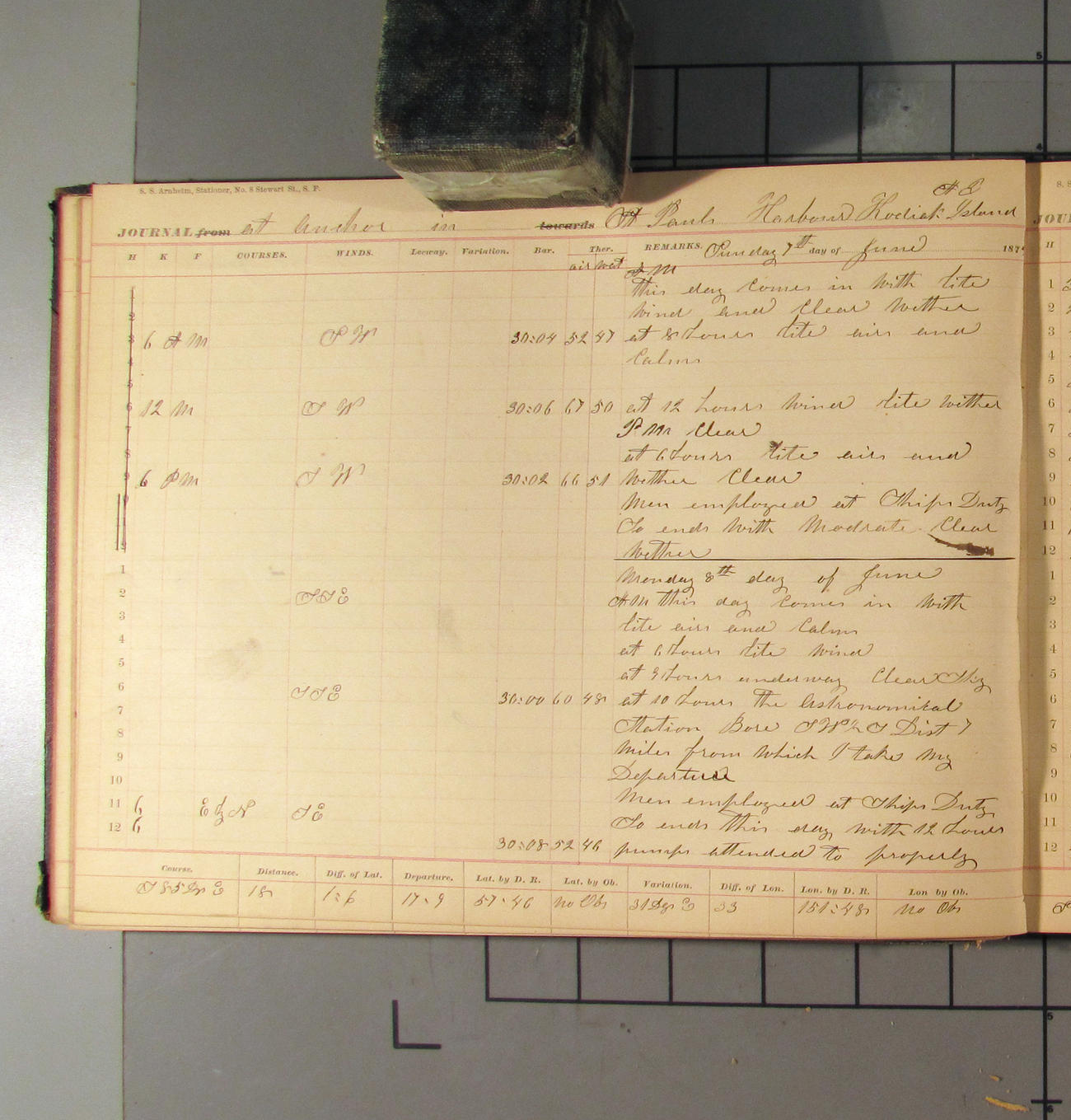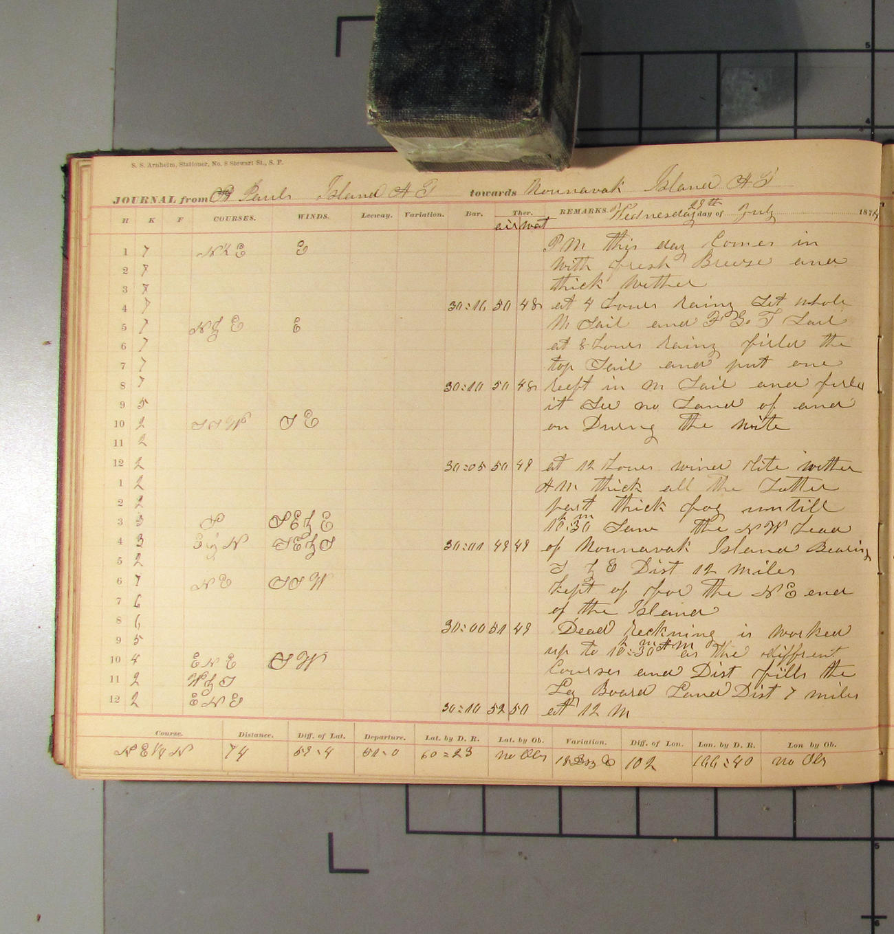 LOG BOOK – APRIL 28th 1873 TO NOVEMBER 9th 1873