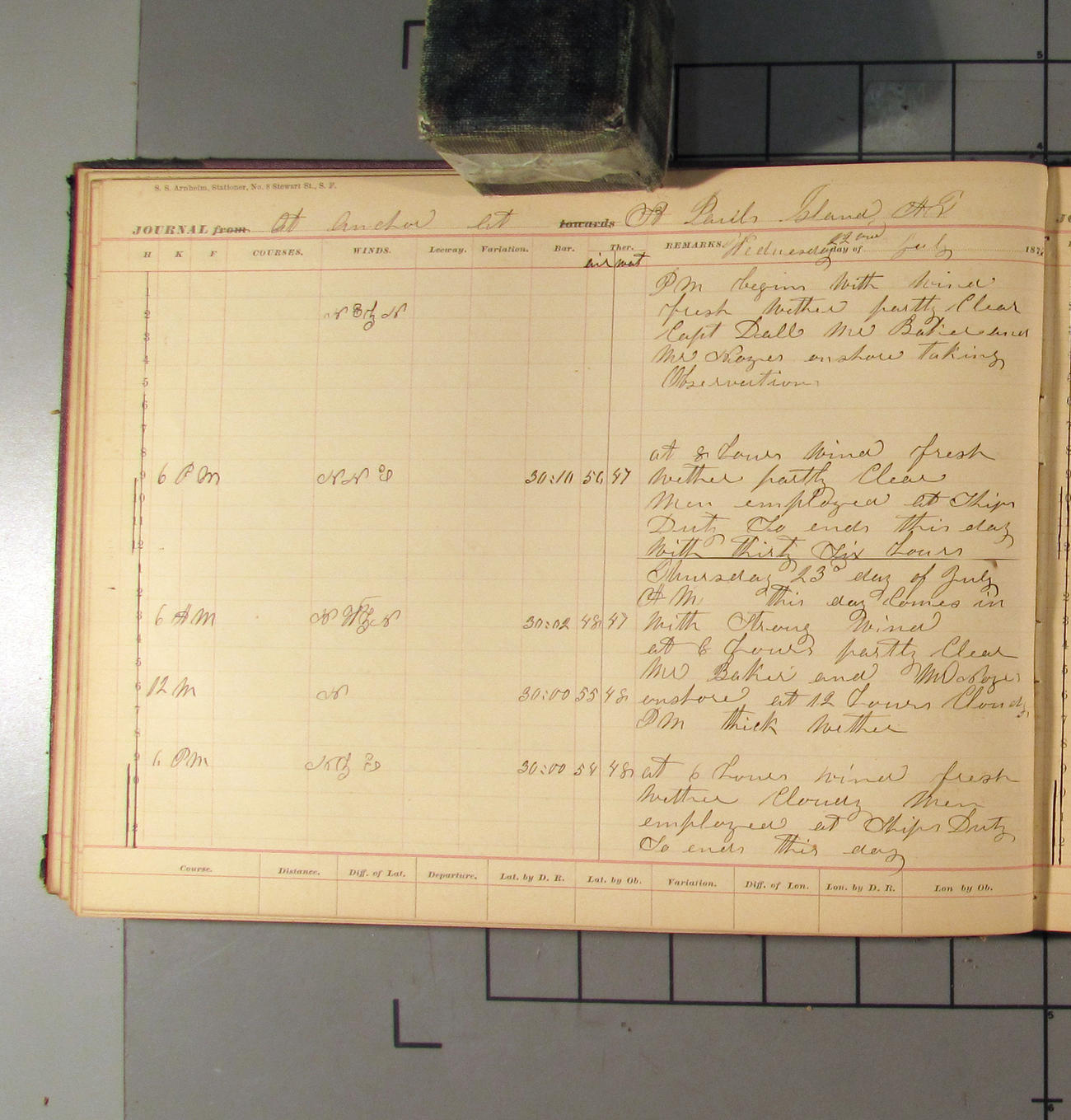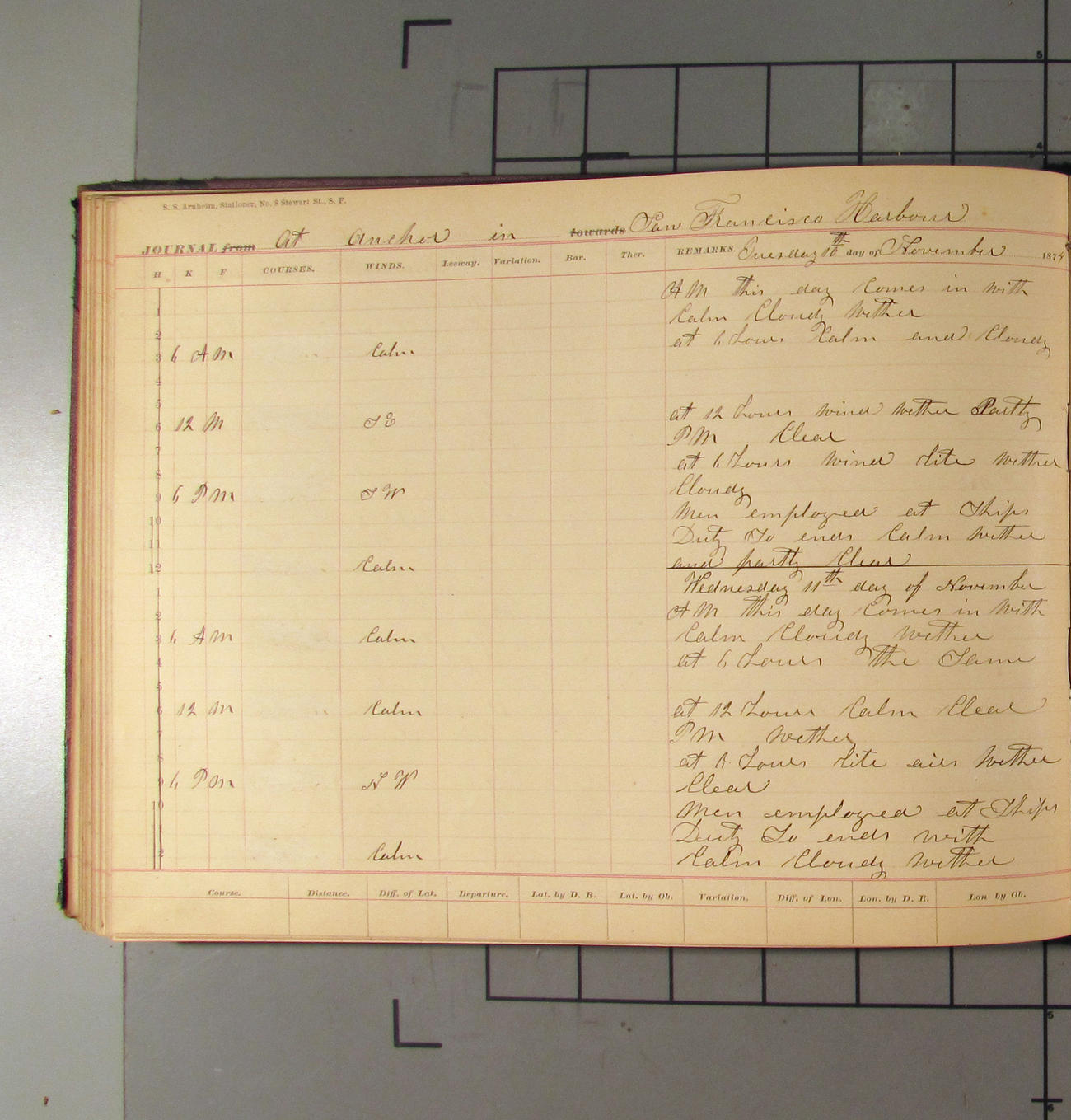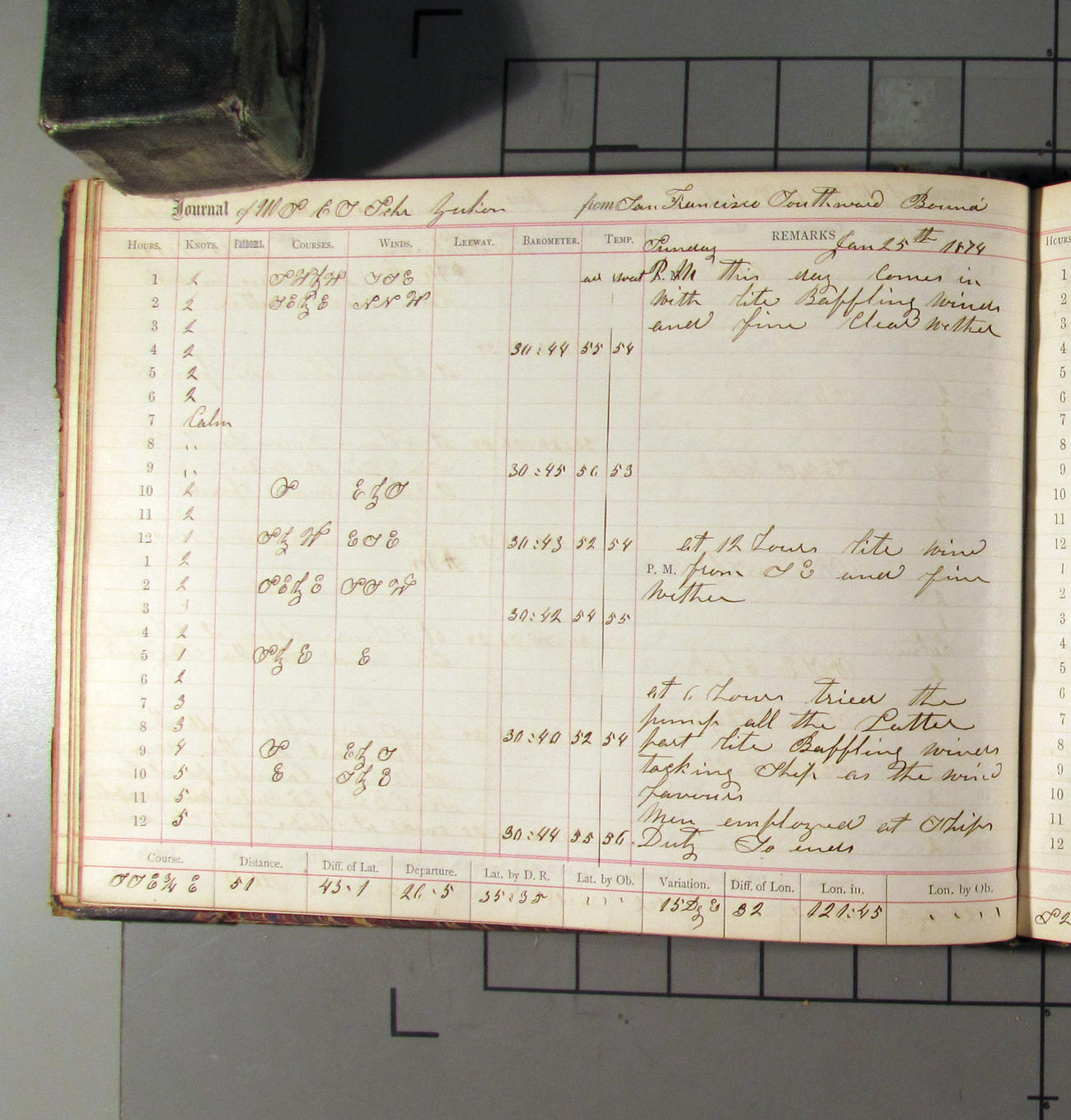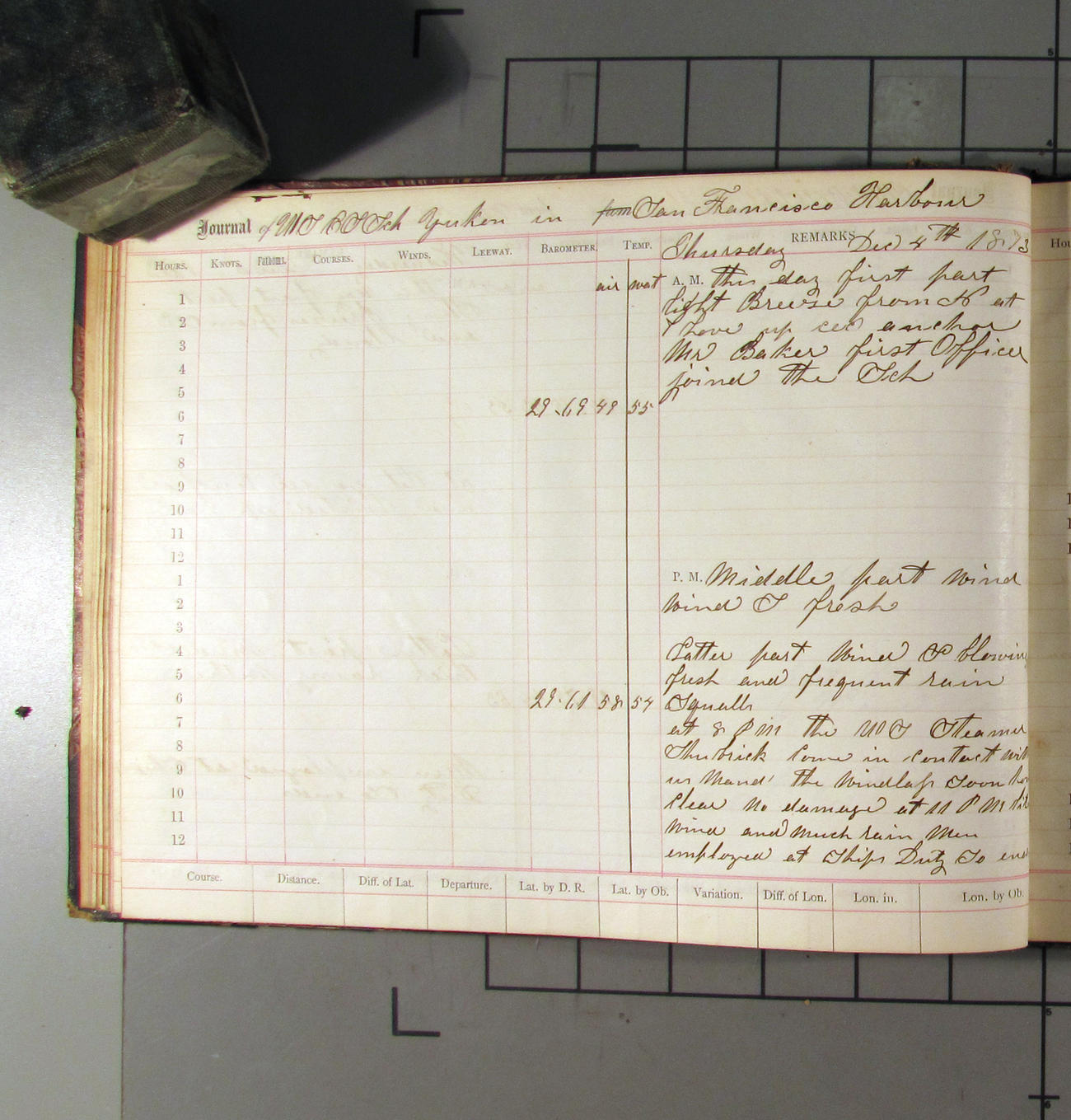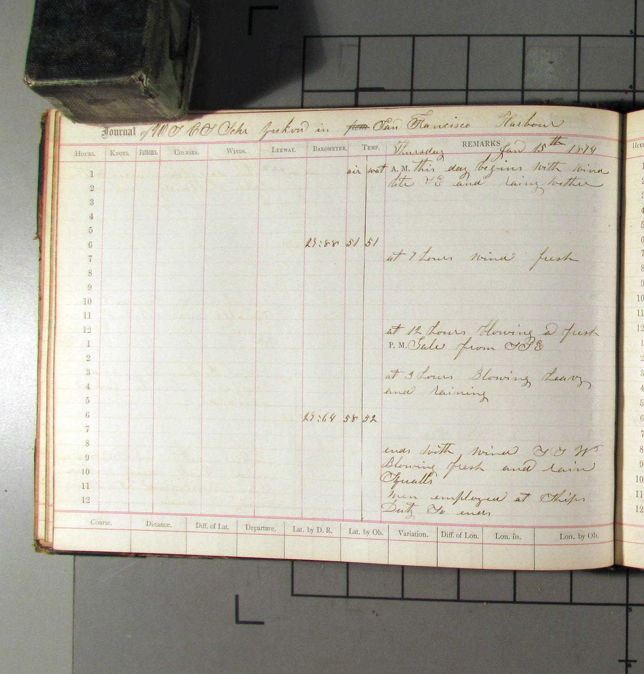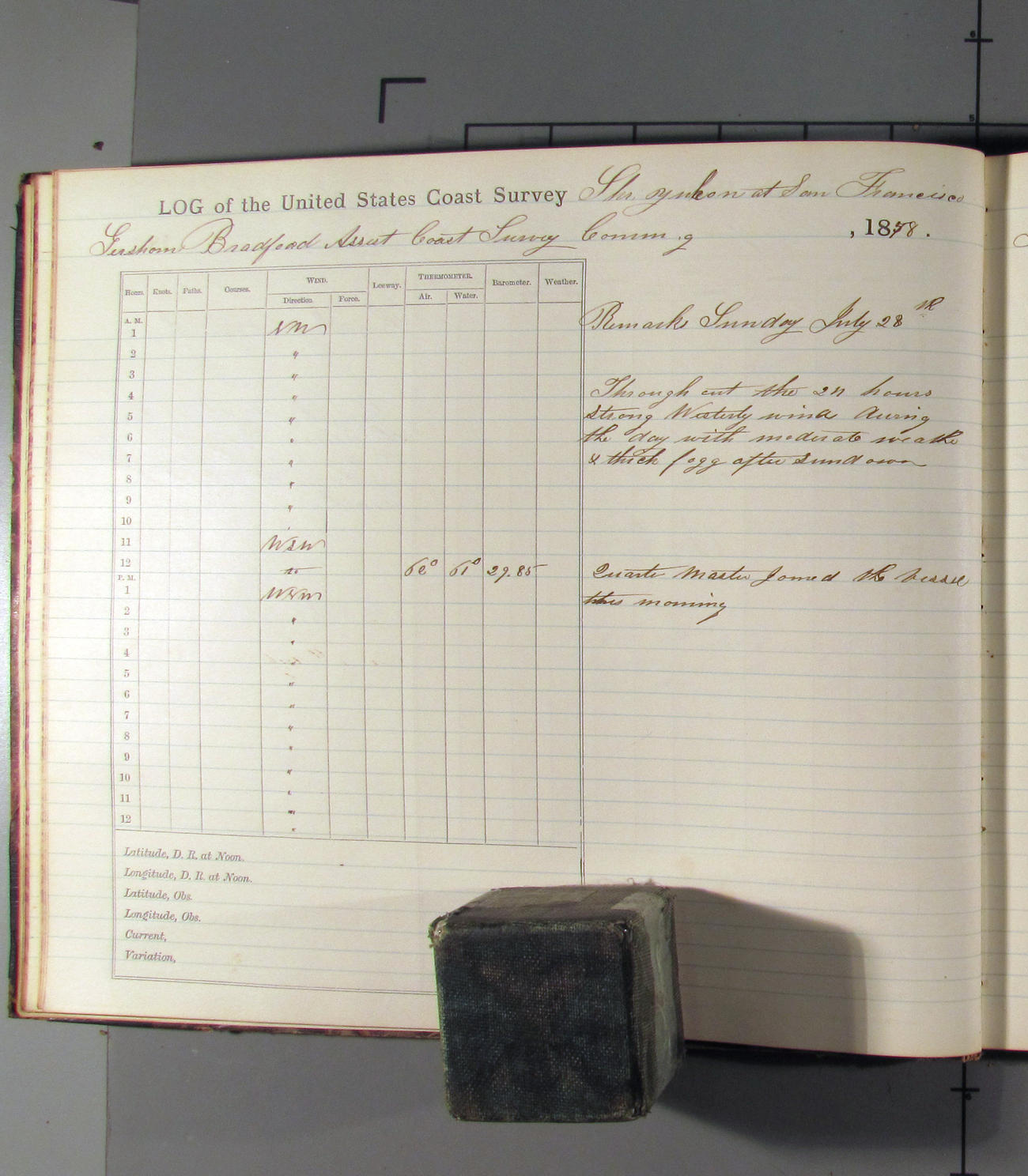 LOG BOOK – APRIL 28th 1873 TO NOVEMBER 9th 1873