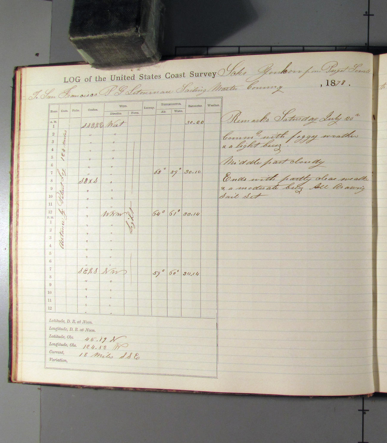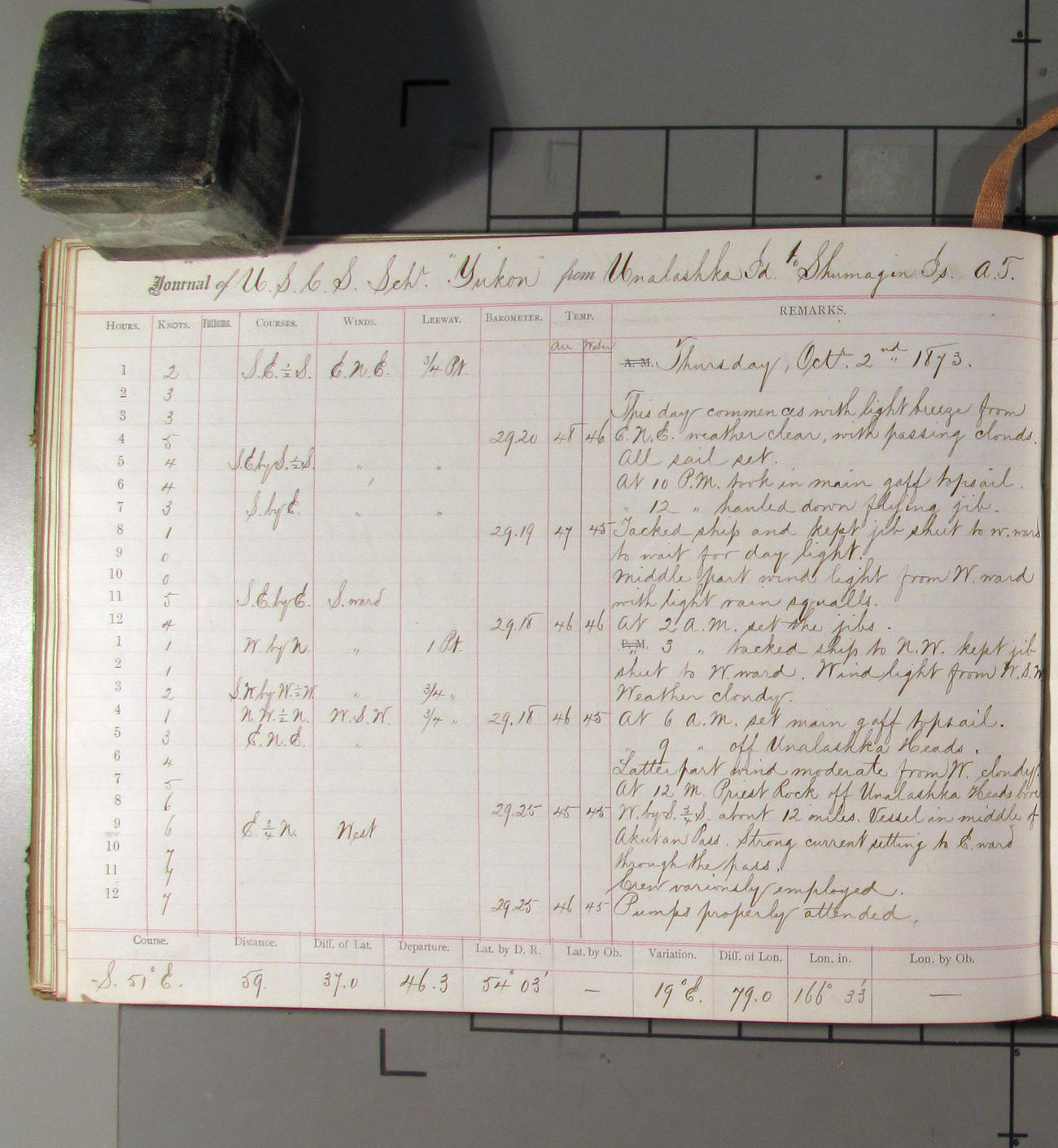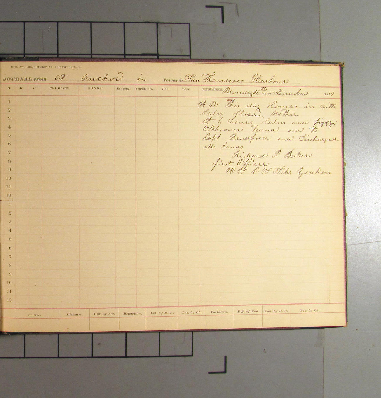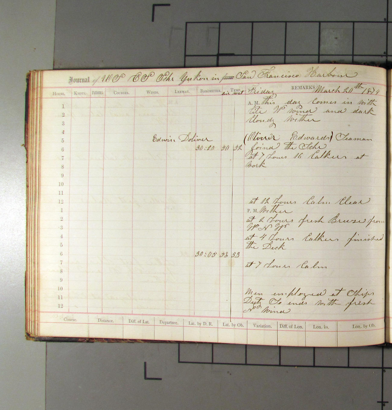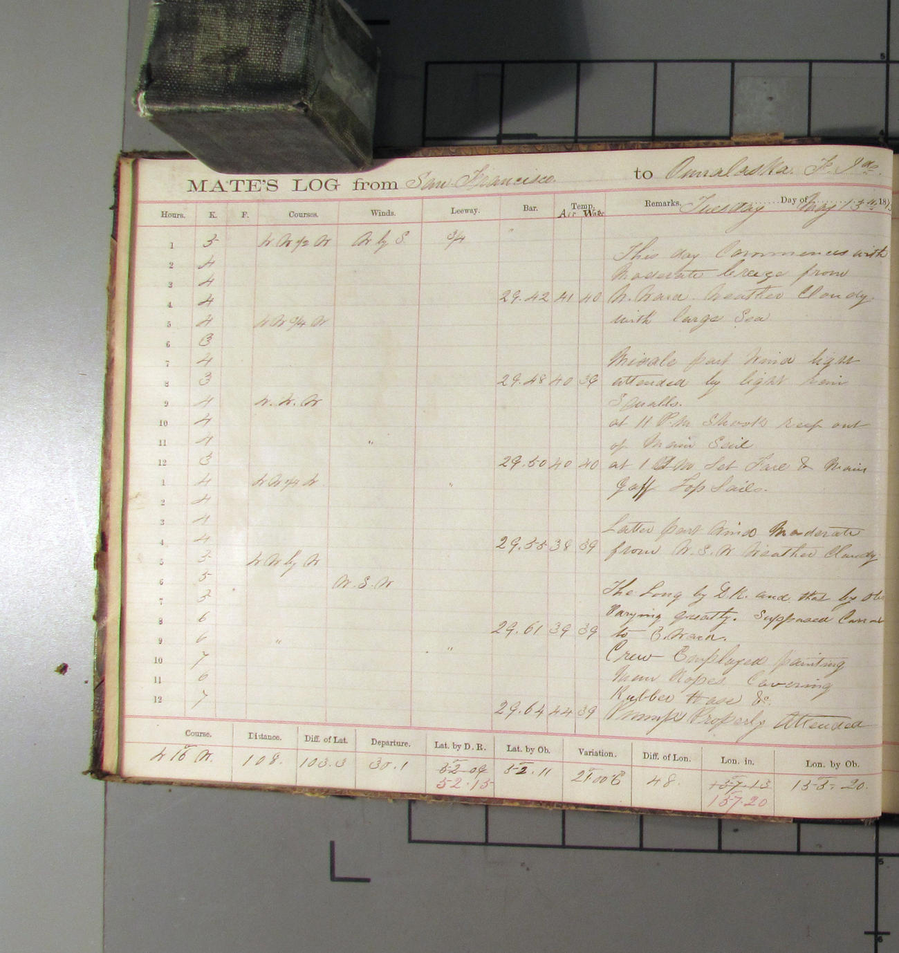 LOG BOOK – APRIL 28th 1873 TO NOVEMBER 9th 1873