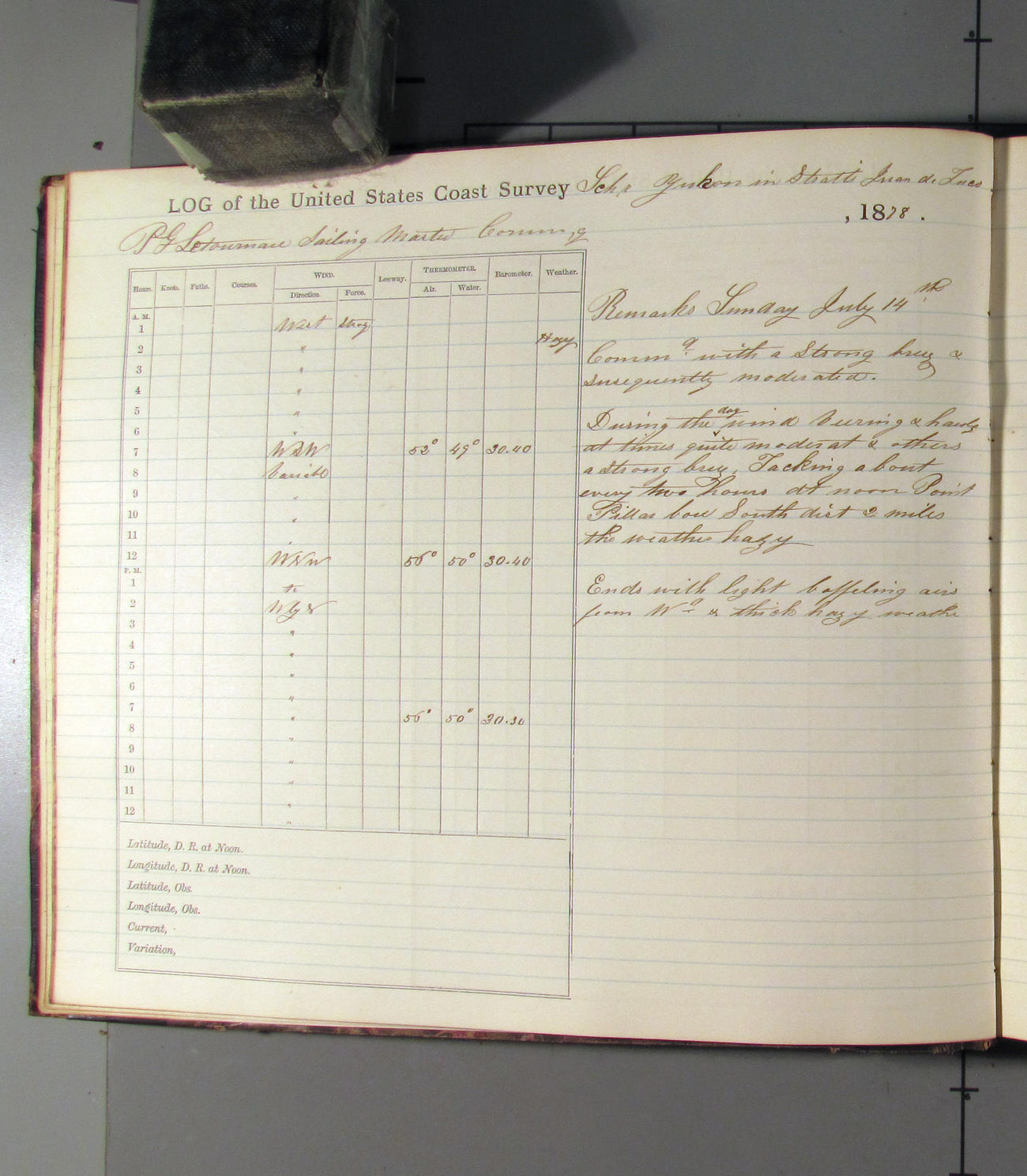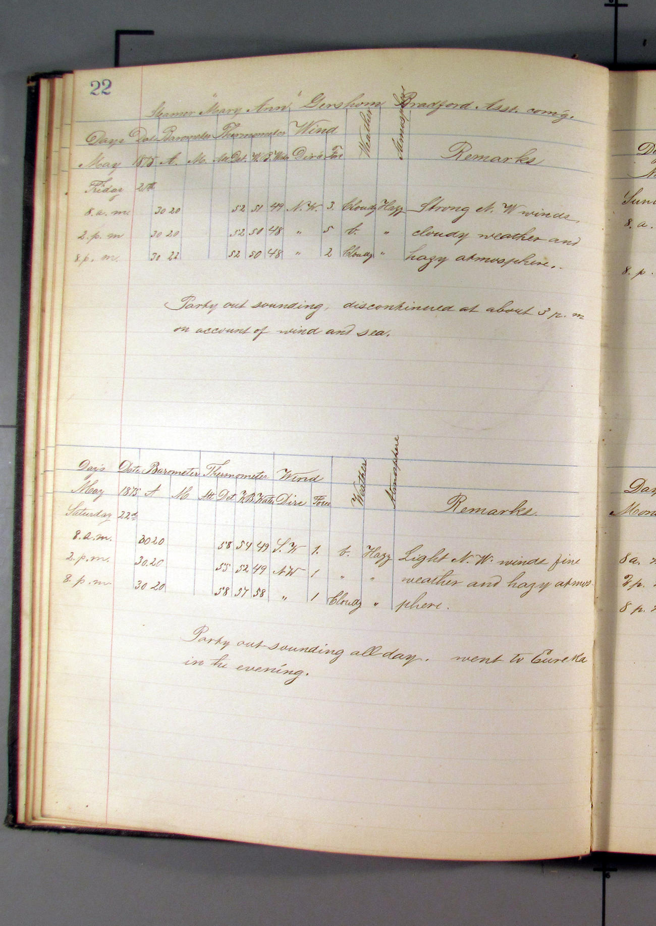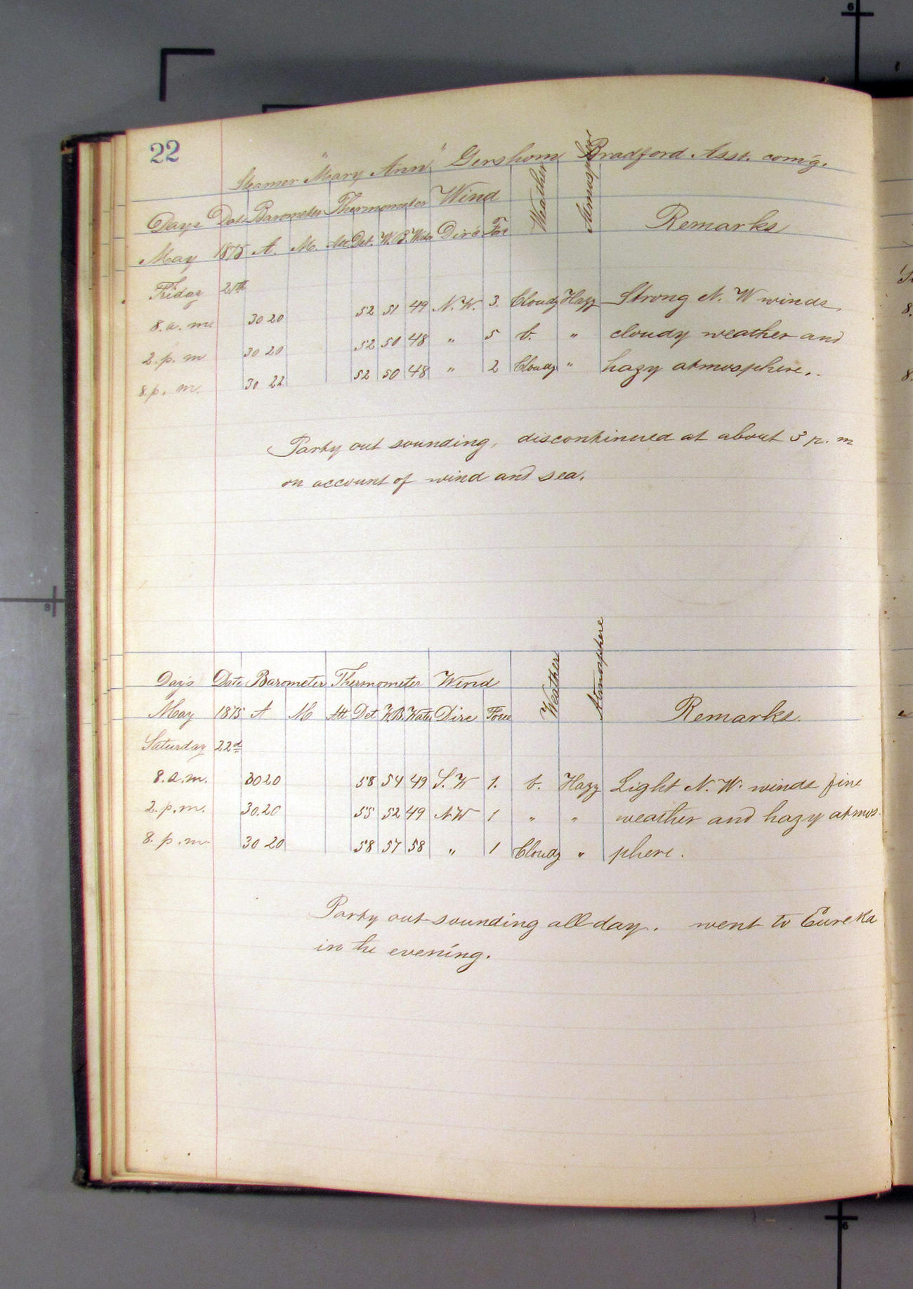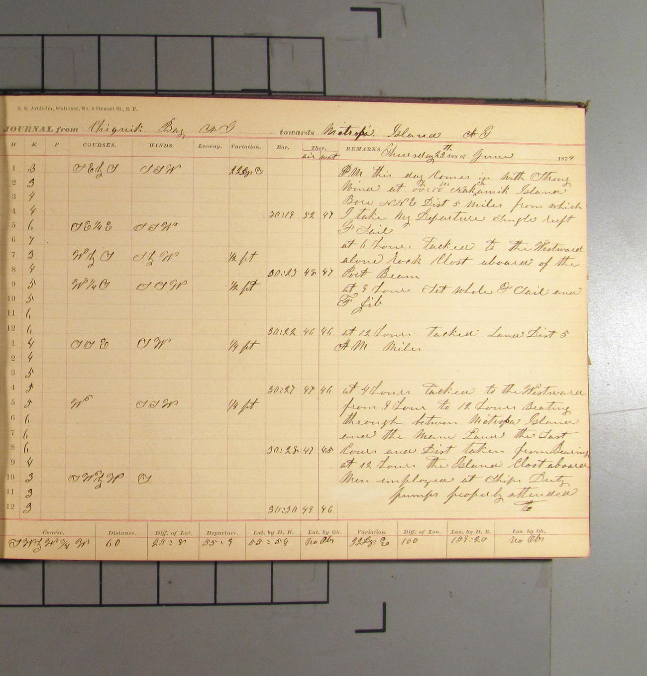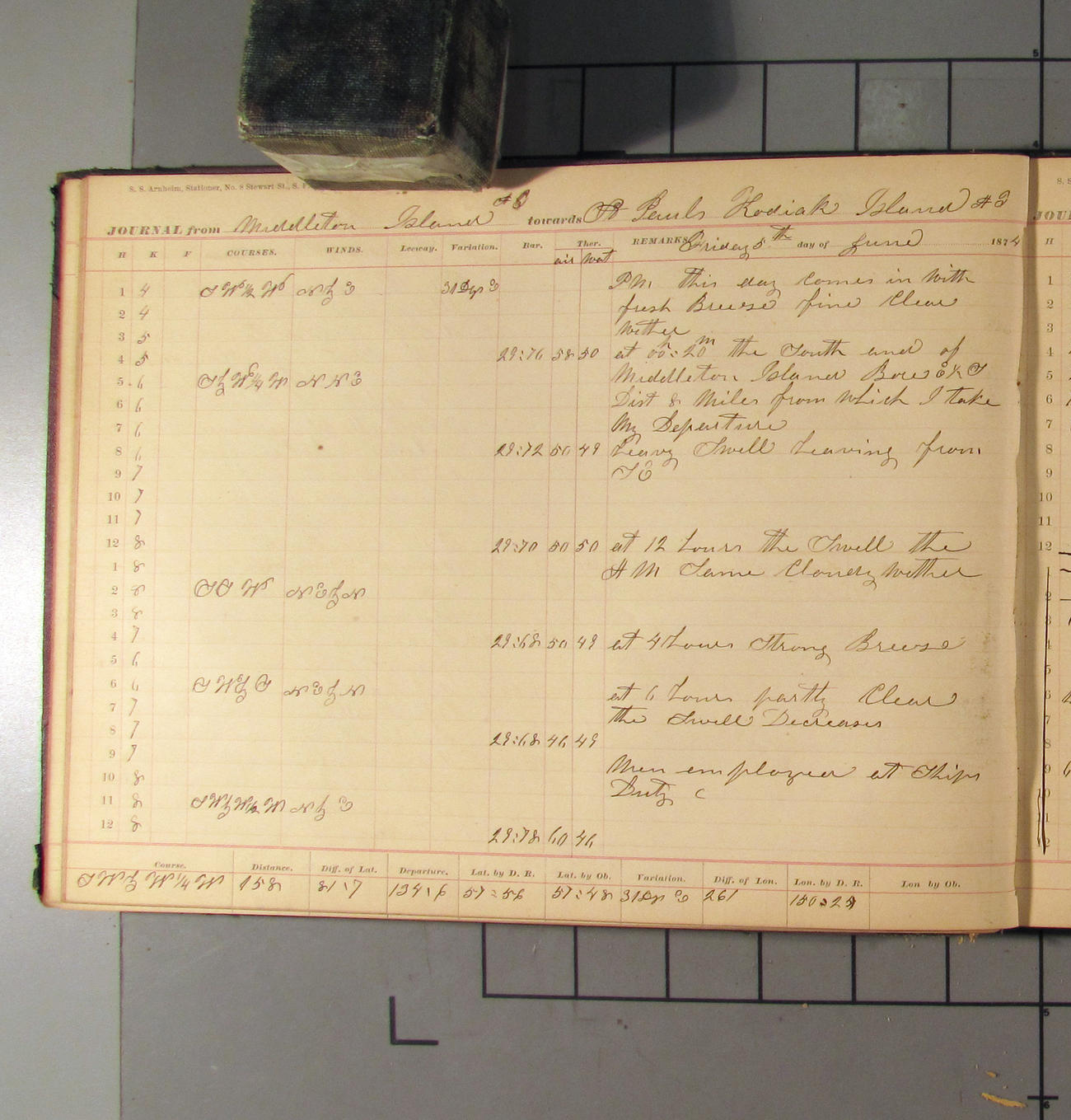 LOG BOOK – APRIL 28th 1873 TO NOVEMBER 9th 1873