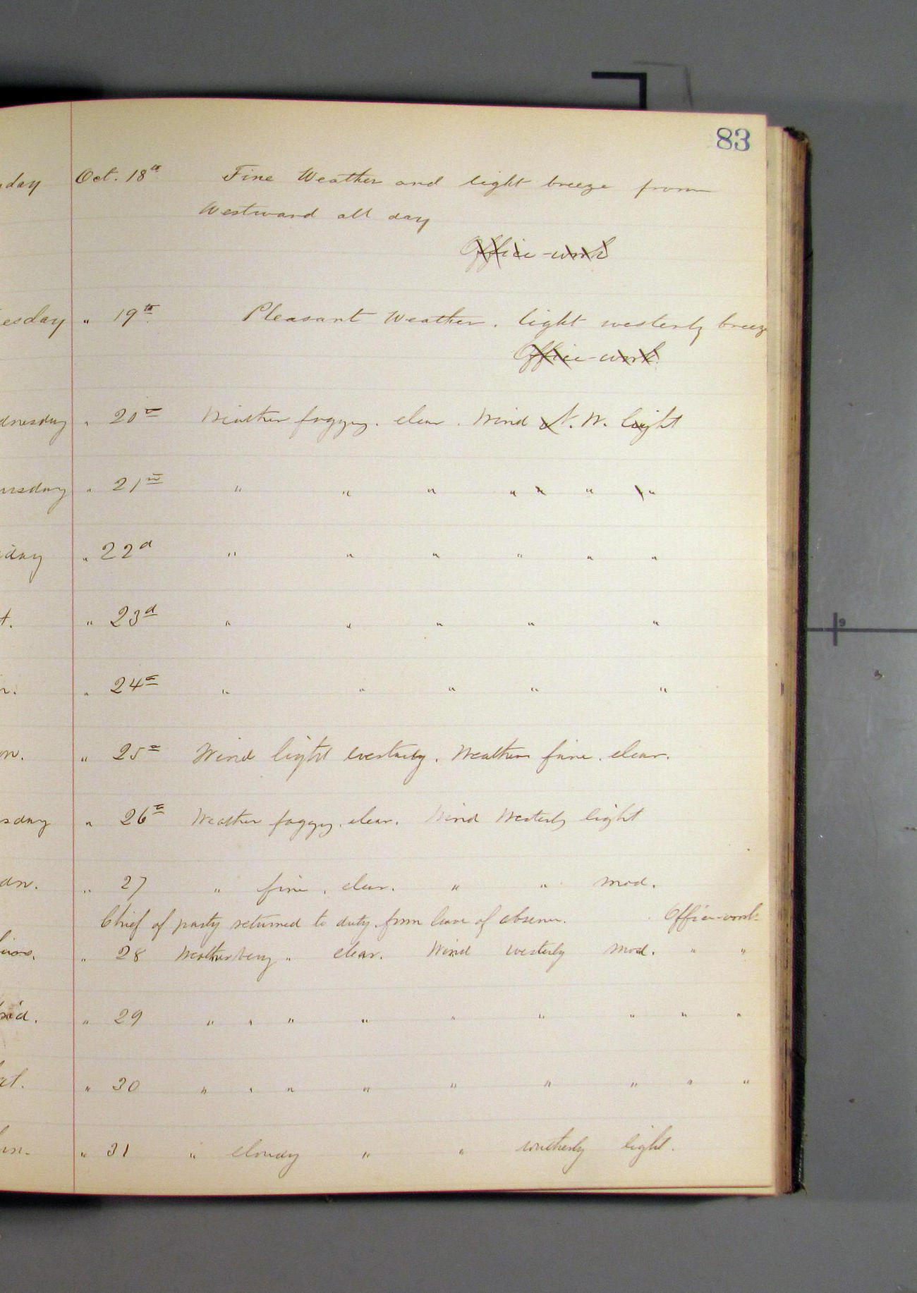 [No logs from 18 August to 10 October 1883]