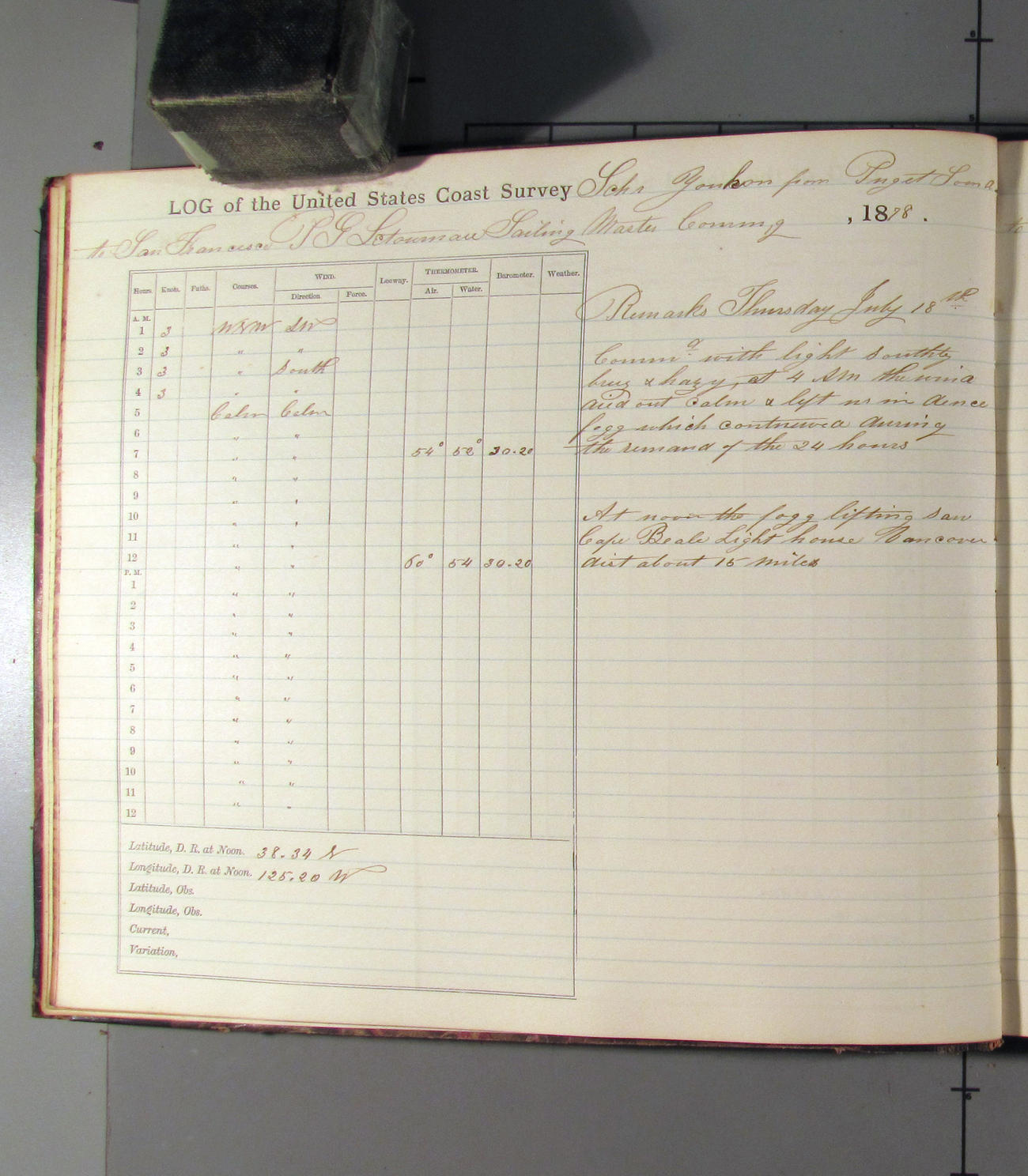 At 8.00pm Cape Blanco Light bearing SE½E, distant 18 miles.