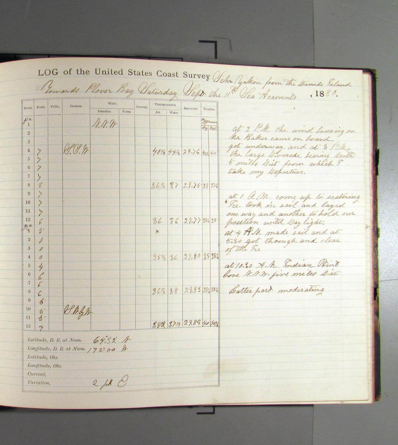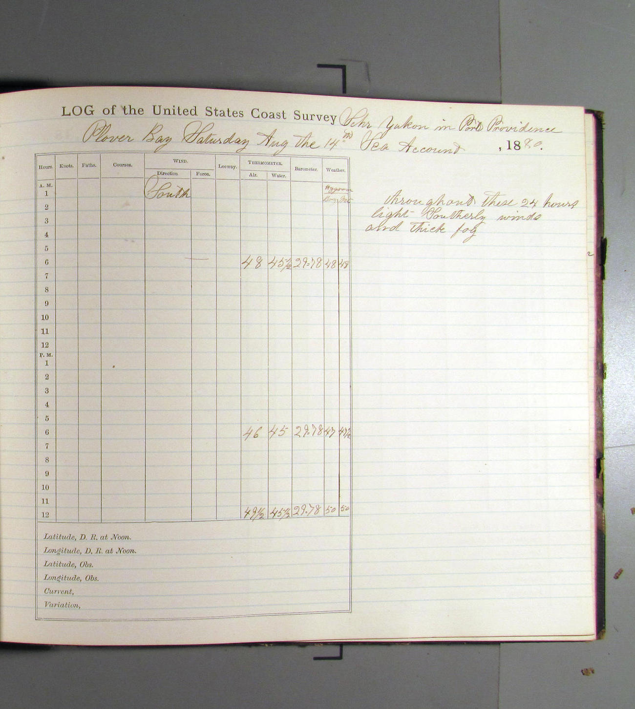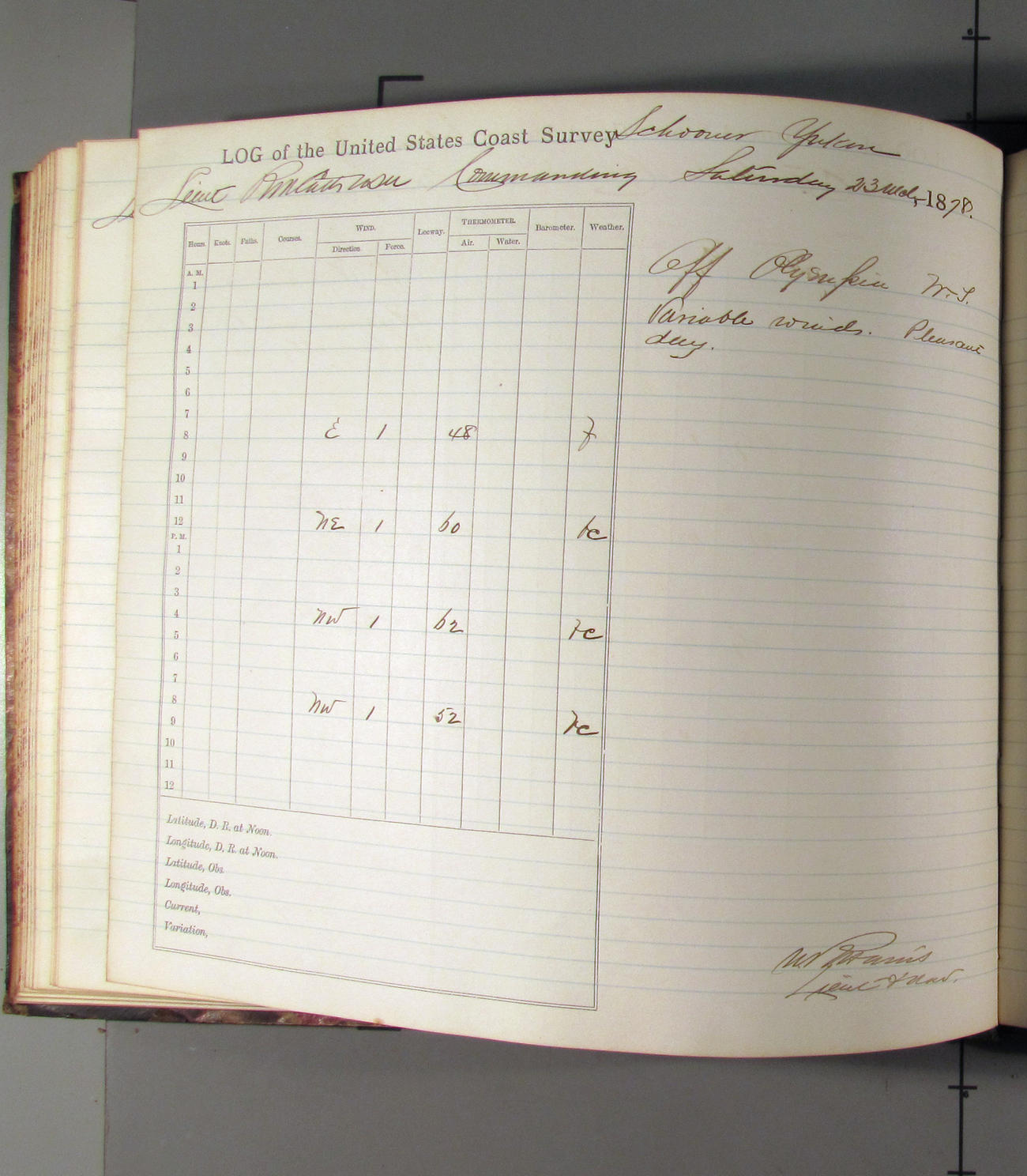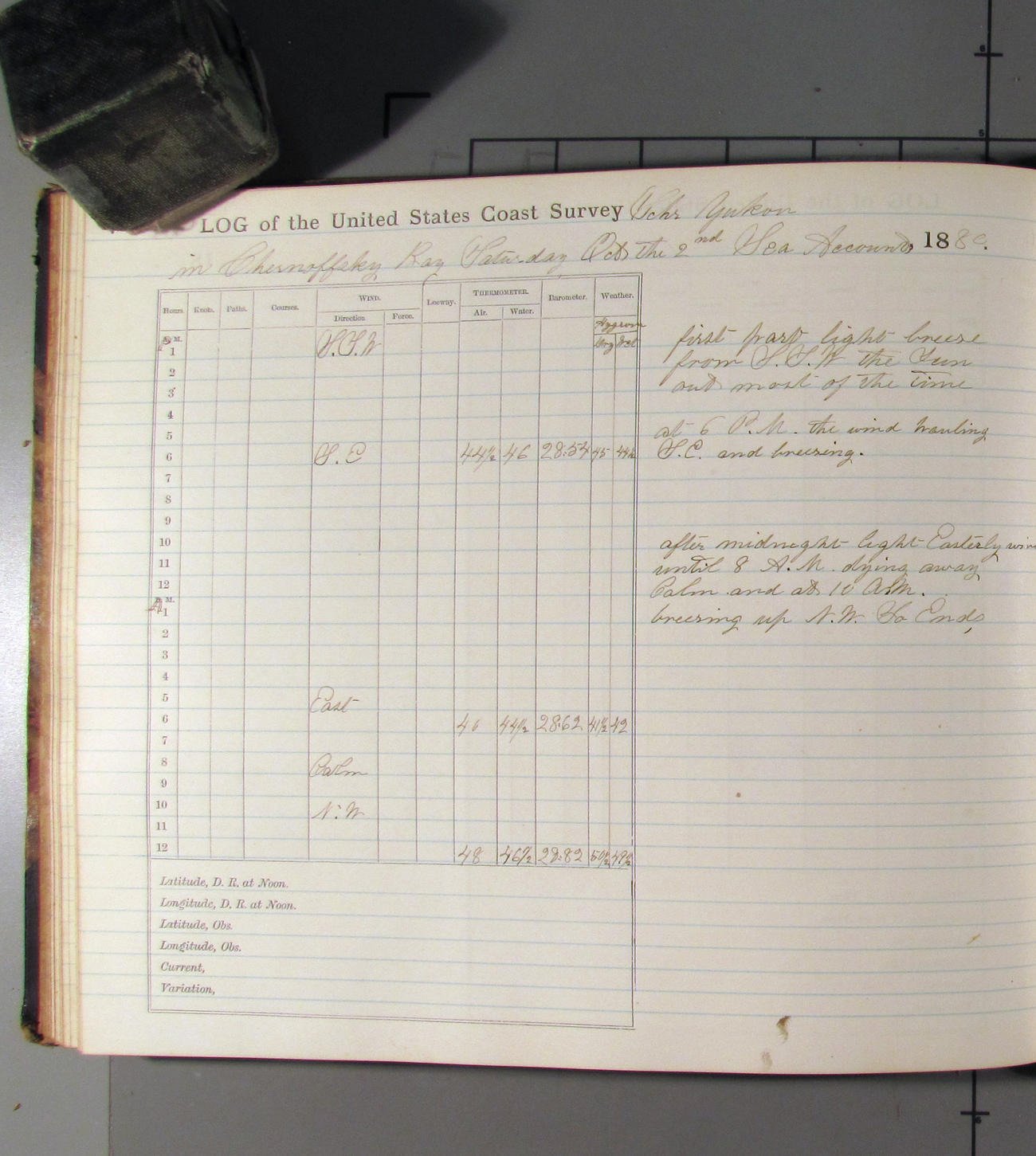 This day commences with moderate breeze from NWbyN. Weather cloudy.