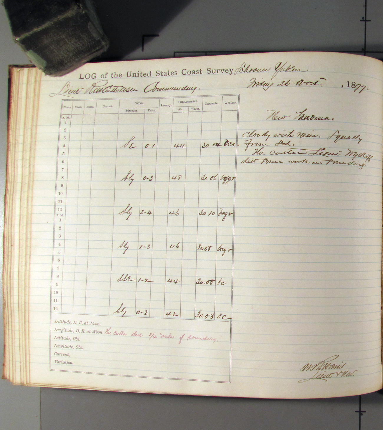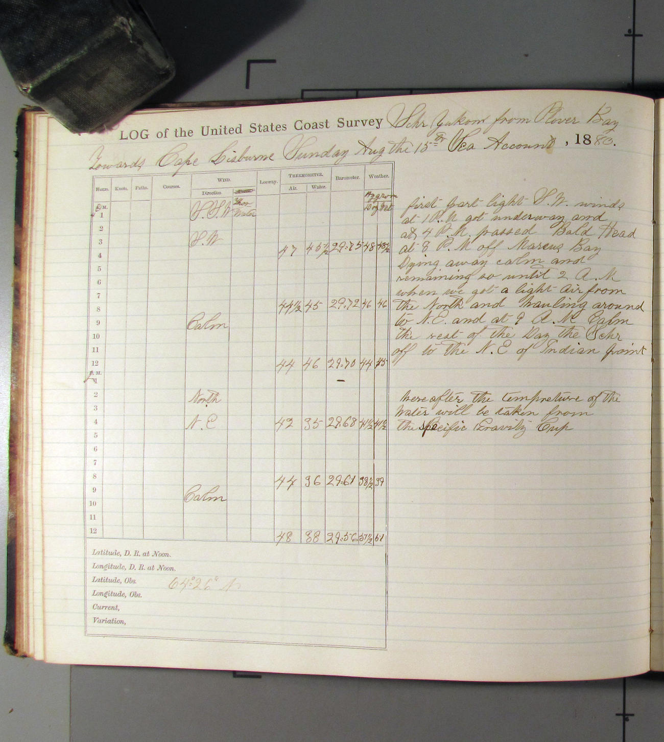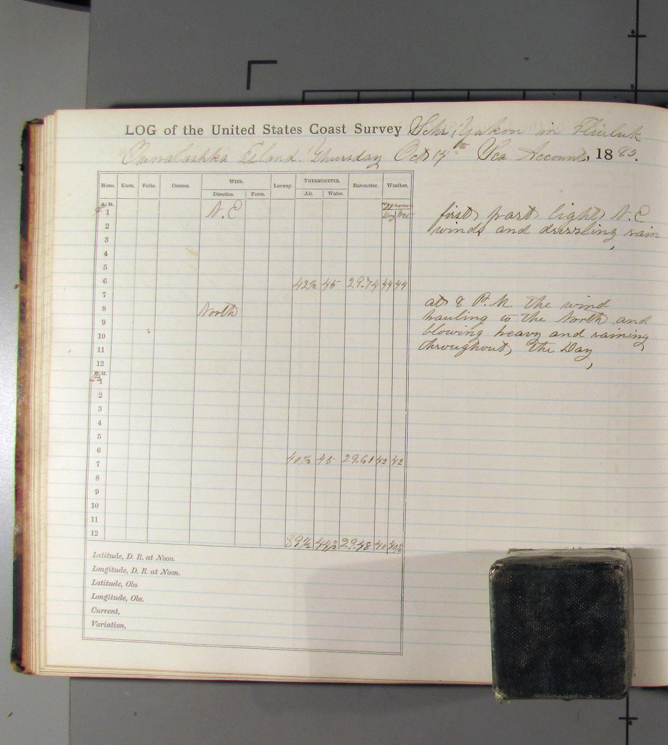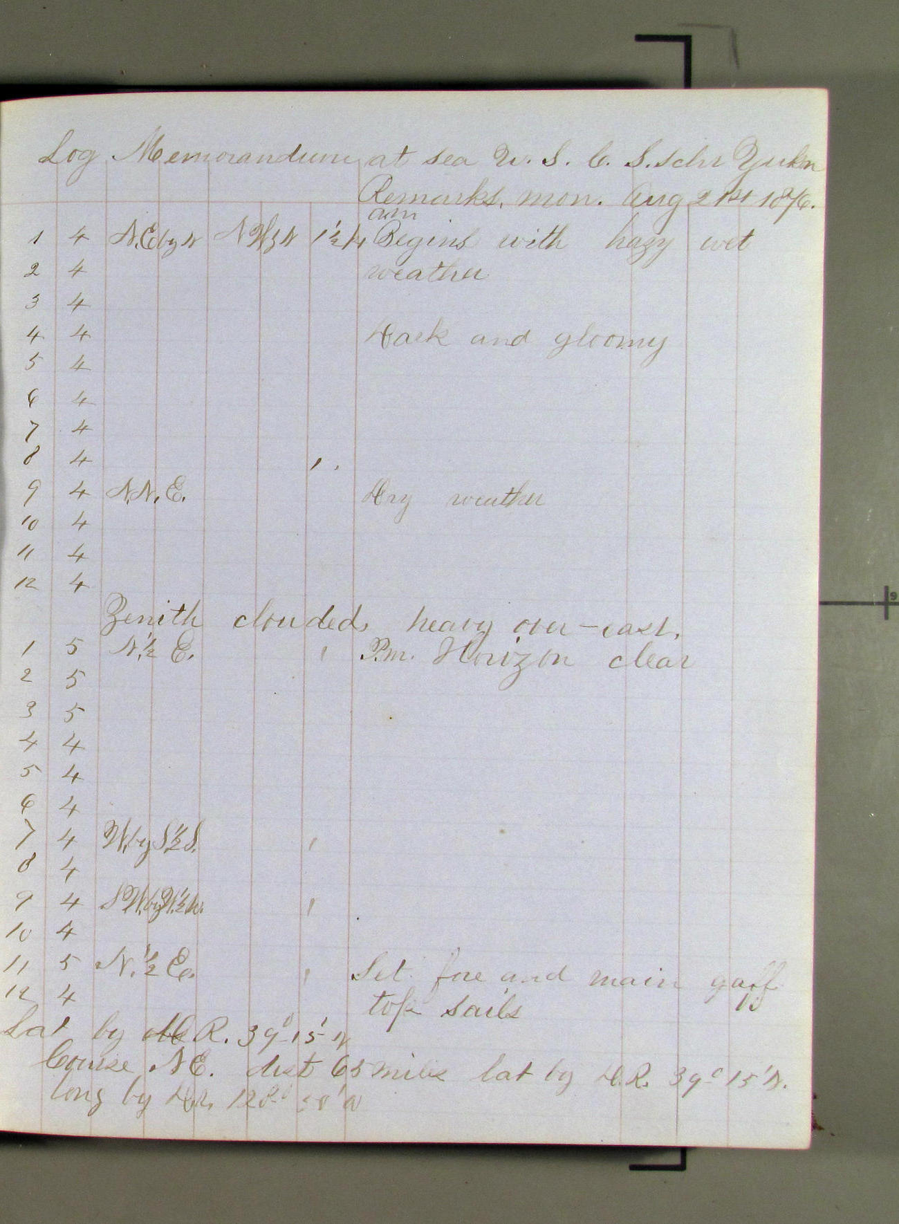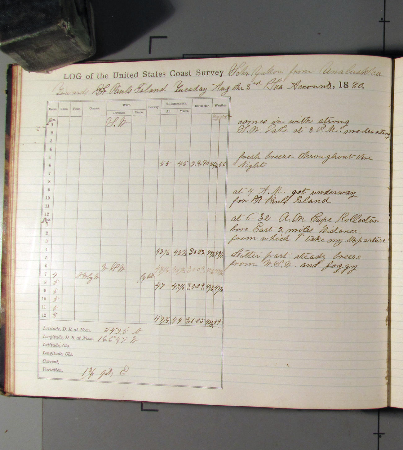 This day commences with moderate breeze from NWbyN. Weather cloudy.