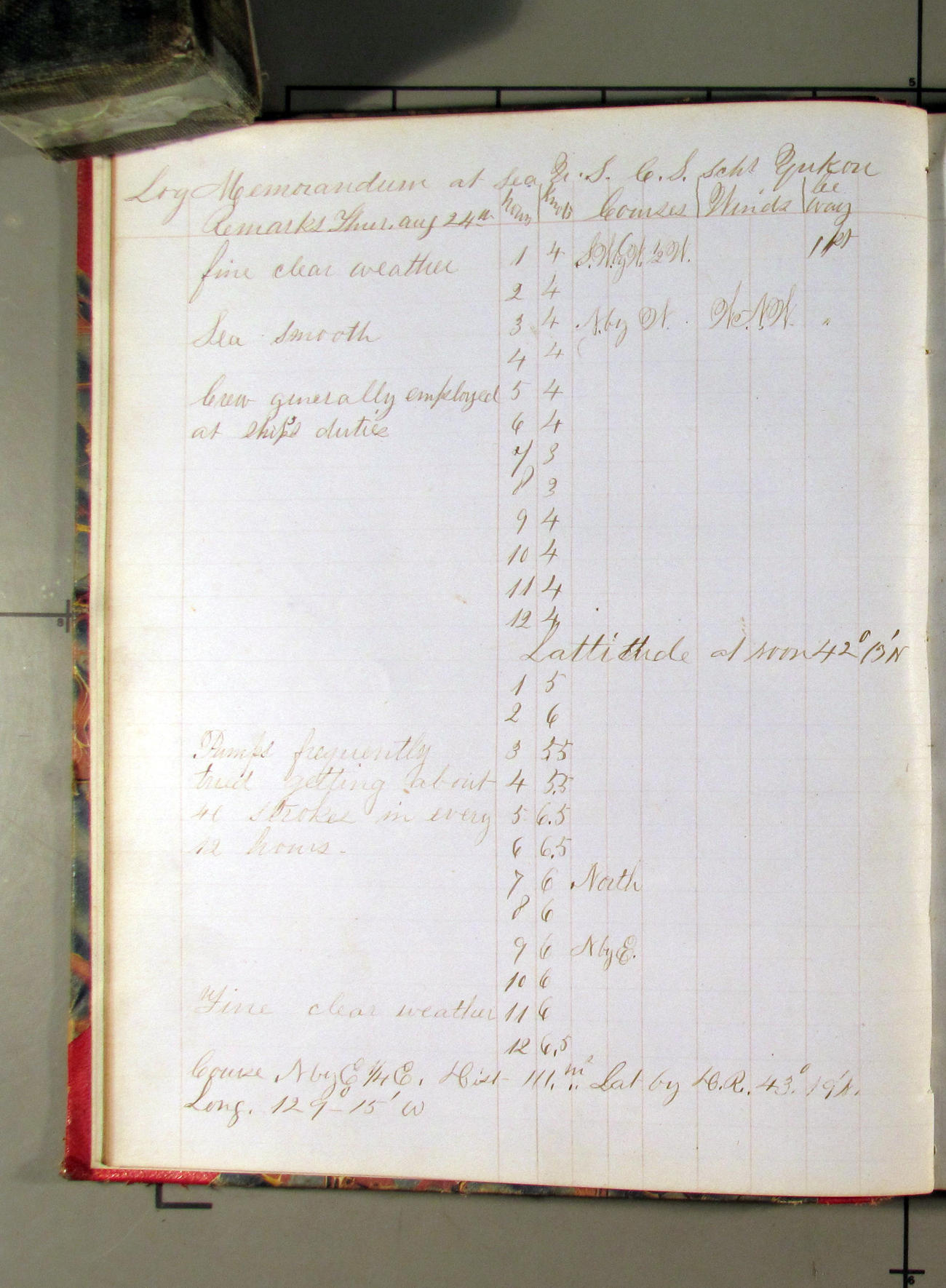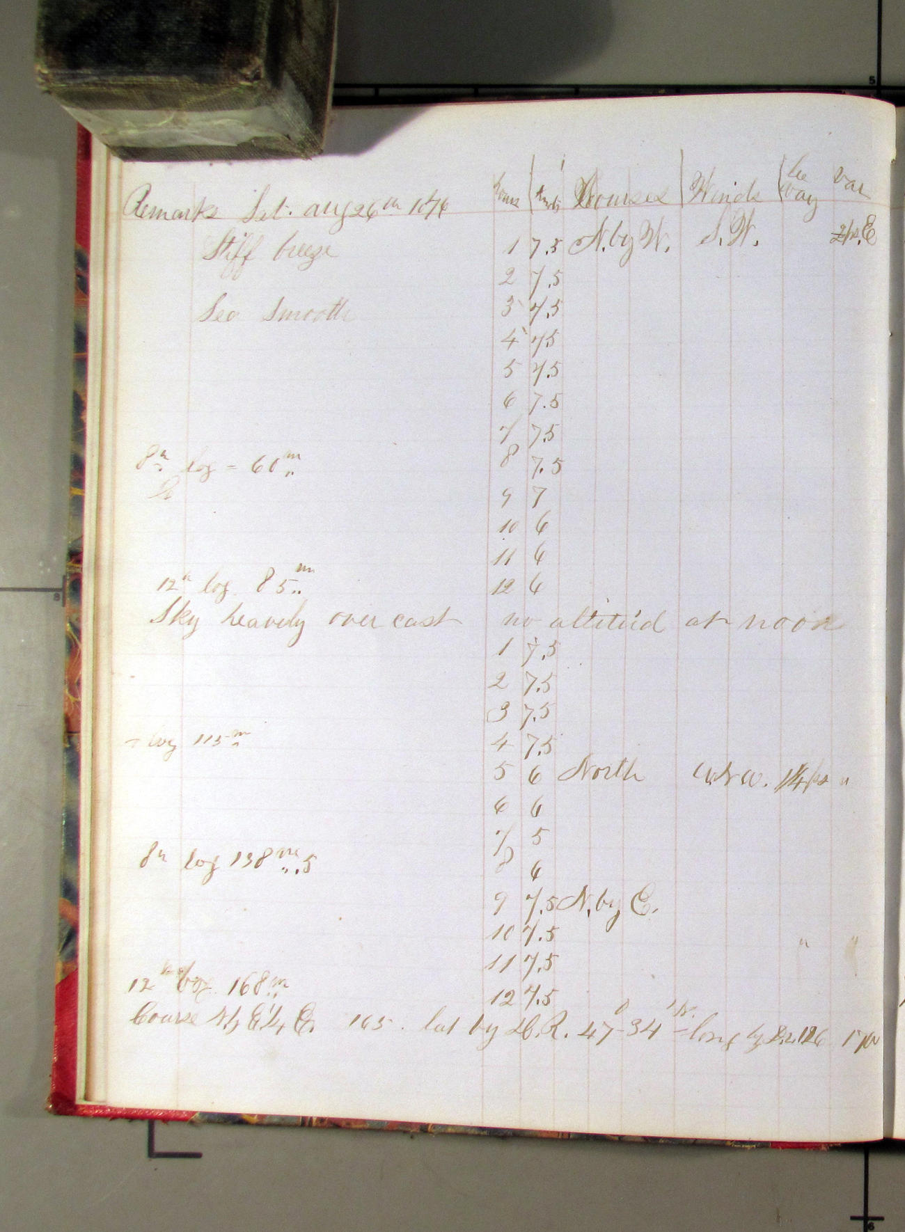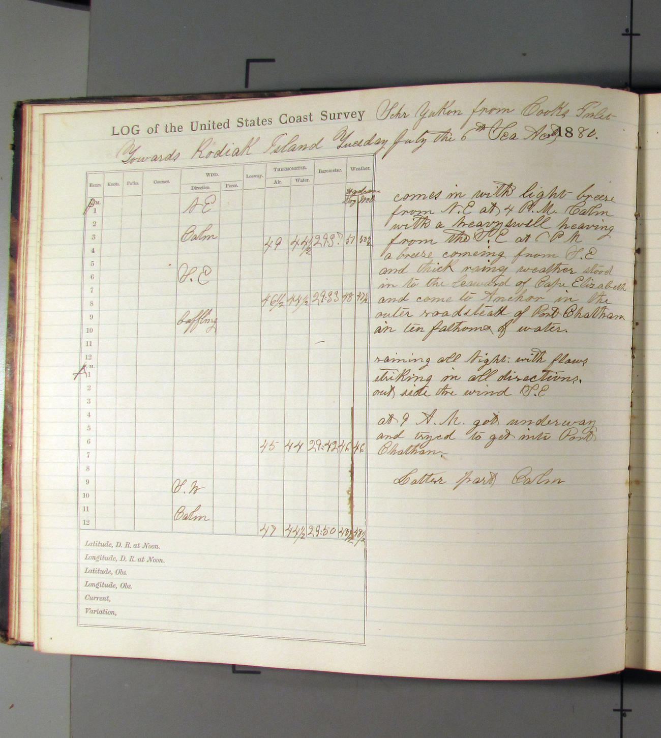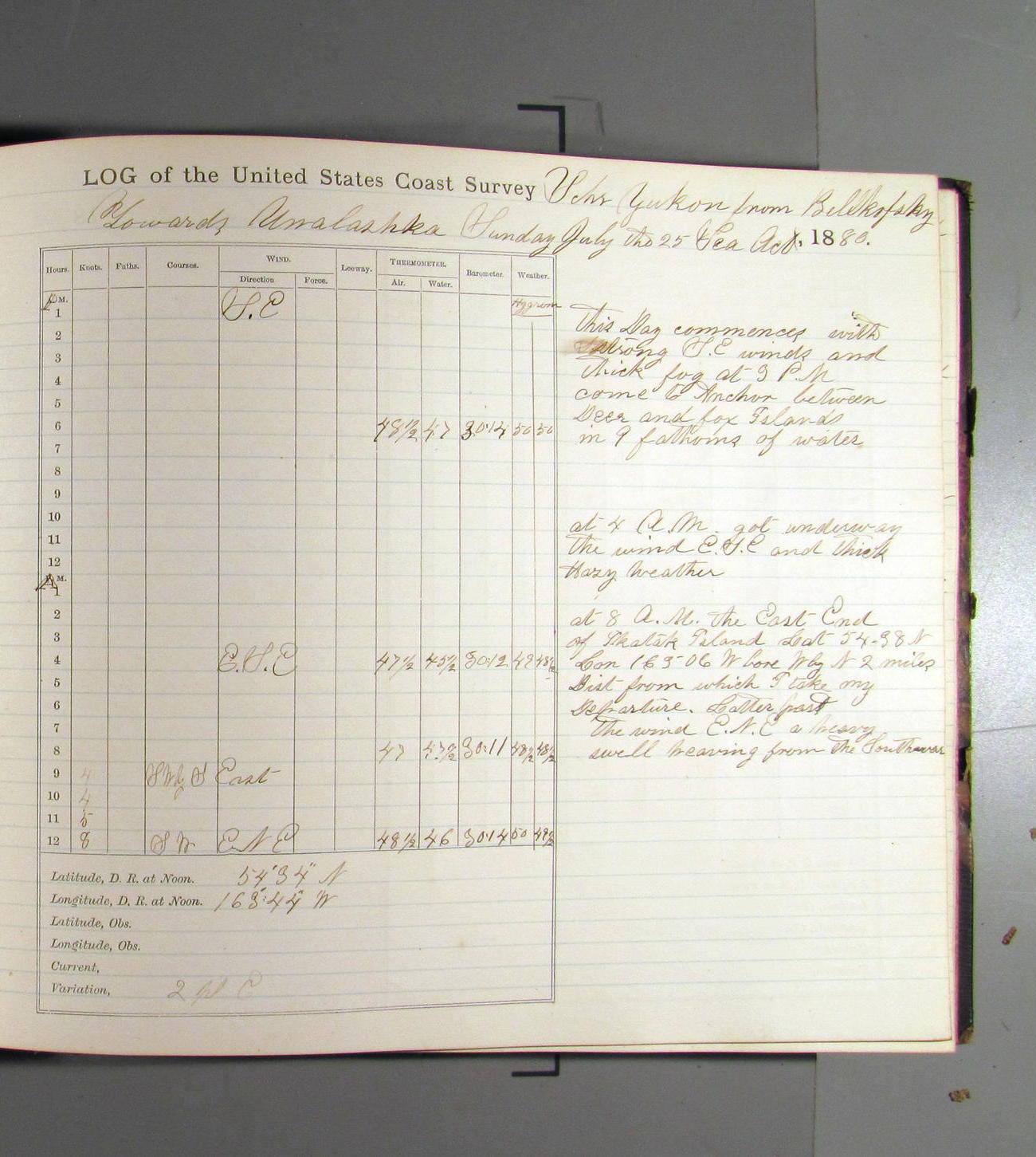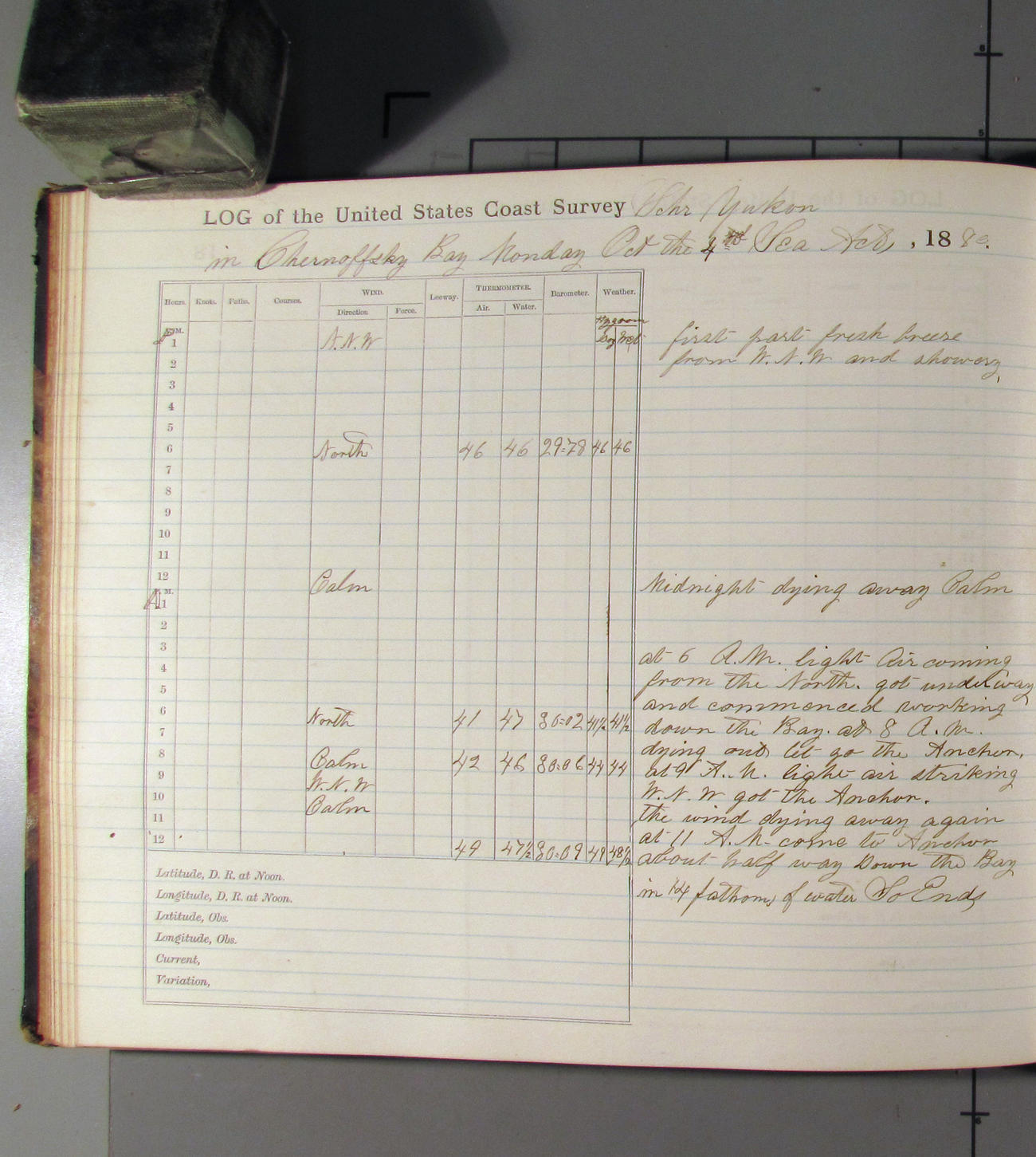 This day commences with moderate breeze from NWbyN. Weather cloudy.