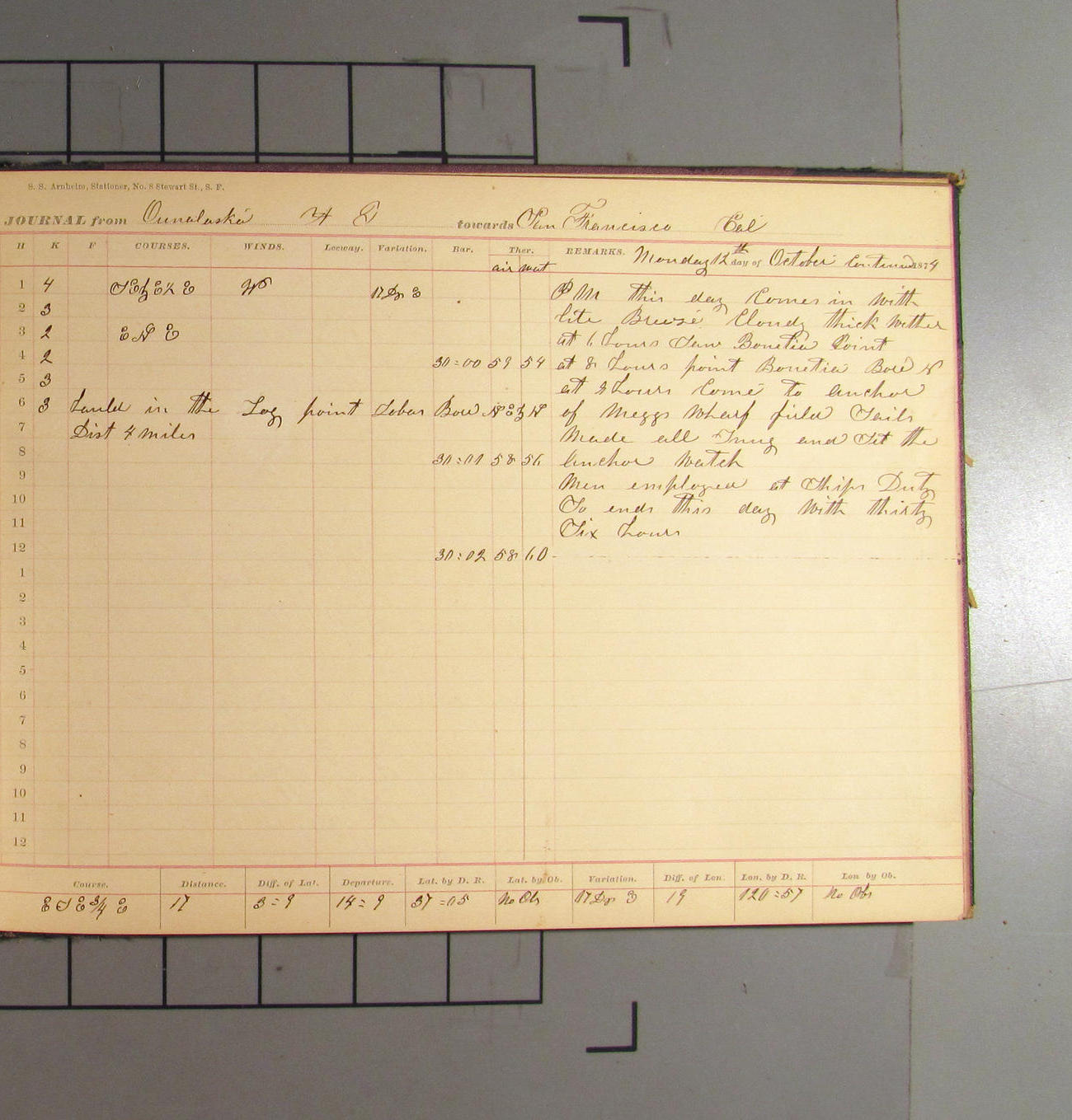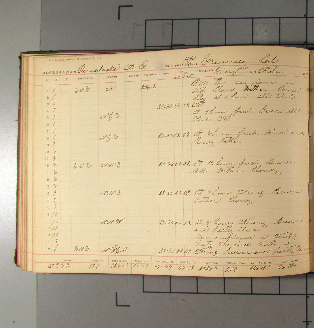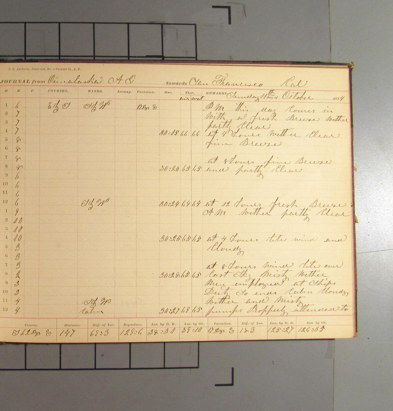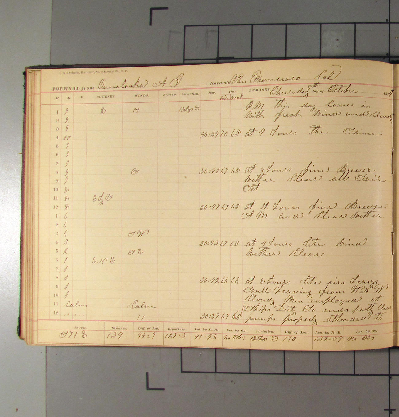 San Francisco, California, to Unalaska, Fox Islands, Alaska