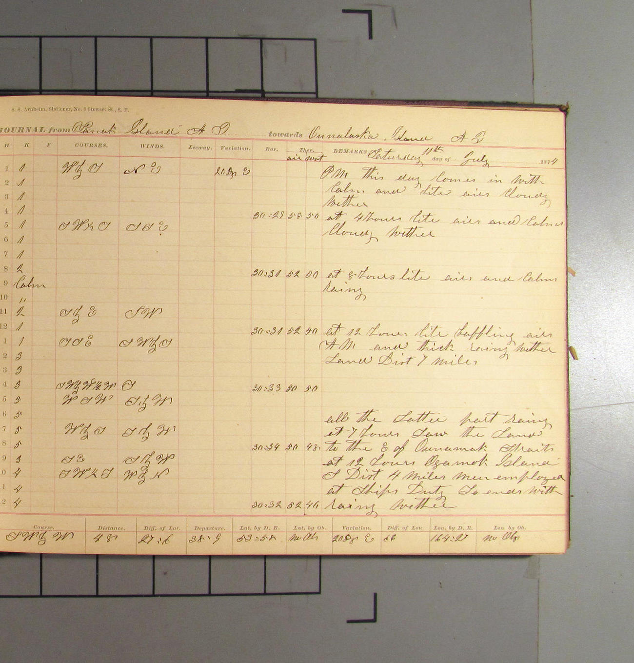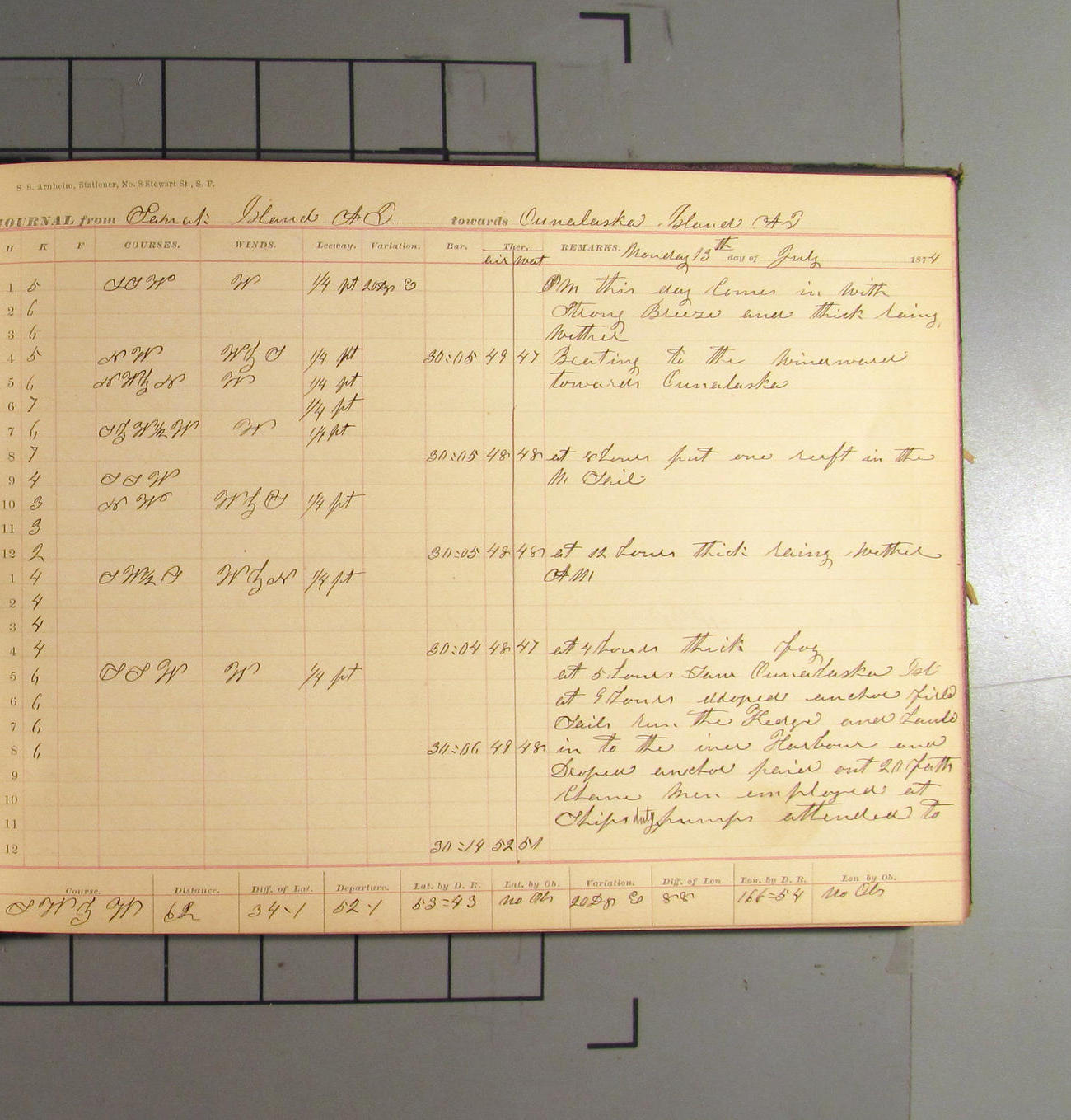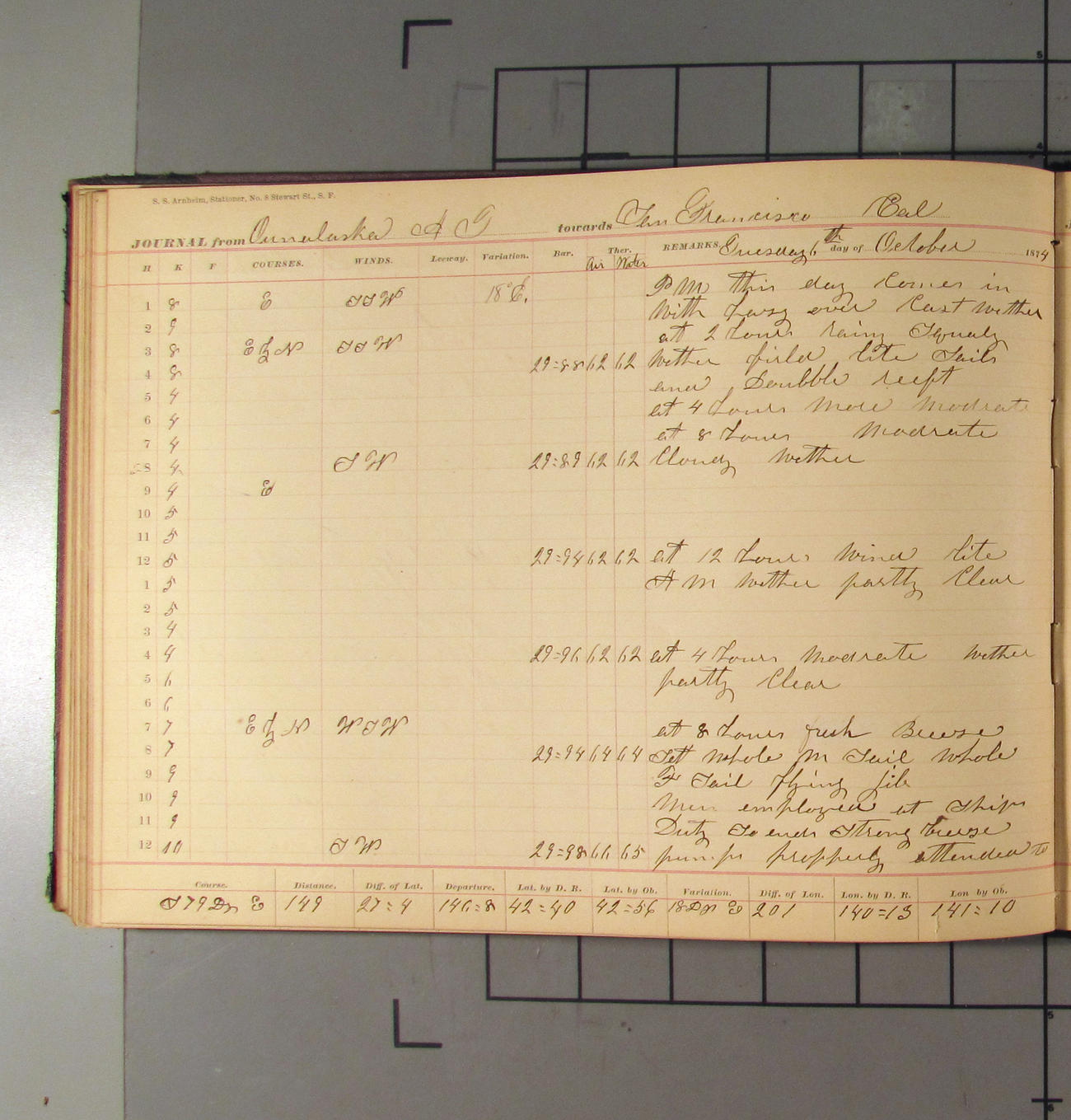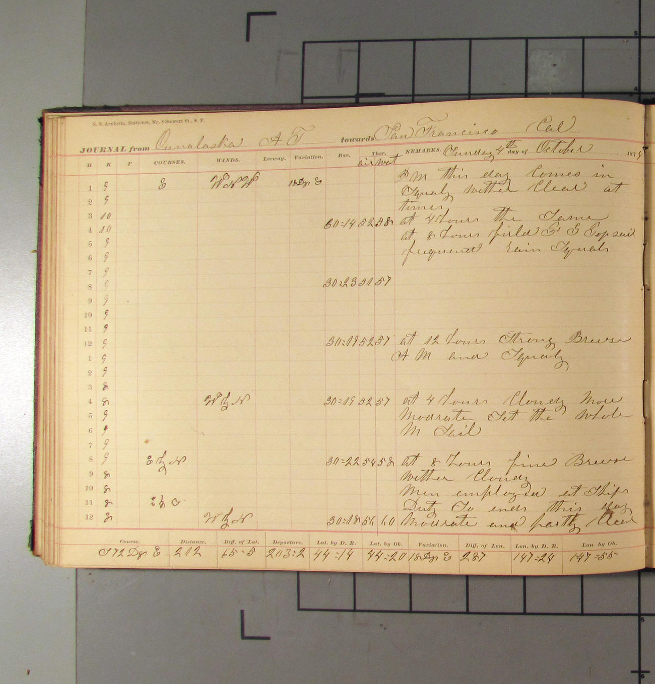 San Francisco, California, to Unalaska, Fox Islands, Alaska