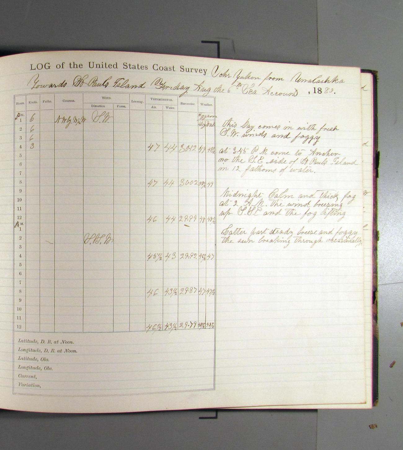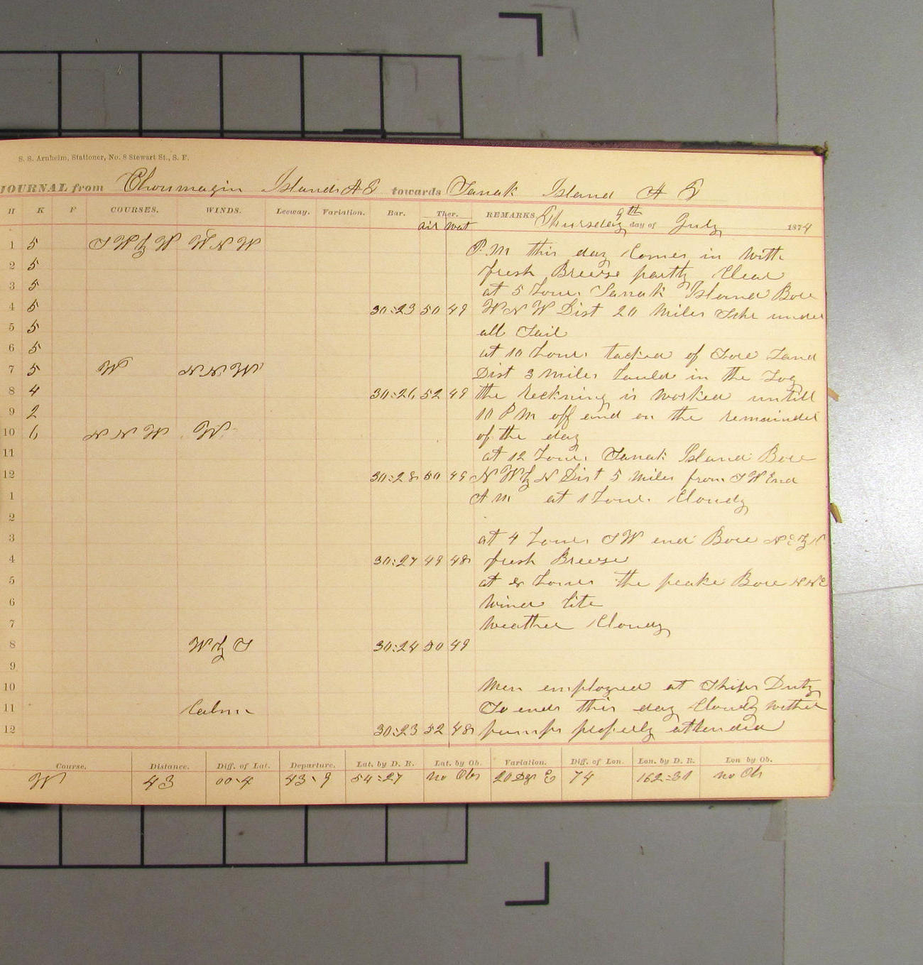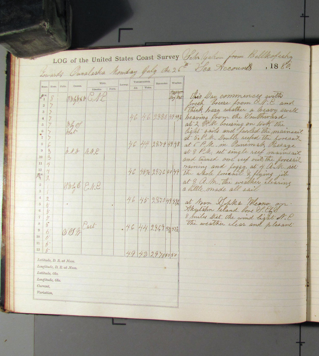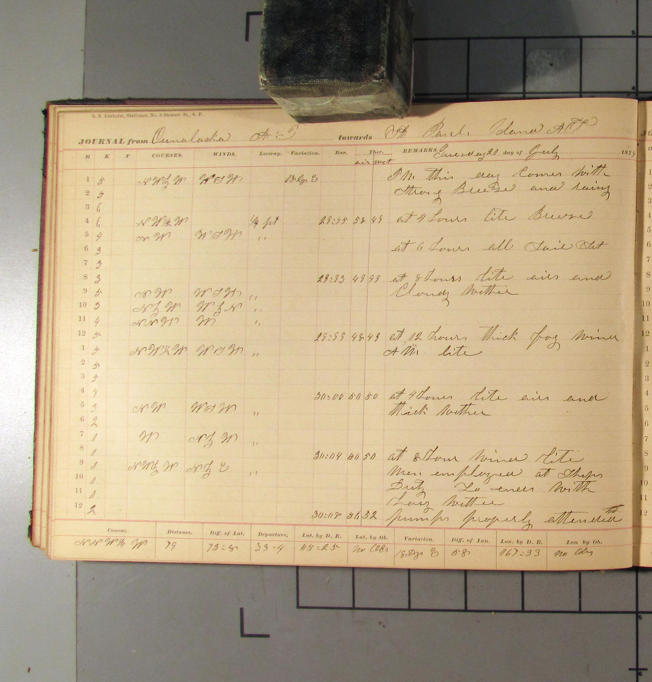 San Francisco, California, to Unalaska, Fox Islands, Alaska